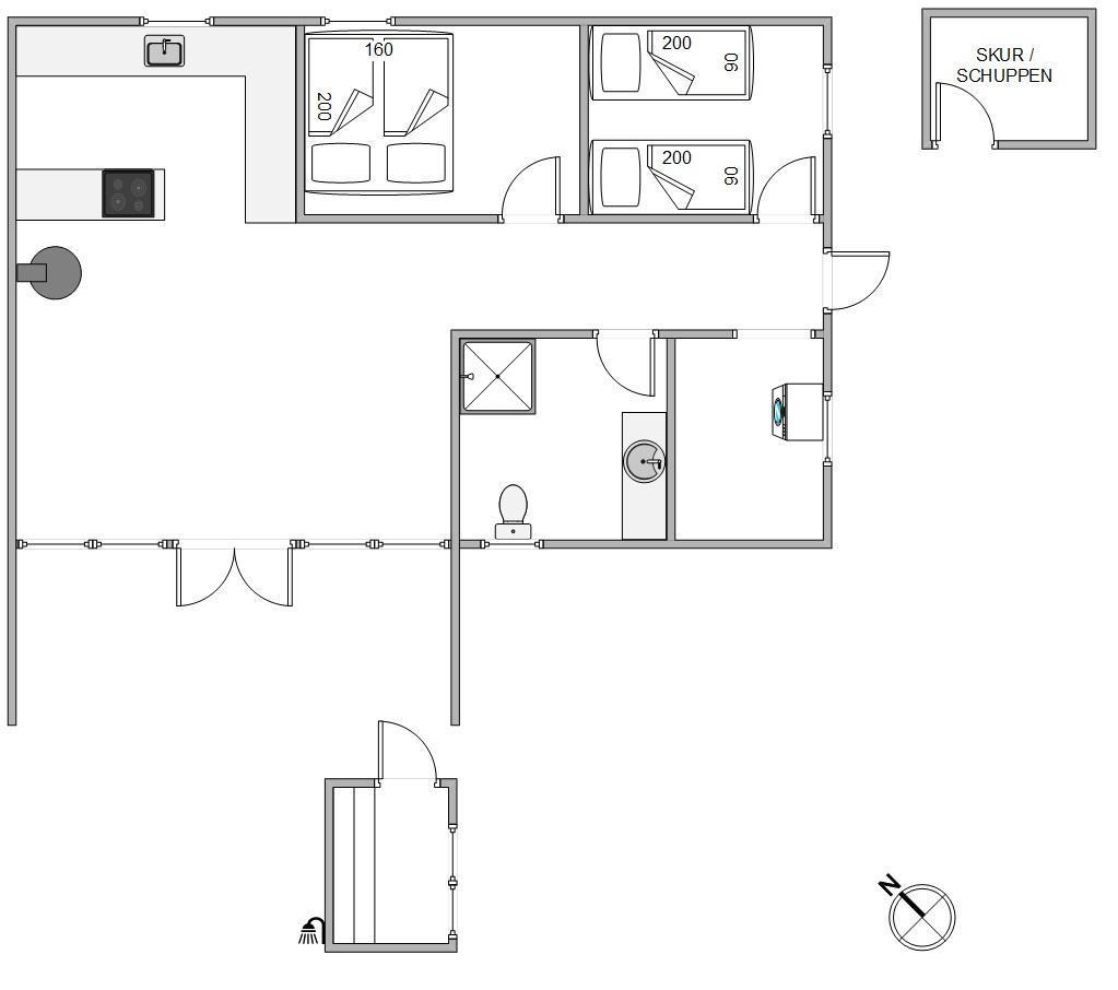 Sommerhusets udendørs wellnessfaciliteter giver oplevelsen et ekstra løft. Udesaunaen er ideel, hvis I trænger til lidt ekstra afslapning, og den udendørs bruser – som kan bruges fra april til november – giver jer mulighed for en forfriskende start eller afslutning på dagen.