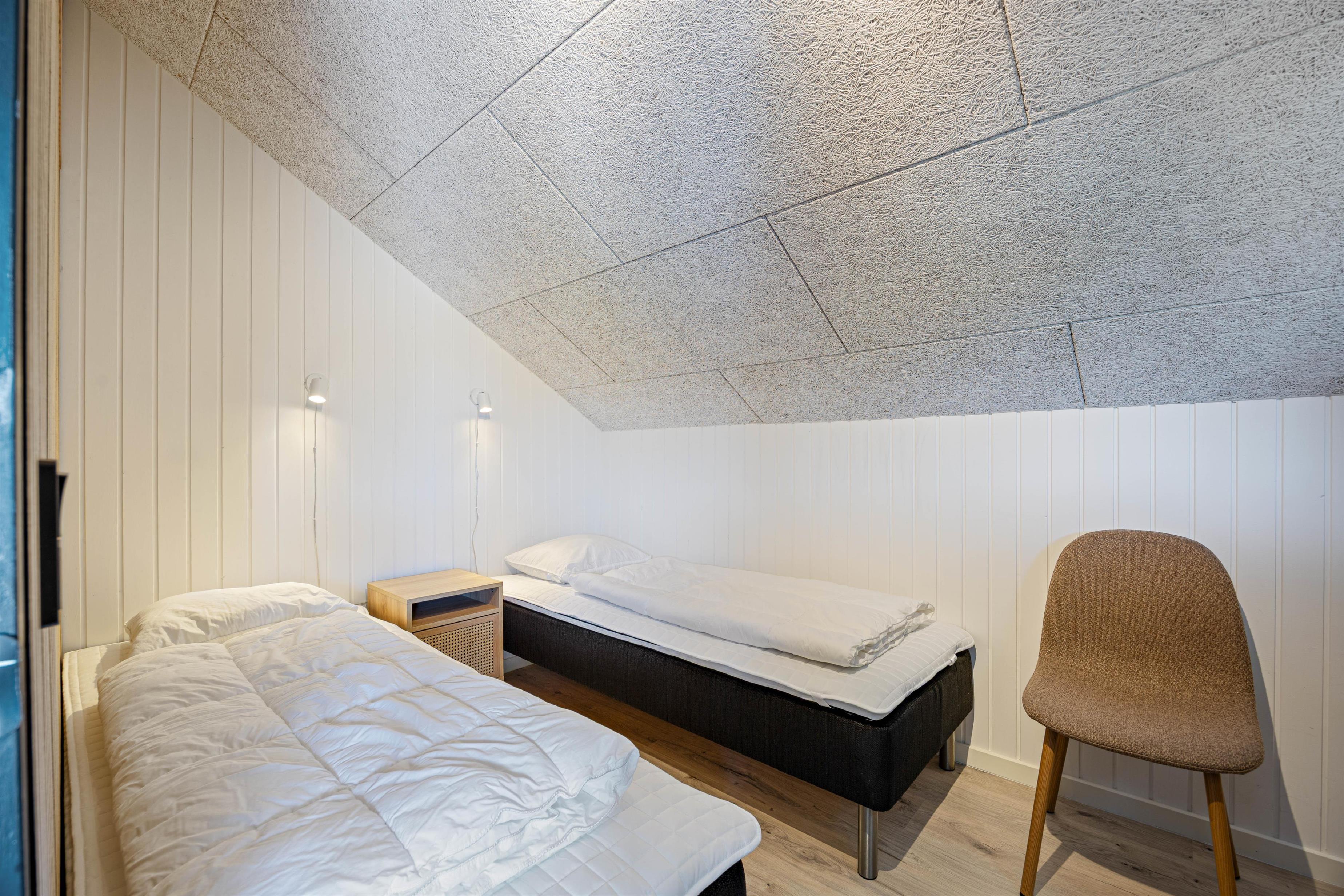 Stuen og det moderne køkken udgør sommerhusets naturlige samlingspunkt. Her er der skabt en afslappet og indbydende ramme for jeres ferie, hvor alt er tænkt med henblik på samvær og hygge. Uanset om I laver mad sammen i det åbne køkken eller slapper af i sofaen med en god bog foran den knitrende brændeovn, vil I hurtigt føle jer hjemme. Det moderne interiør og de træbeklædte vægge bidrager til en skøn atmosfære med ægte sommerhusstemning.