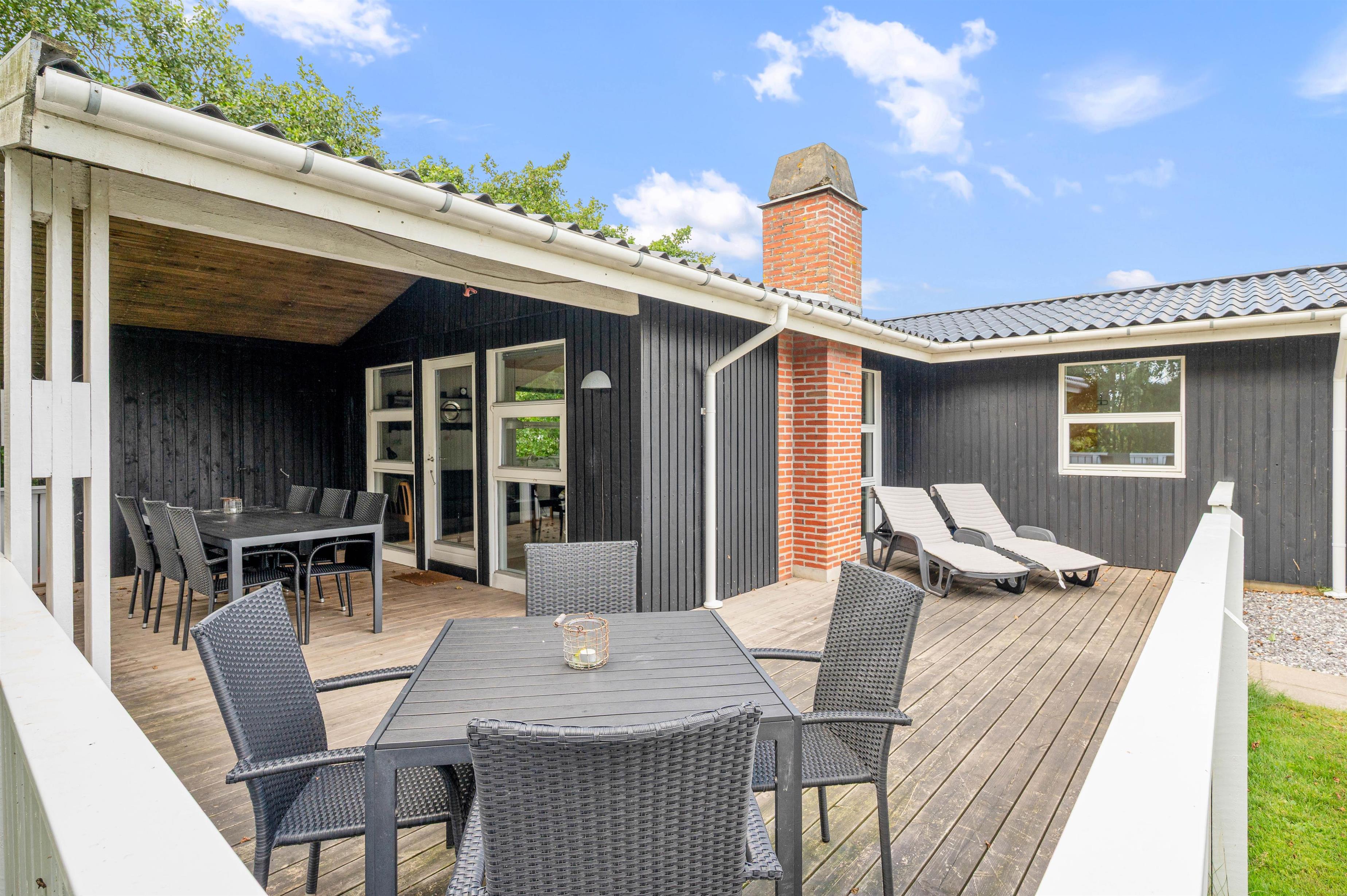 Et hyggeligt og velholdt sommerhus med både indendørs- og udendørs sauna. Feriehuset har en fin beliggenhed på en delvist afskærmet grund og en skøn terrasse. Her får I rigtig meget for pengene.