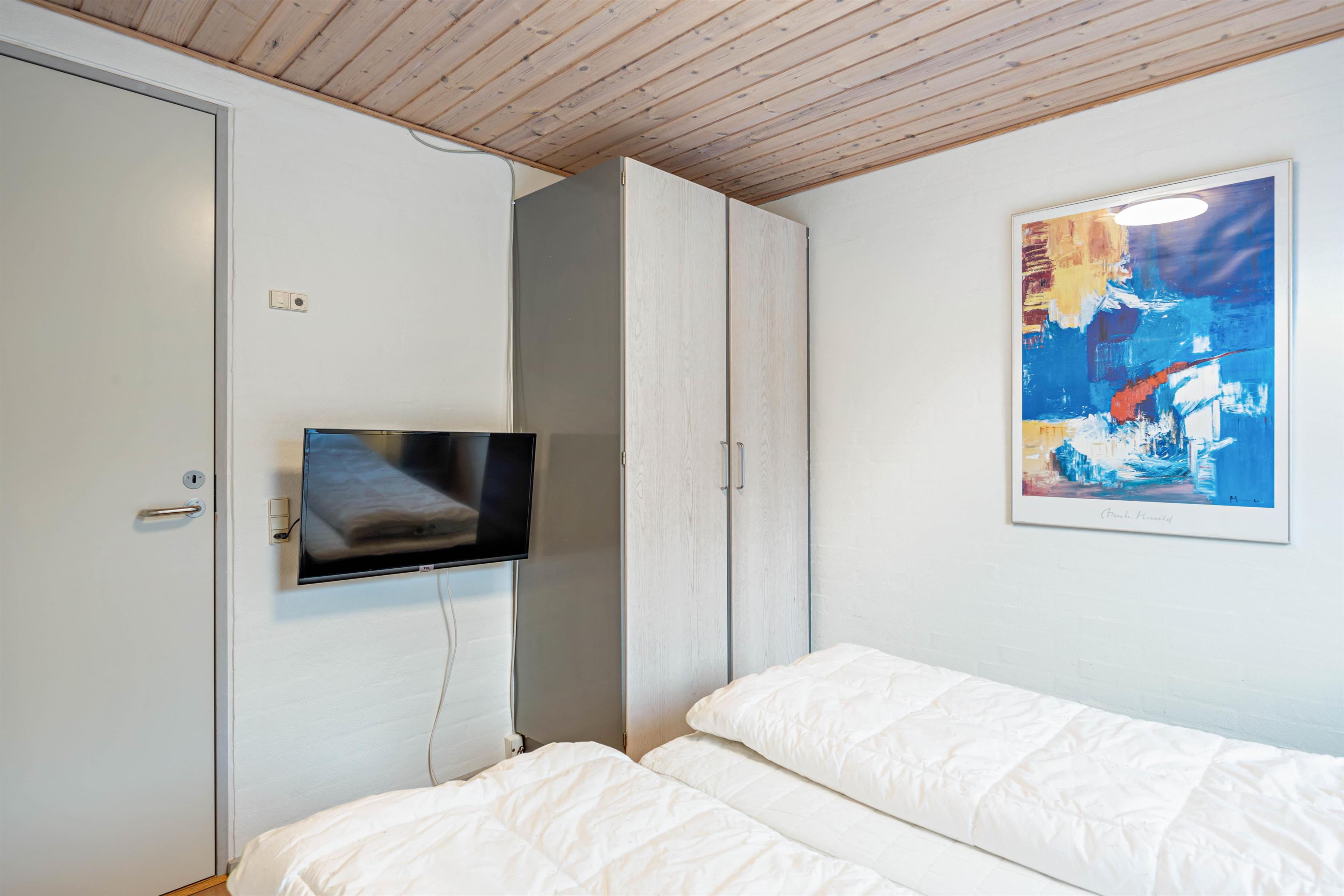 Sommerhusets 12 sovepladser er fordelt på 6 gode soveværelser, hvoraf de 3 af dem ligger på 1. salen. Værelserne er indrettet med komfortable senge, og også her er der gulvvarme. Som et ekstra plus har det ene værelse på 1. salen udgang til en skøn, overdækket altan.