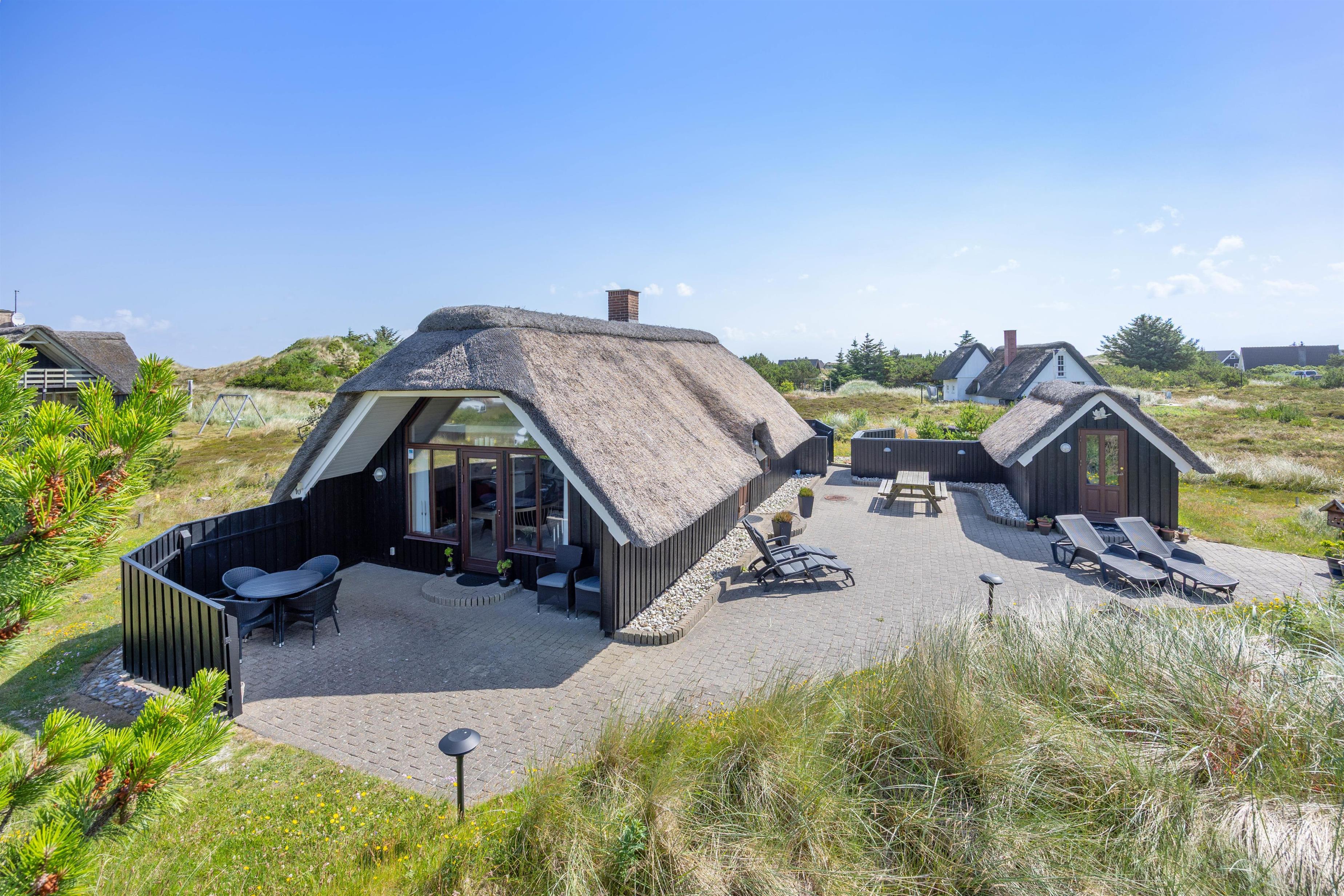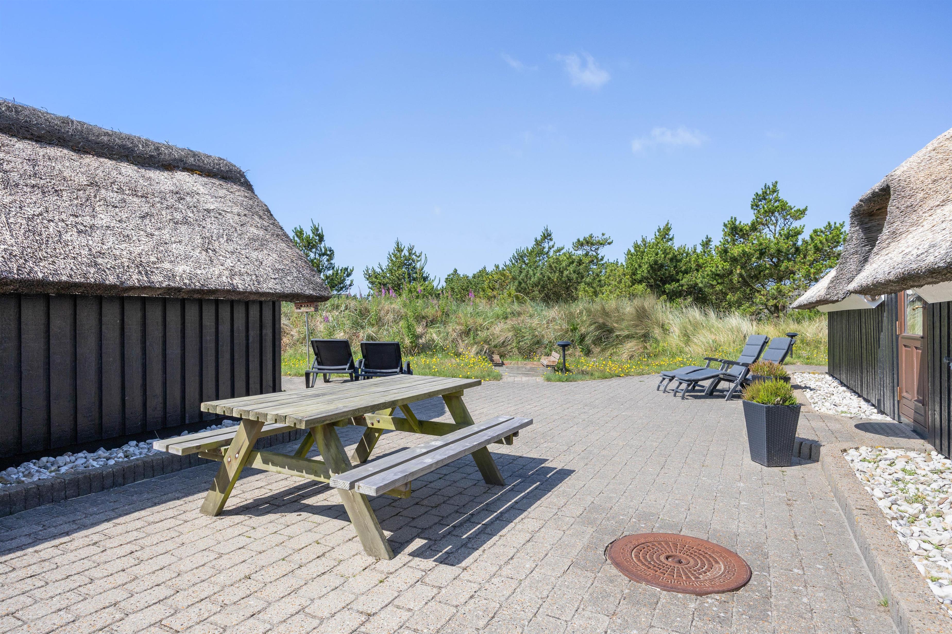 støder op til et stort hedeområde, der går helt op til havet, og er perfekt til lange vandreture. Rundt om huset kan du bevæge dig helt uforstyrret på terrasserne, som er udstyret med havemøbler, liggestole og grill. Til de mindste er der på terrassen opstillet en lille sandkasse.