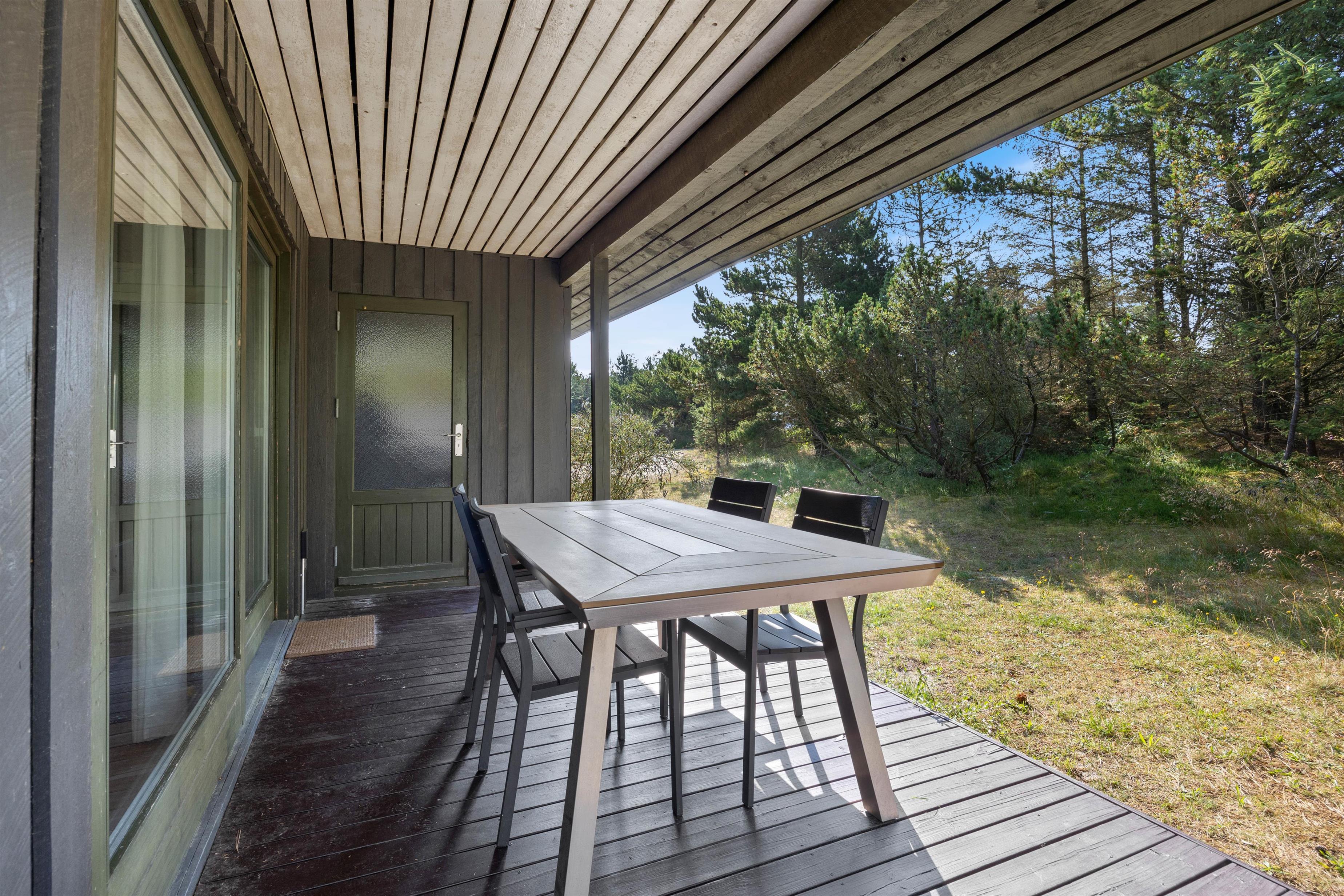 Sommerhuset har 2 dejlige terrasser, som er gemt bag de gamle træer, der sikrer privatliv på terrassen. Her kan I nyde friske luft og solens varme, uanset om den står på solbadning, morgenmad i det fri eller en hyggelig grillaften. Hos den lokale købmand, 800 meter fra jeres ferieadresse, kan I købe noget lækkert og smide på grillen, – dét er ægte sommerhushygge.