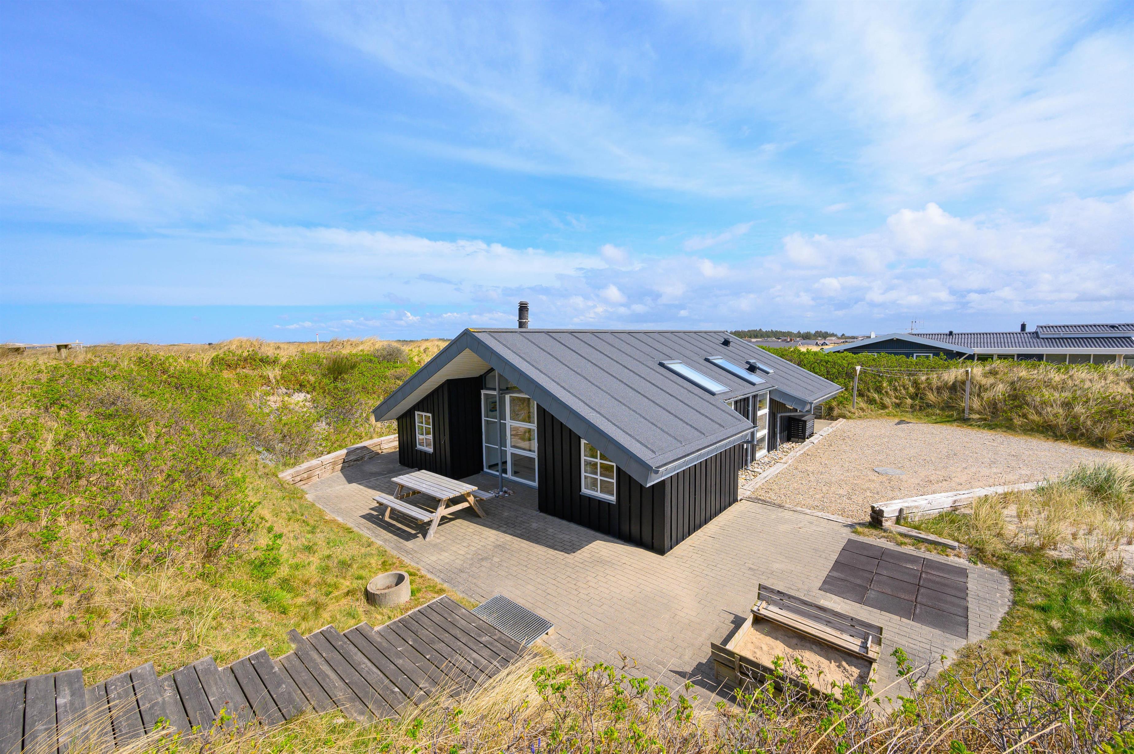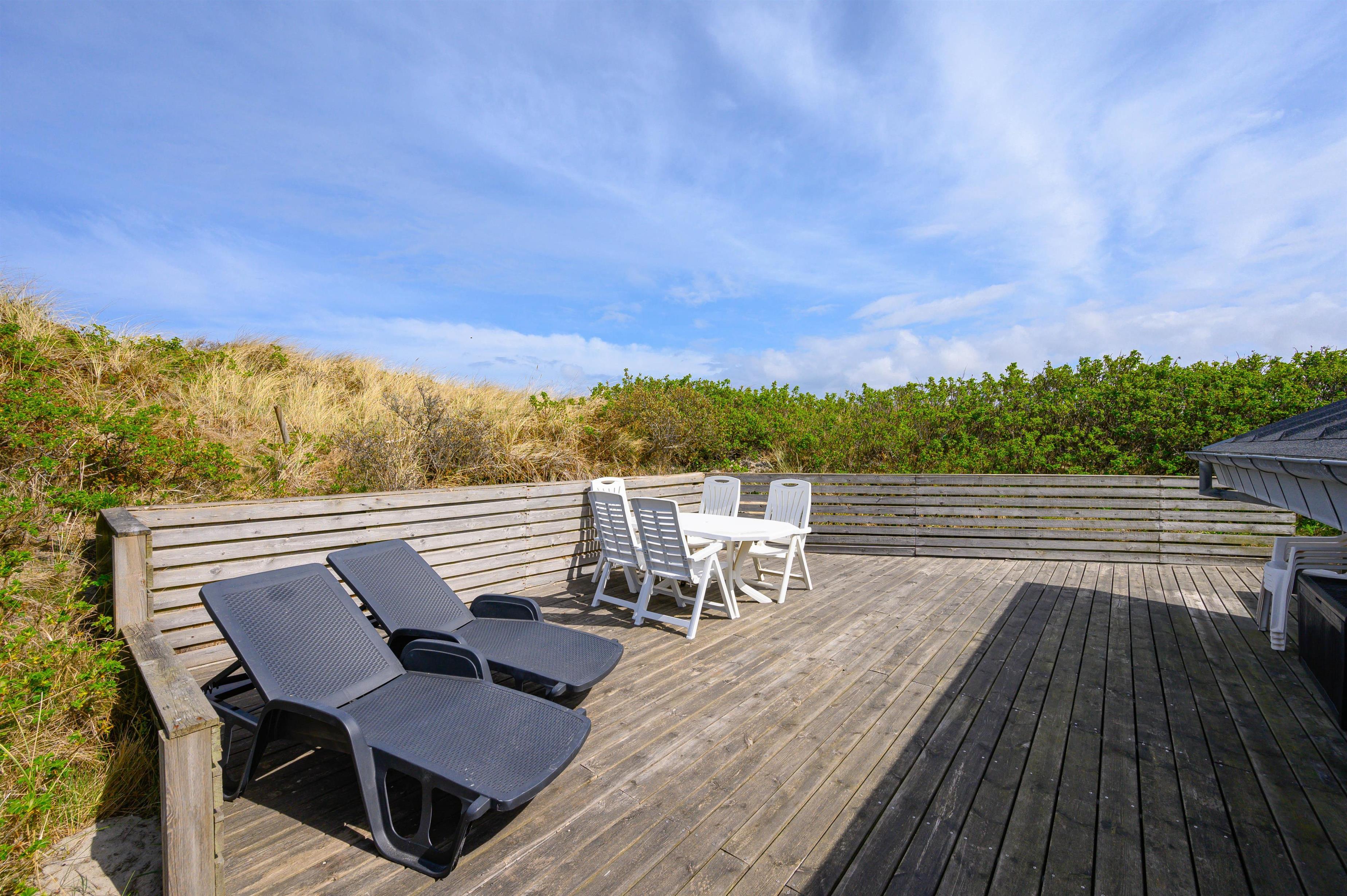 På ferien skal livet så vidt muligt leves udendørs, og det er der rige muligheder for i dette sommerhus. Det ligger kun 150 meter fra den skønne strand, på en klitgrund og er omgivet af fremragende terrasser, hvor man altid kan finde et sted i læ for vinden.