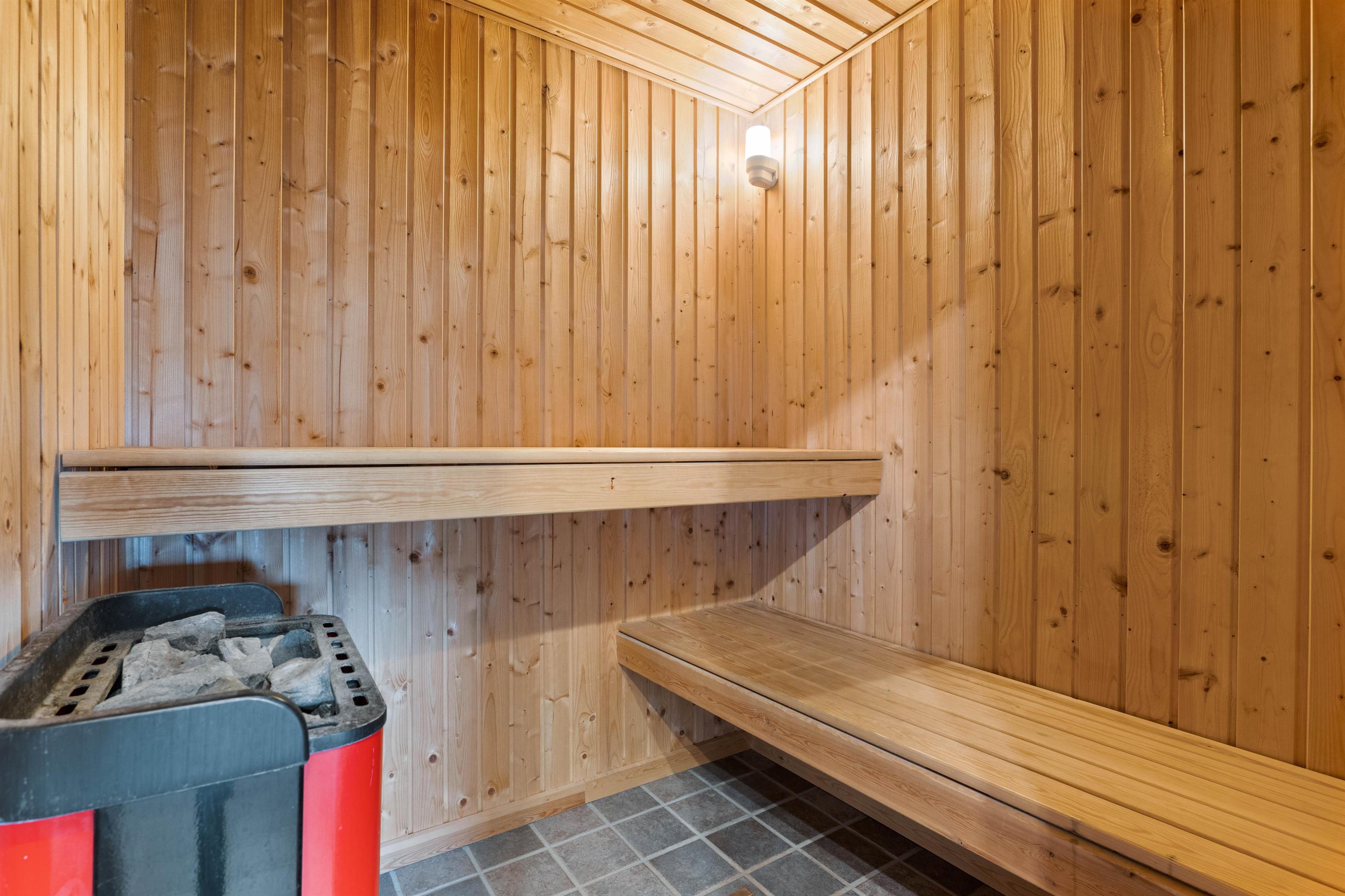 På badeværelset med gulvvarme byder sommerhuset på 2-personers spabad og en afstressende sauna – helt perfekt efter en tur ved stranden. Som et ekstra plus er der et fint gæstetoilet i sommerhuset. Desuden er der både vaskemaskine og tørretumbler i feriehuset, så I har muligheden for at vaske lidt tøj eller håndklæder.