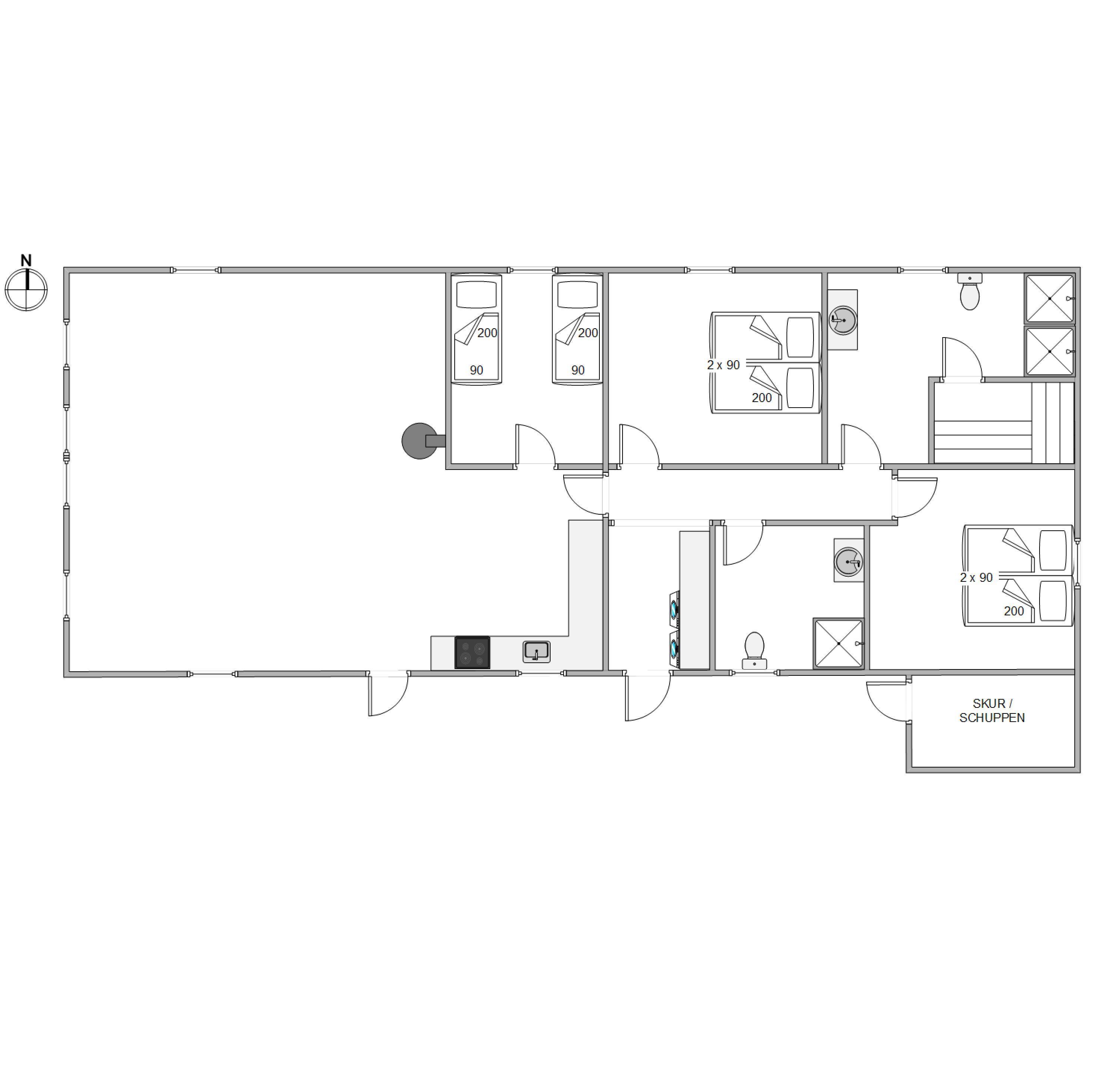 Vesterhavet er et besøg værd året rundt – og er det i de køligere måneder, venter den varme sauna, når I kommer tilbage til sommerhuset. Saunaen ligger i forbindelse med det største af de 2 badeværelser, der begge er udstyret med gulvvarme. Med varme og velvære i kroppen kan I sige godnat og krybe til køjs i feriehusets 3 soveværelser.