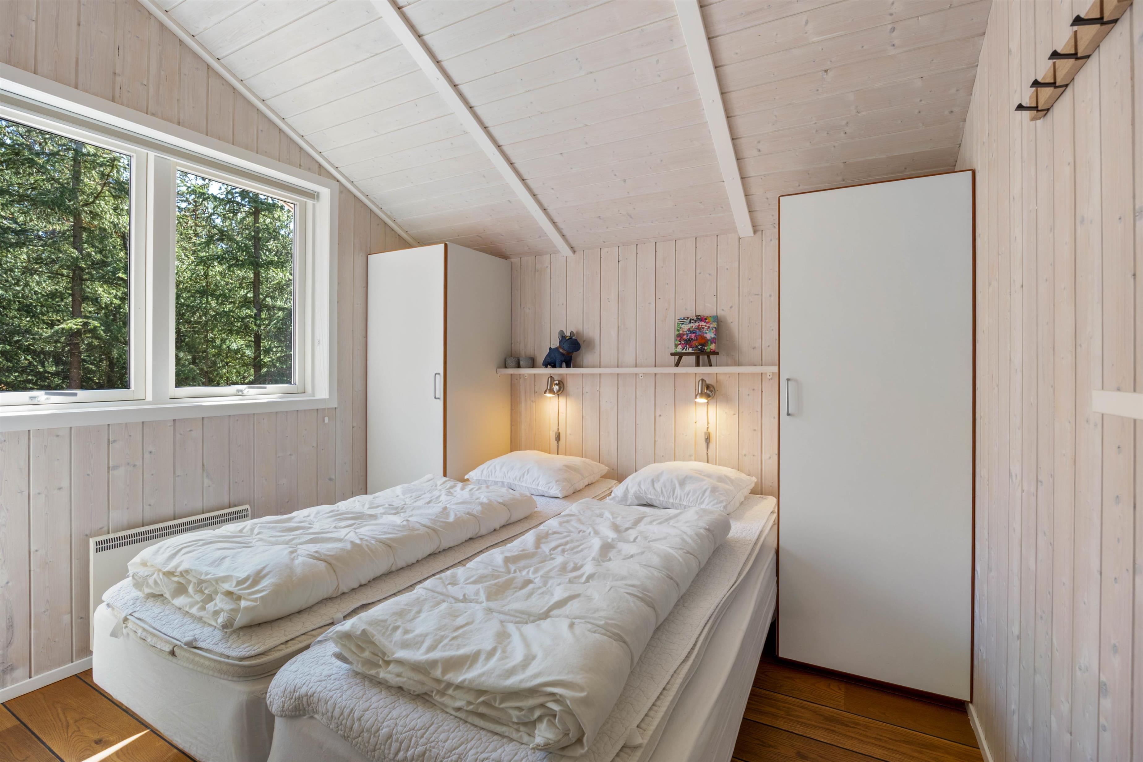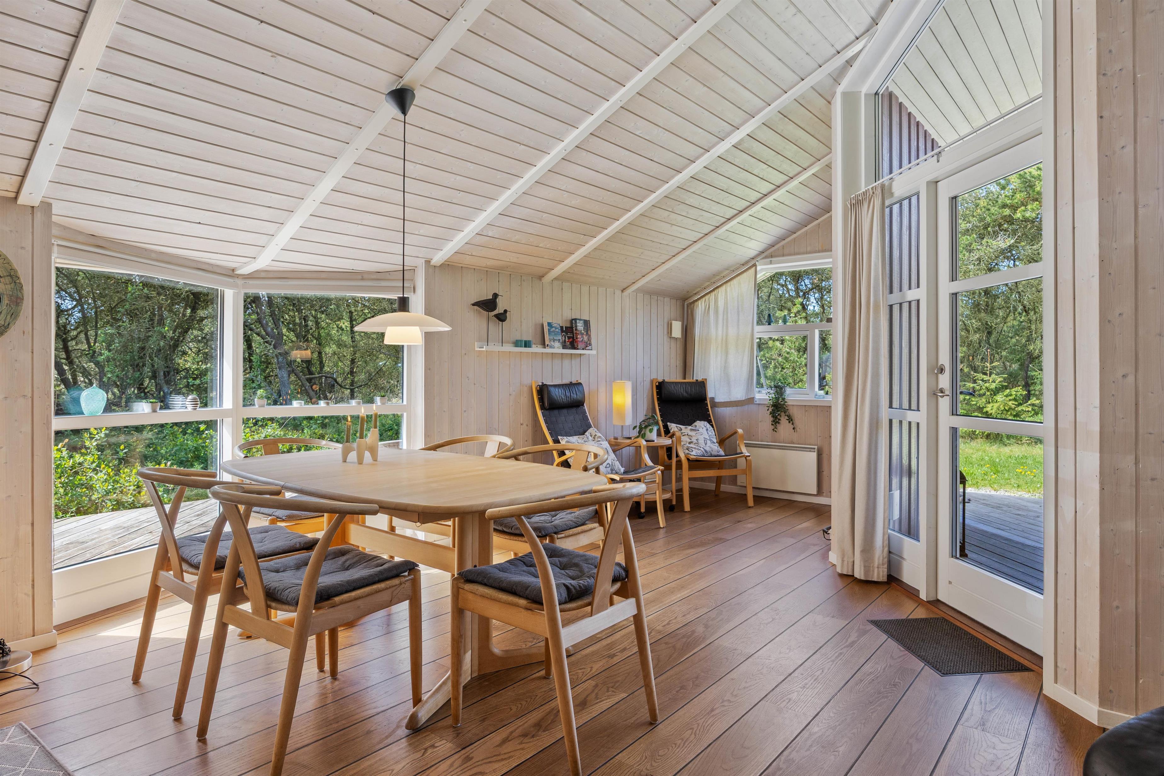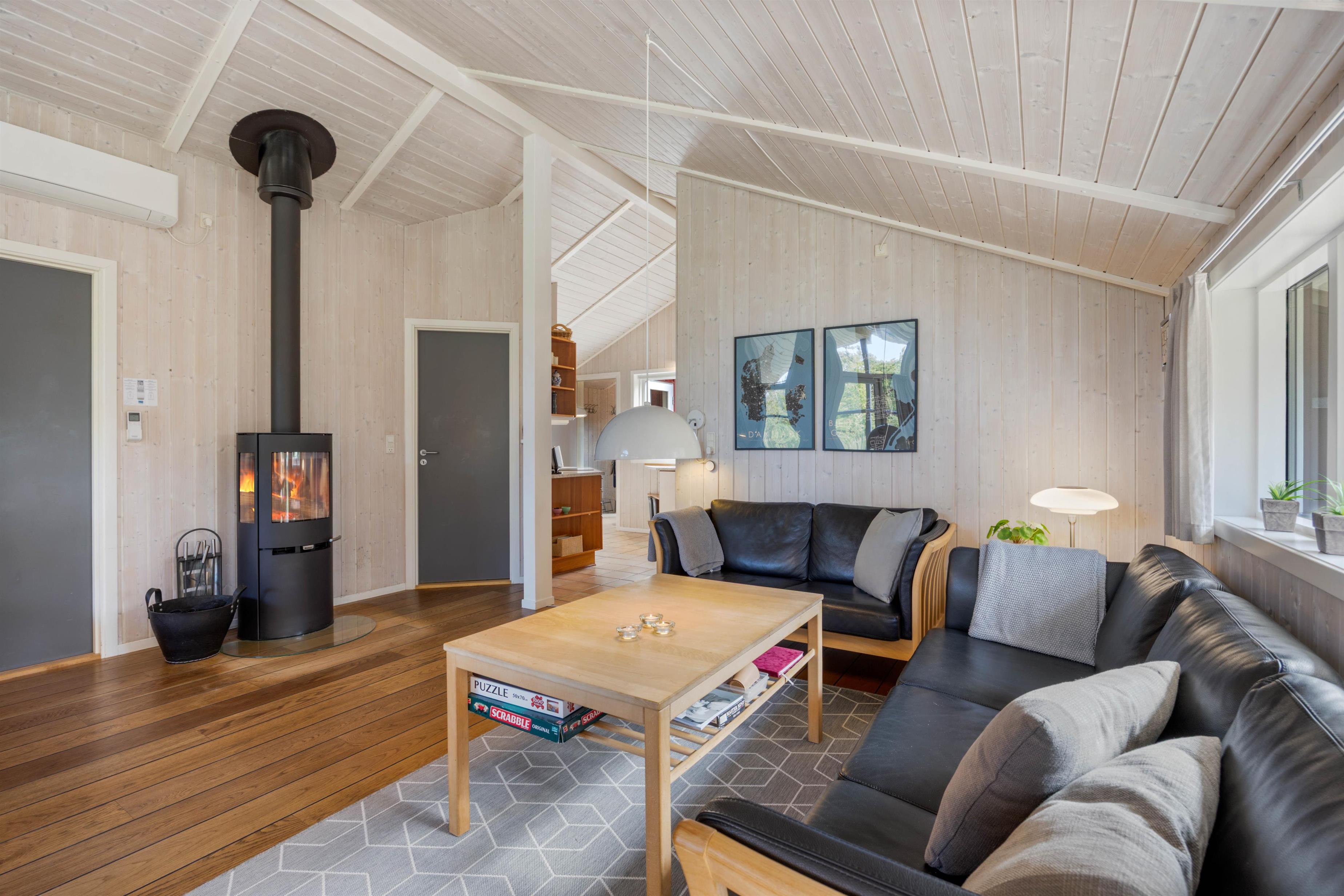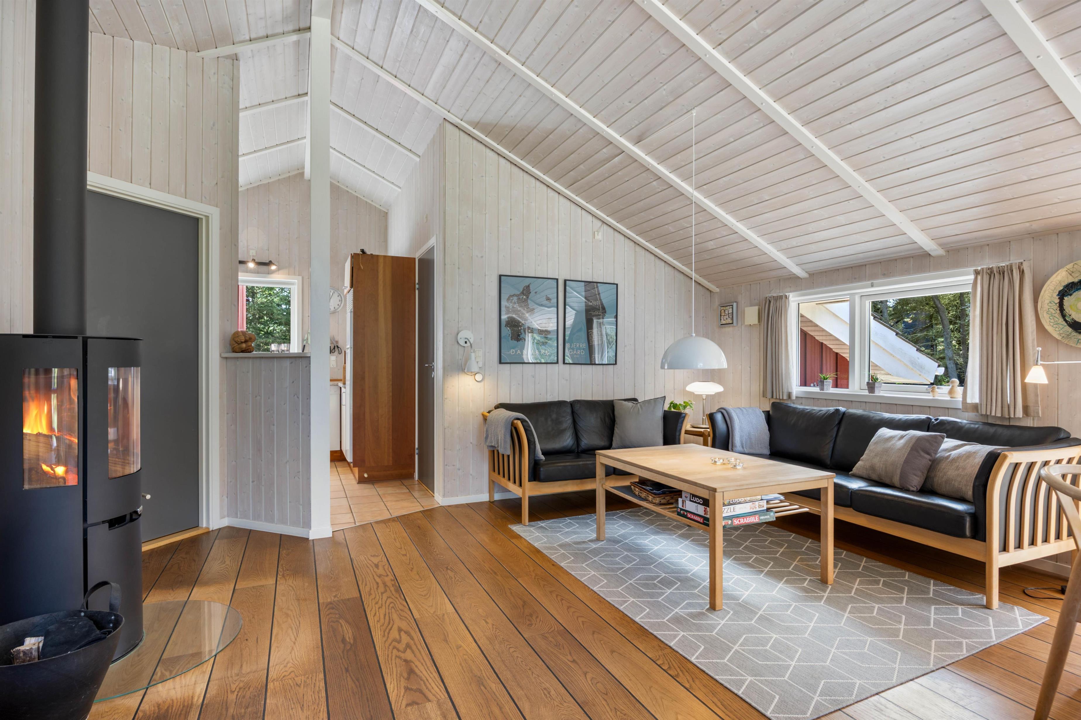 Når I træder ind i dette fine sommerhus, kan I rigtig mærke stemningen af ferie og afslapning. Feriehuset er lyst og dejlig indrettet. Et ”rigtigt” træferiehus med trægulve, trævægge/lofter og synlige bjælker, hvilket giver en rigtig hyggelig atmosfære.