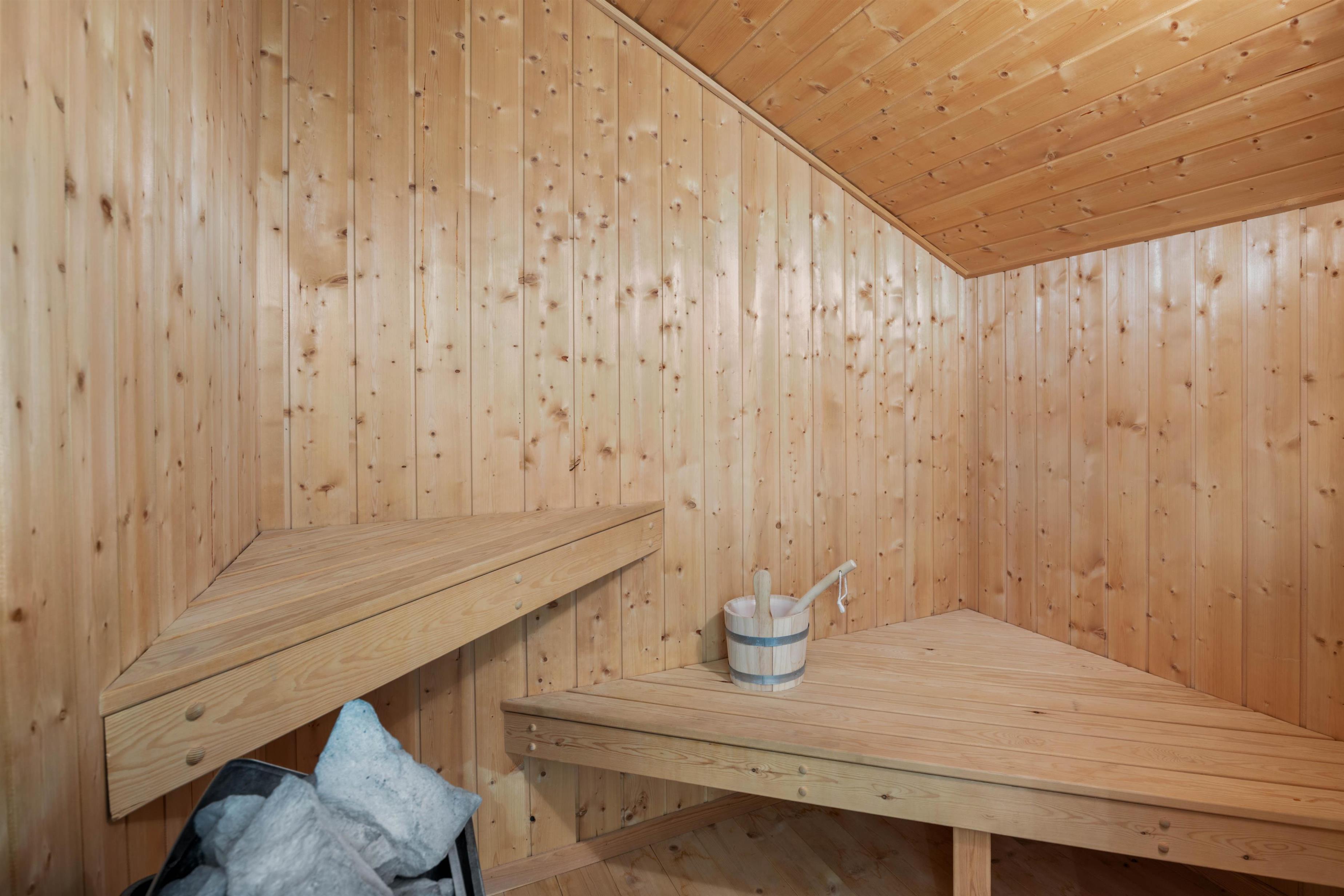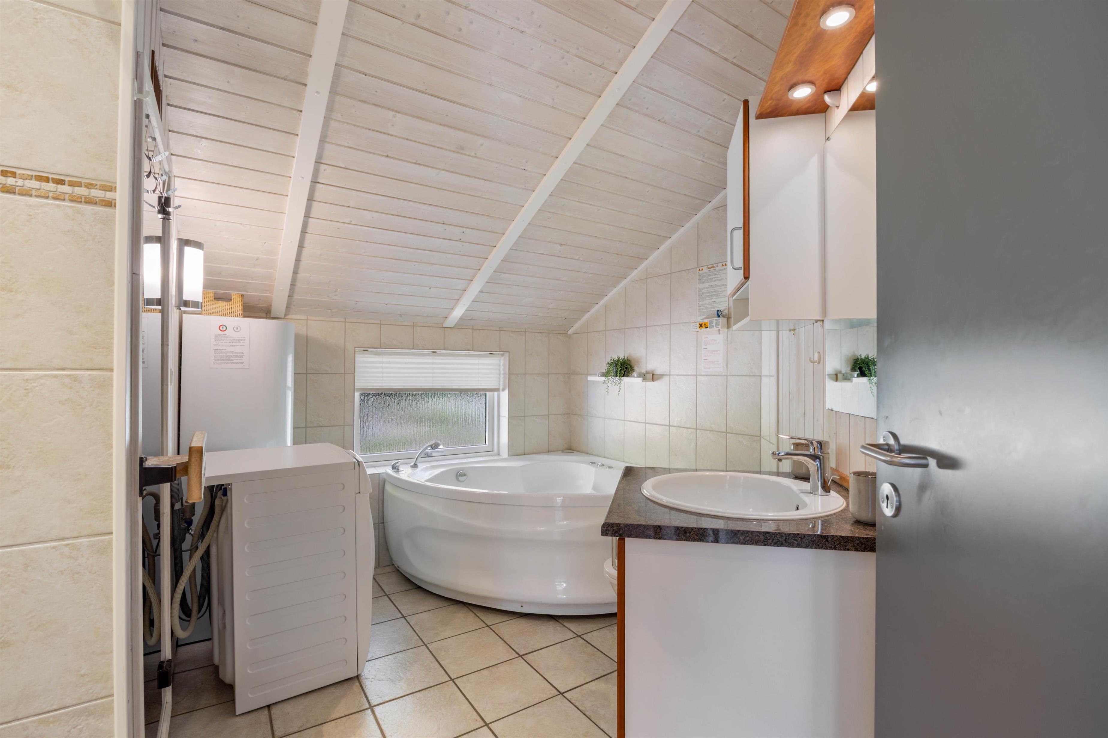 Badeværelset er, som alt andet, praktisk indrettet med plads til det hele, herunder også den uundværlige vaskemaskine. Der er også sørget for lidt ekstra wellness til jer, og efter en rask spadseretur i klitlandskabet eller ved stranden kan I lade jer forkæle med en tur i spaen og derefter saunaen. Velvære for krop og sjæl.