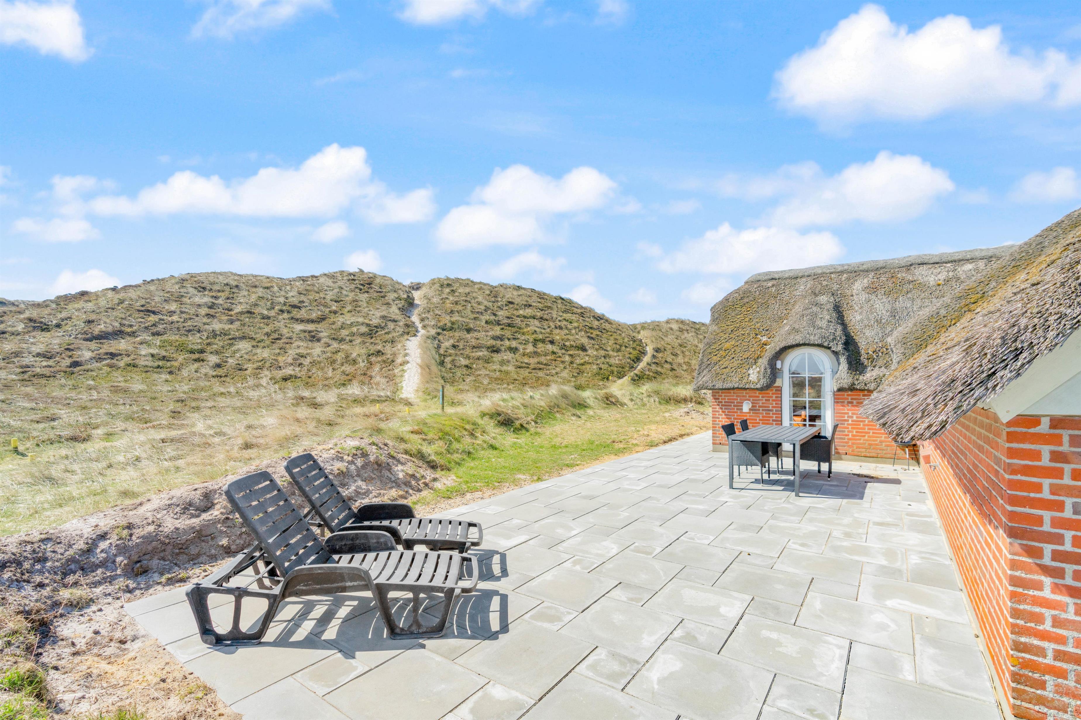 Terrasserne rundt om sommerhuset giver mulighed for at nyde solen, naturen og den friske rene havluft, mens I kan lytte til havets brusen bag klitterne.