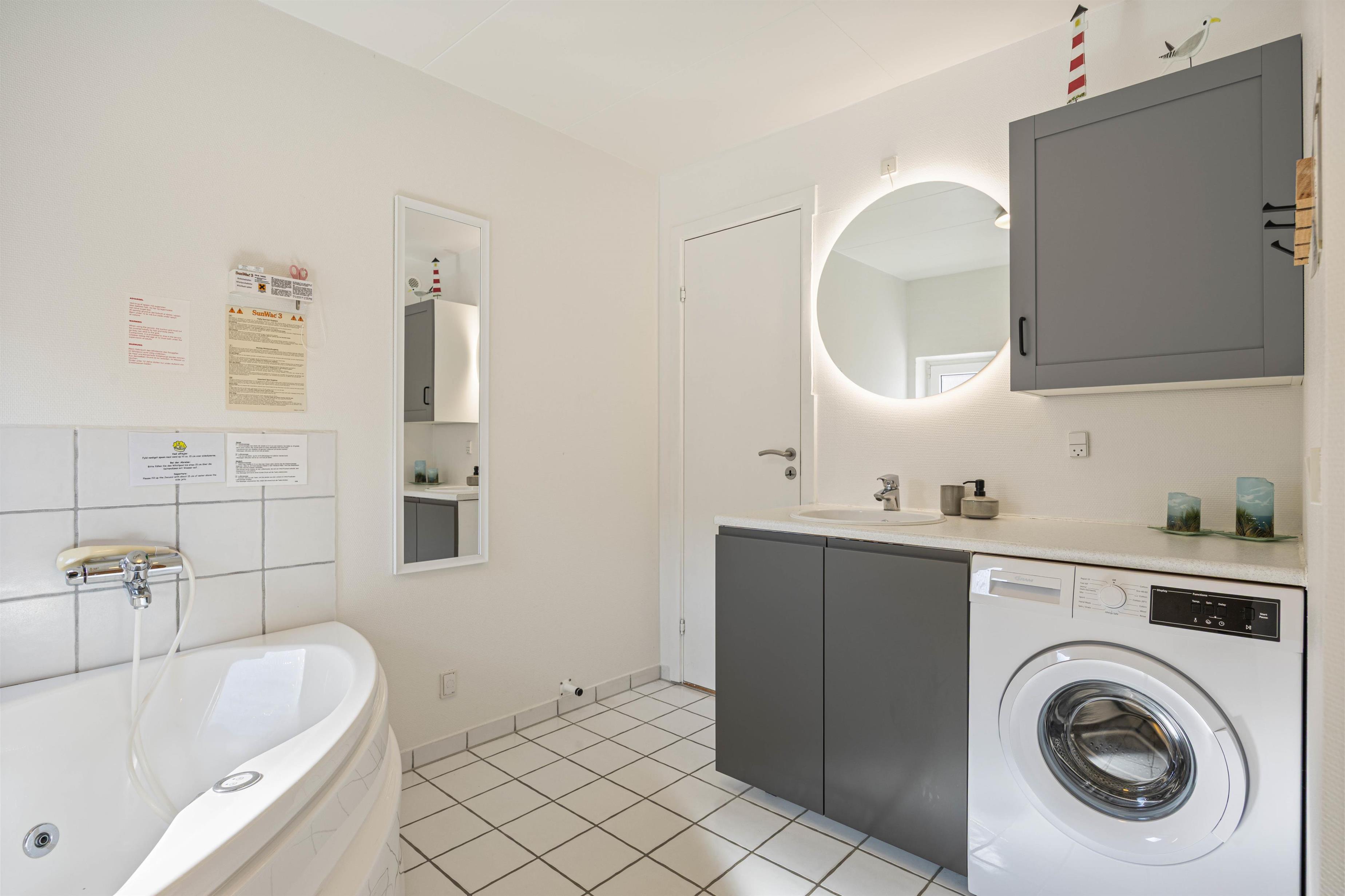 Efter en smuk dag på den kilometerlange sandstrand, hvor I har bygget sandslotte eller samlet muslingeskaller, kan du varme dig igen i sauna og spa, slappe rigtig af og bare nyde tilværelsen. Også på badeværelset er der gulvvarme, og der er desuden en vaskemaskine i feriehuset.