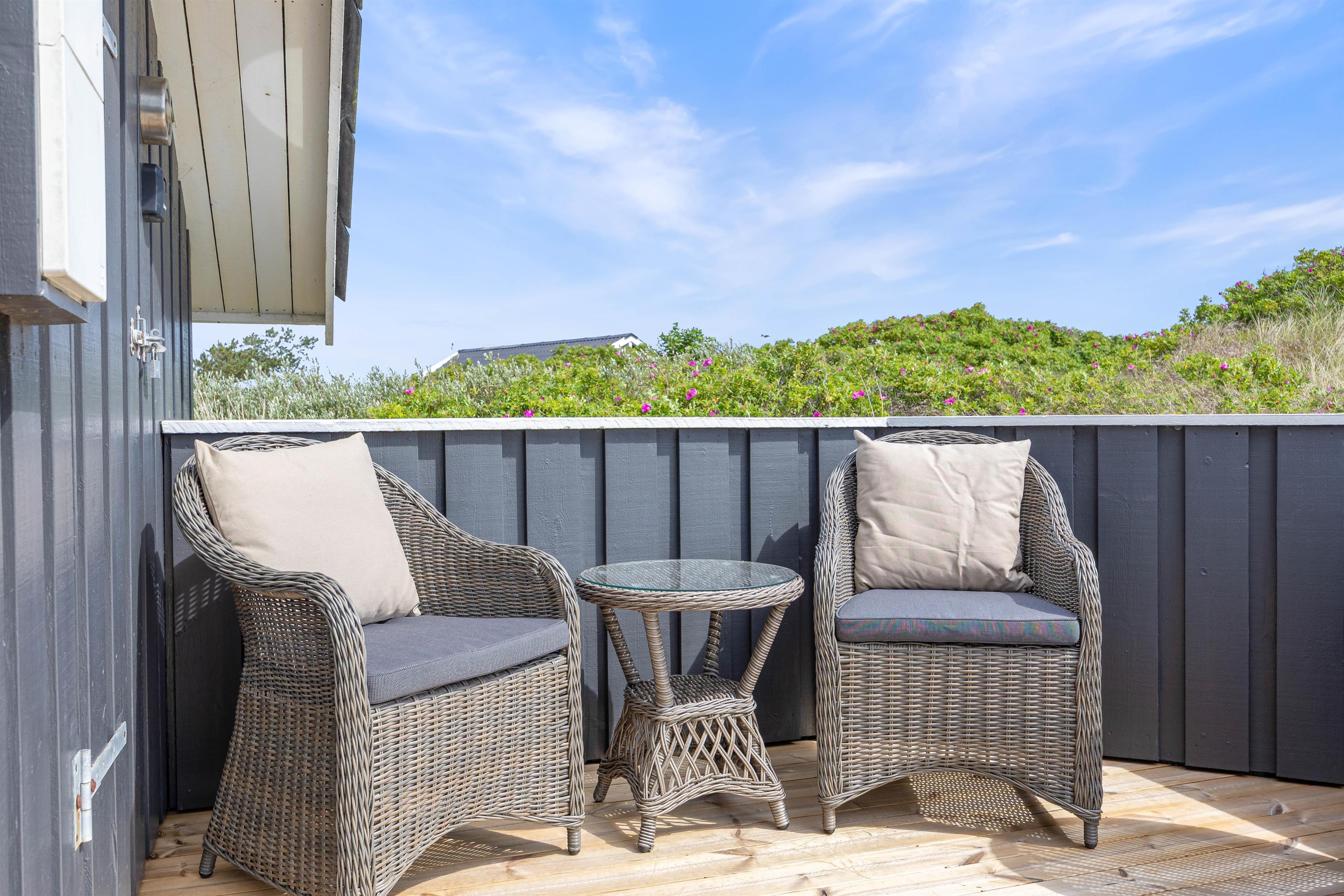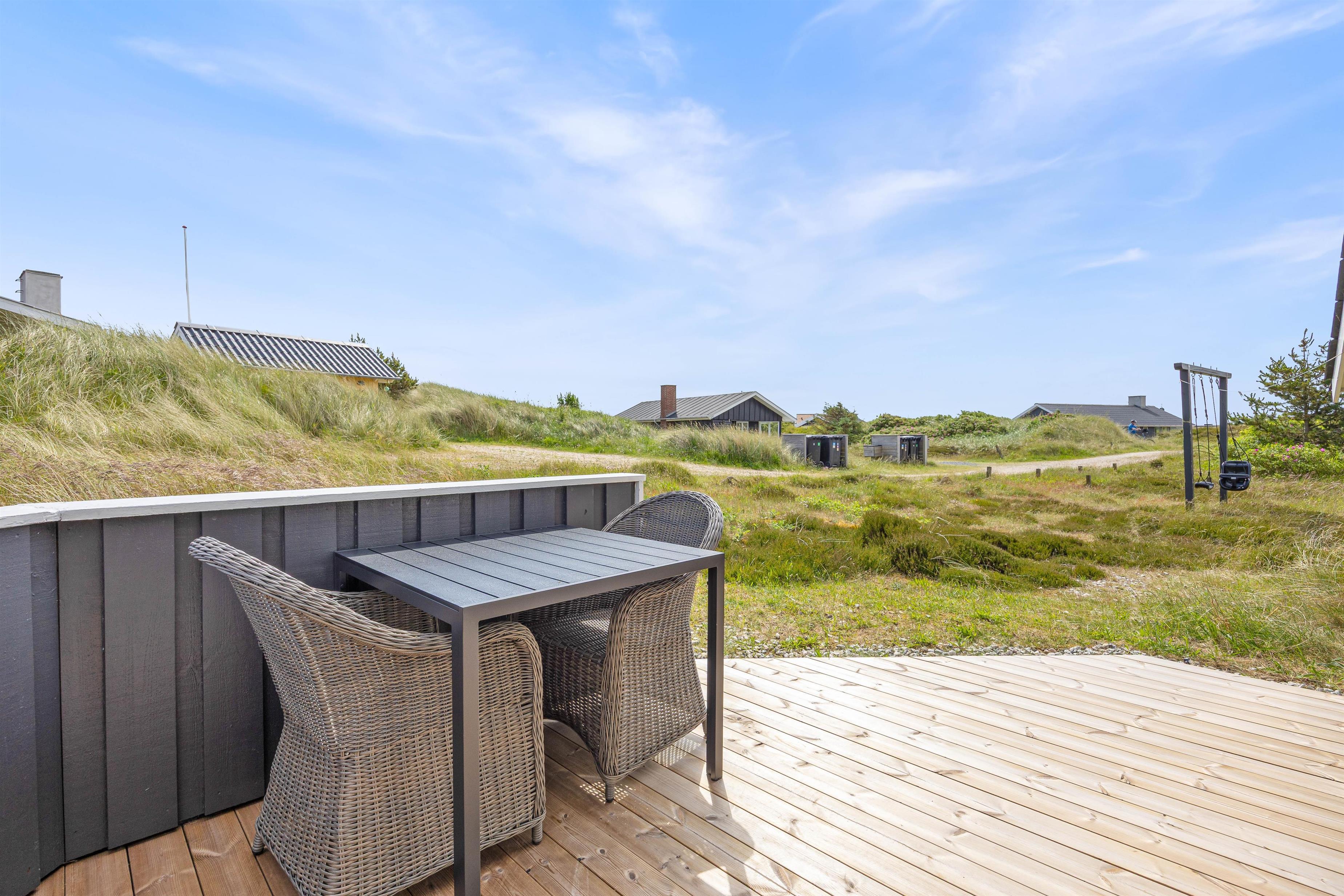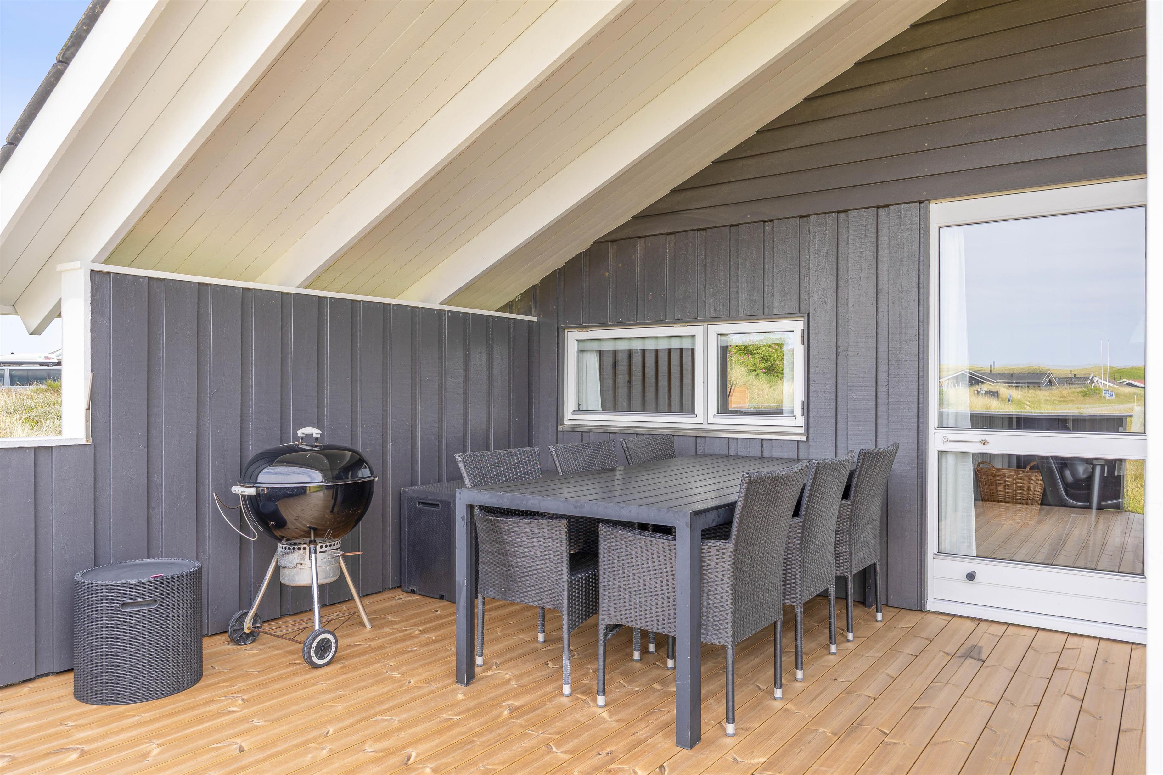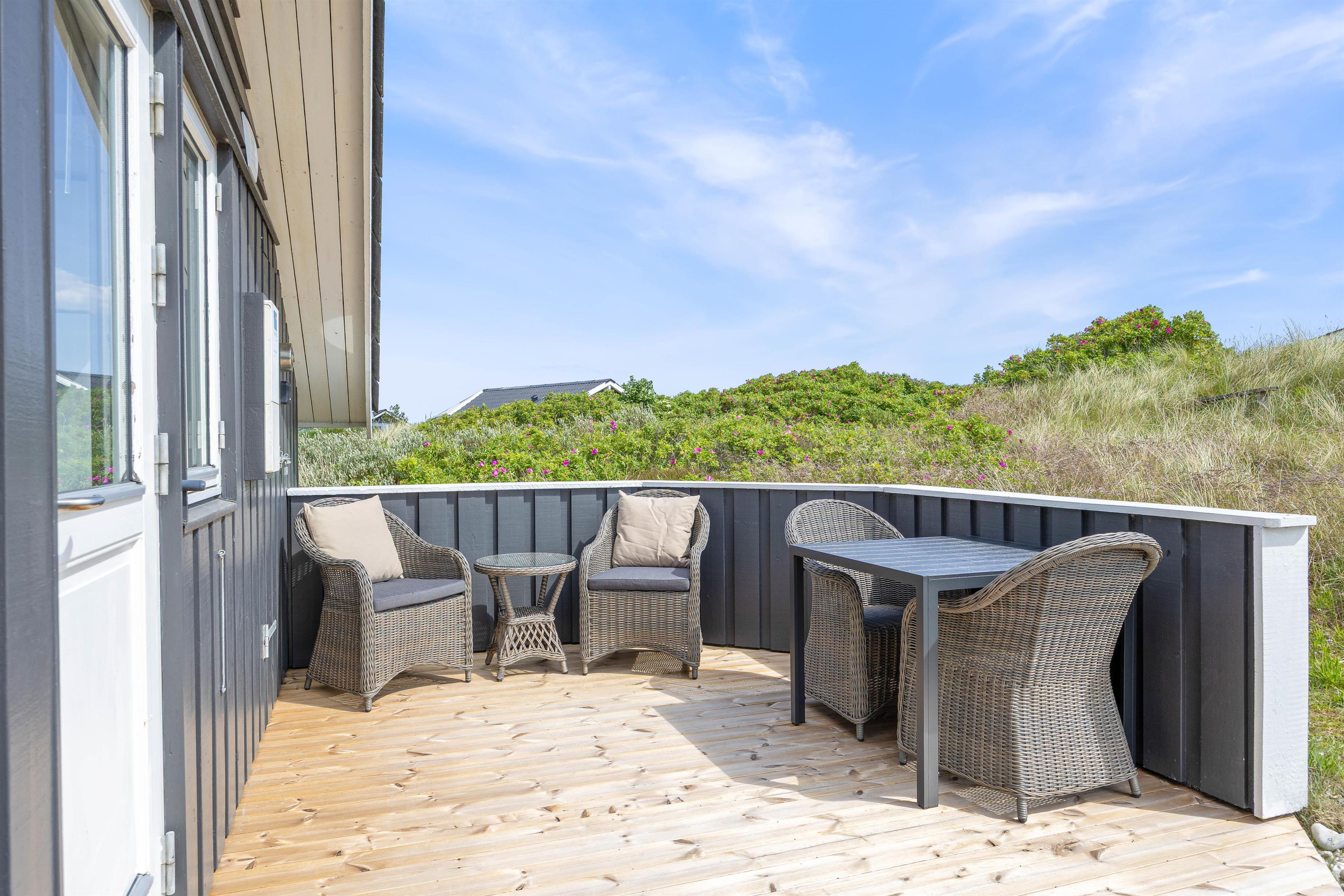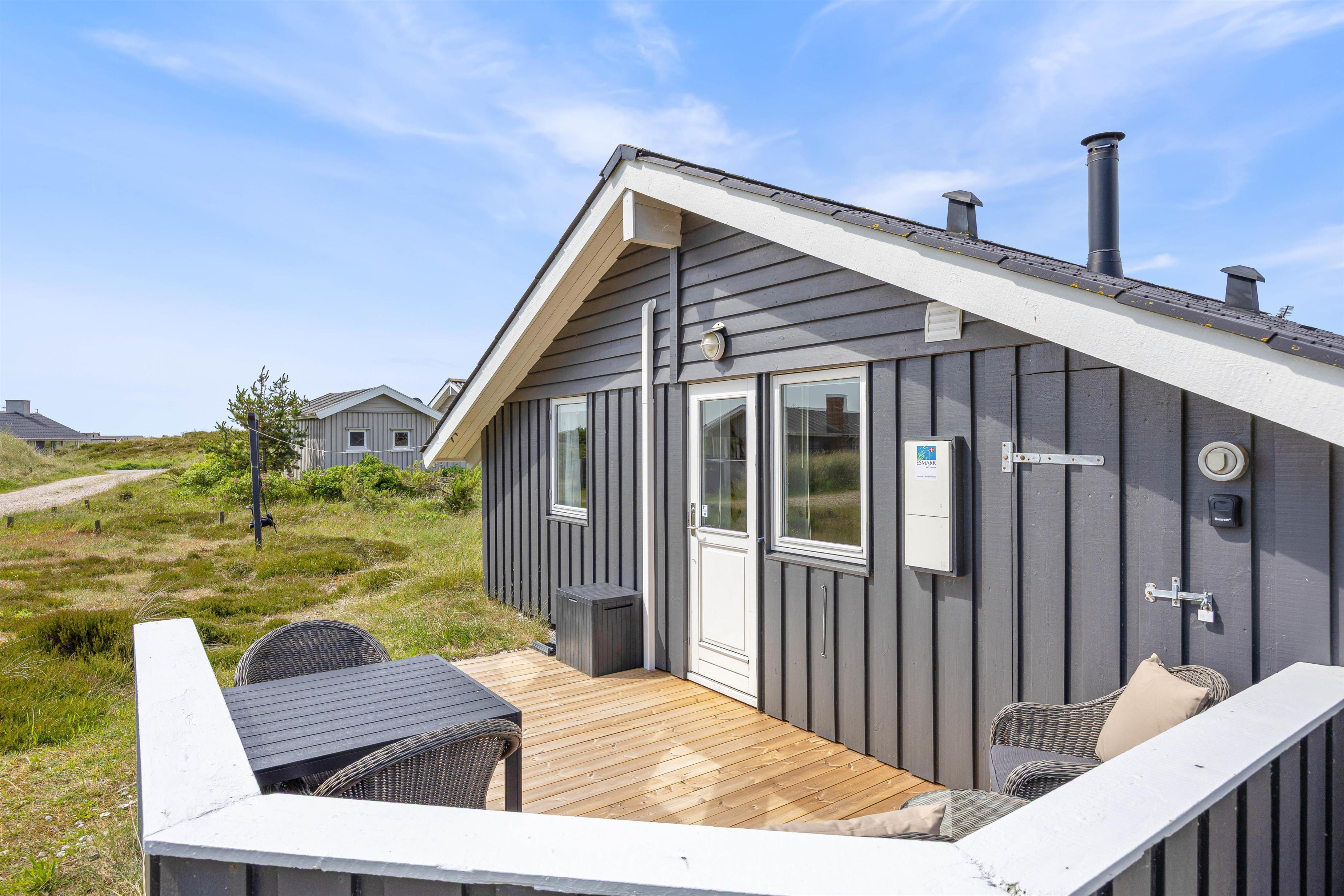 Feriehuset er beliggende i et dejligt ferieområde, der er kendetegnet ved smukke vestjyske natur. Især stranden indbyder til lange gåture langs vandet. Her giver den friske salte luft fornyet energi. Til stranden har I blot 400 meter, mens der til den lokale købmand er 1100 meter. Her kan I købe nybagte rundstykker, is til det varme vejr og lækkert kød til grillen.