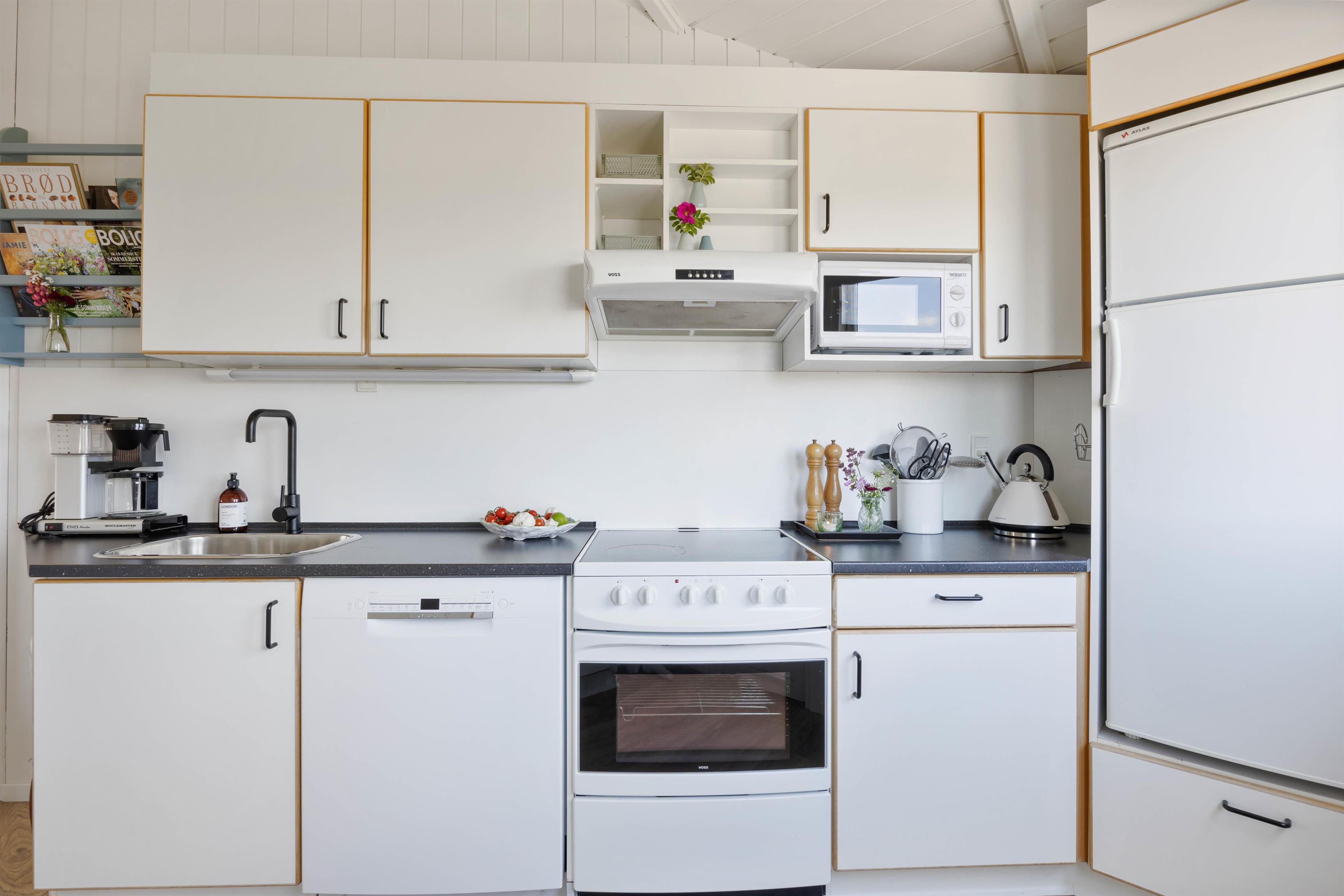 Hjerterummet her er nemlig stuen, hvorfra der er åbnet op ind til køkkenet. Her kan I tilbringe mange timer sammen og sammen hver for sig, mens nogen tilbereder et lækkert måltid i det funktionelle køkken, der bliver spillet brætspil og en tredje læser sin yndlingsbog med benene på sofaen. I den bløde sofa kan I sætte jer godt til rette med den gode bog, film eller spille det sjoveste spil på sommerhusets Play Station 4 – det er ferie!