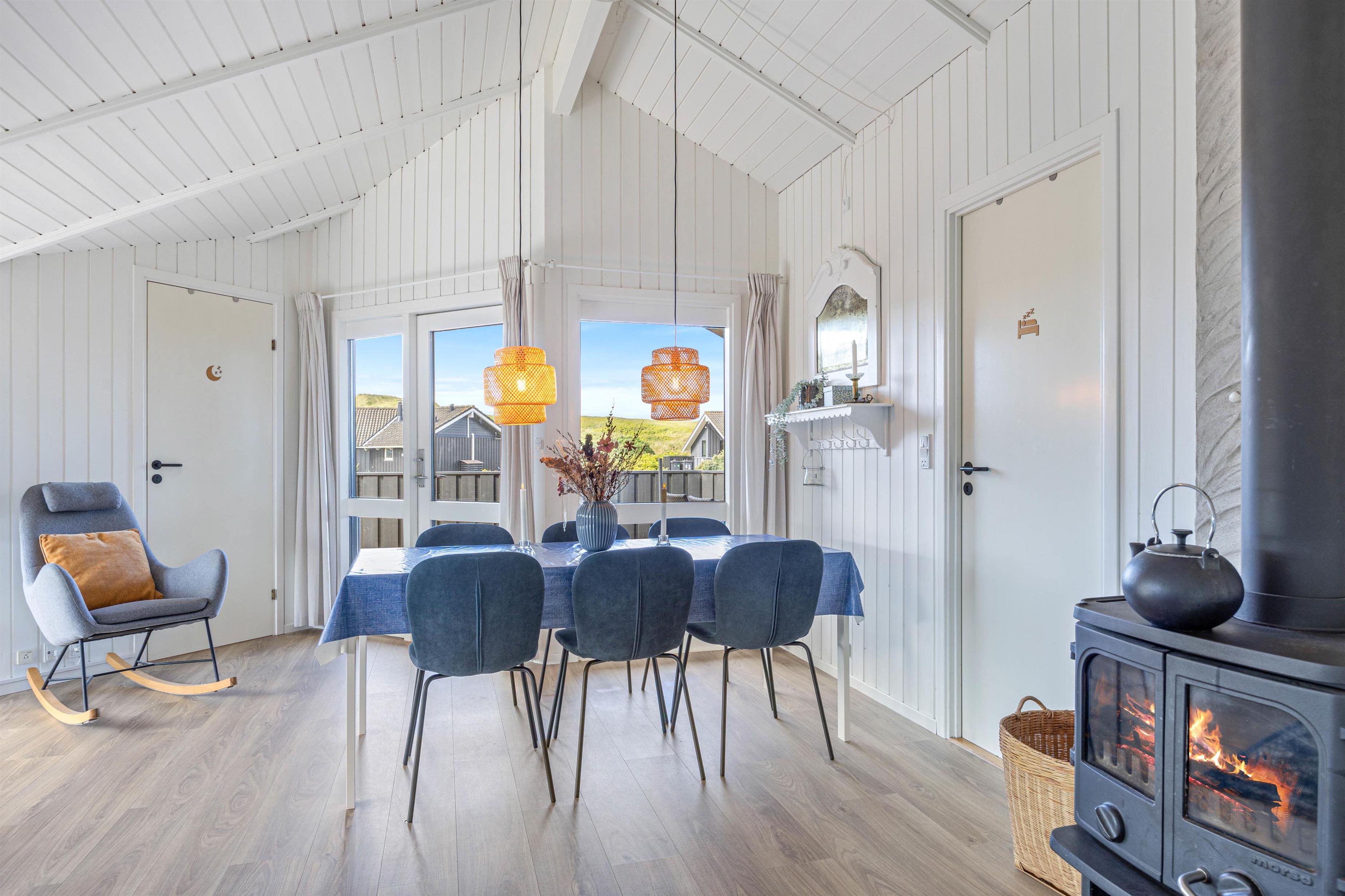 I dette skønne feriehus vil I hurtigt kunne føle jer hjemme! Afstemte farver, komfortable møbler og den knitrende brændeovn skaber et stemningsfyldt feriehus, hvor man kun har lyst til at nyde tiden med venner og familien – om det er med kortspil, Play Station eller wellness er dog helt op til jer.