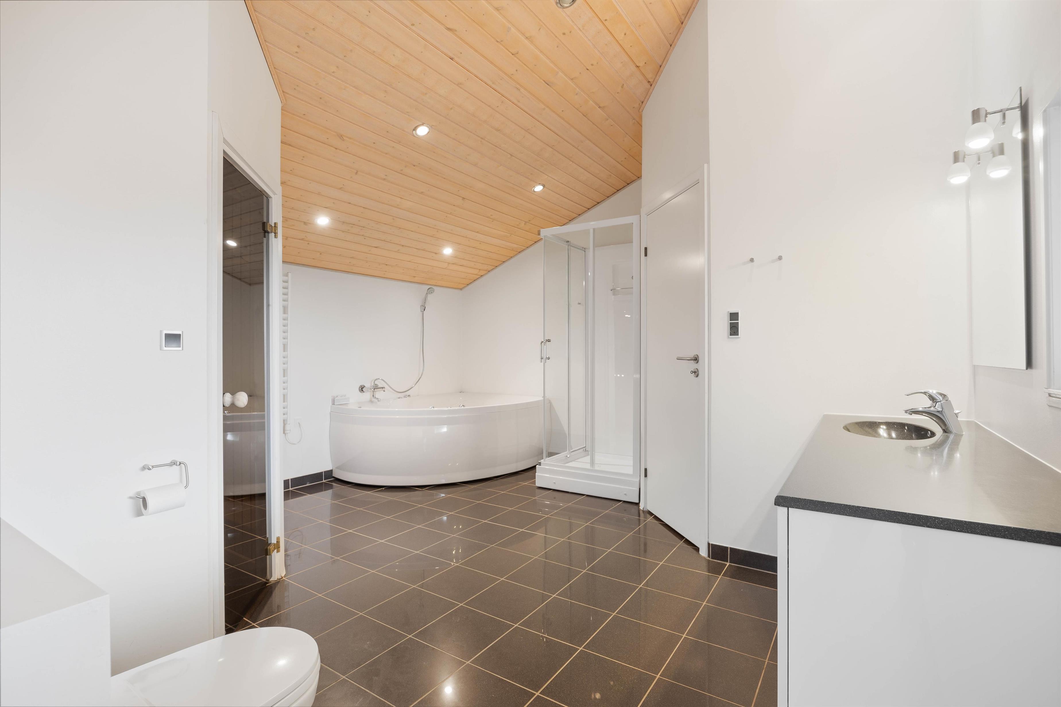 Det åbne køkken- og spisestueområde er feriehusets hjerte og indbyder til mange timers samvær og fælles madlavning. Om aftenen kan I læne jer tilbage i sofaen og hygge jer med en god film, der kan streames vha. Chromecastet. Stuens lænestol er perfekt til ferielæsningen, mens brændeovnen knitrer i baggrunden. Alrummet varmes op af en energibesparende varmepumpe.