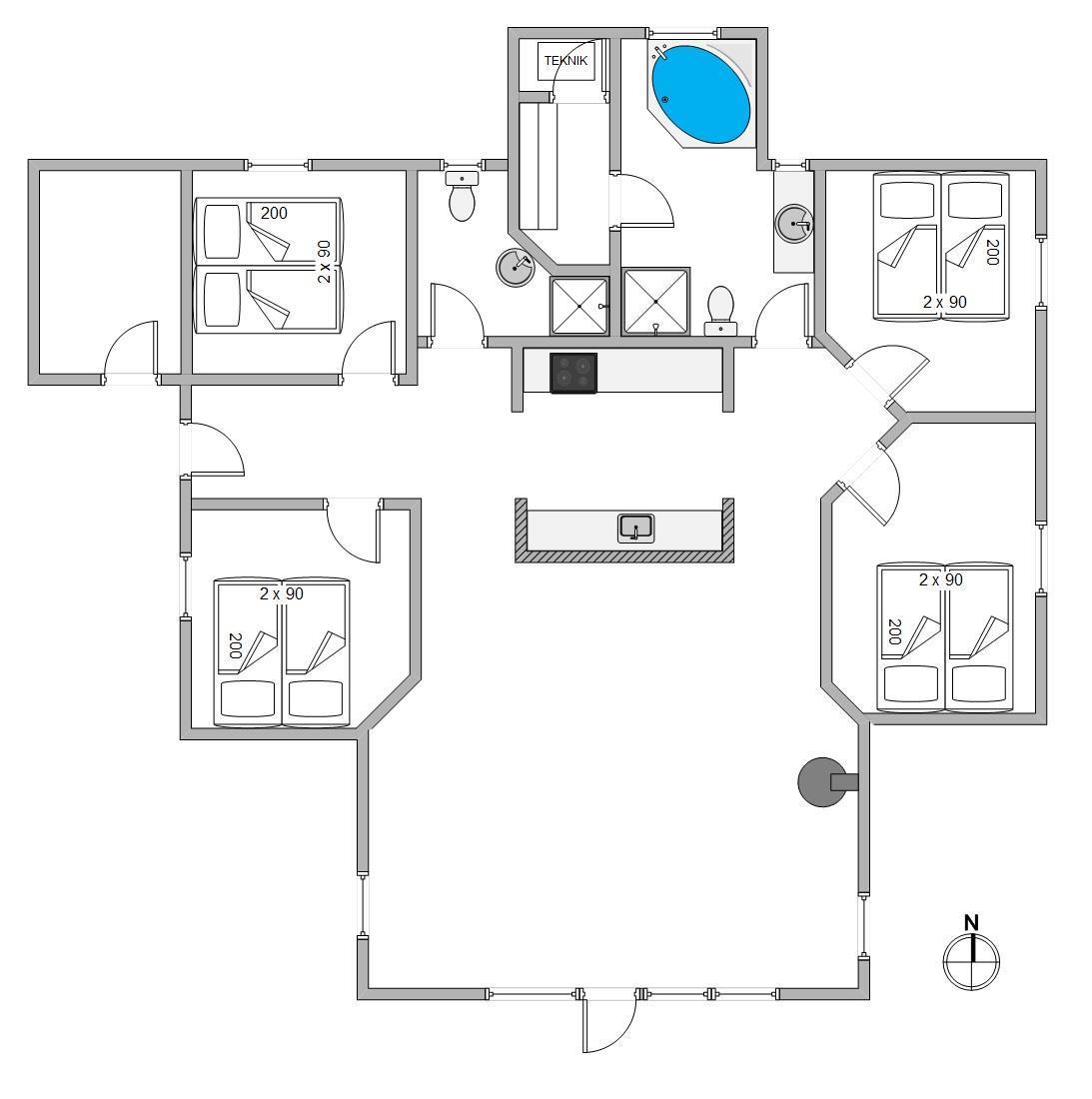 For optimal afslapning står det store 6 personers standvandsspa og den rummelige sauna til rådighed i wellness-afdelingen, som I finder på det ene badeværelse. Som et ekstra plus er der nemlig 2 badeværelser i sommerhuset, så der ikke opstår kø om morgenen. Der er gulvvarme på begge badeværelser, og I sommerhuset finder i desuden både vaskemaskine og tørretumbler.