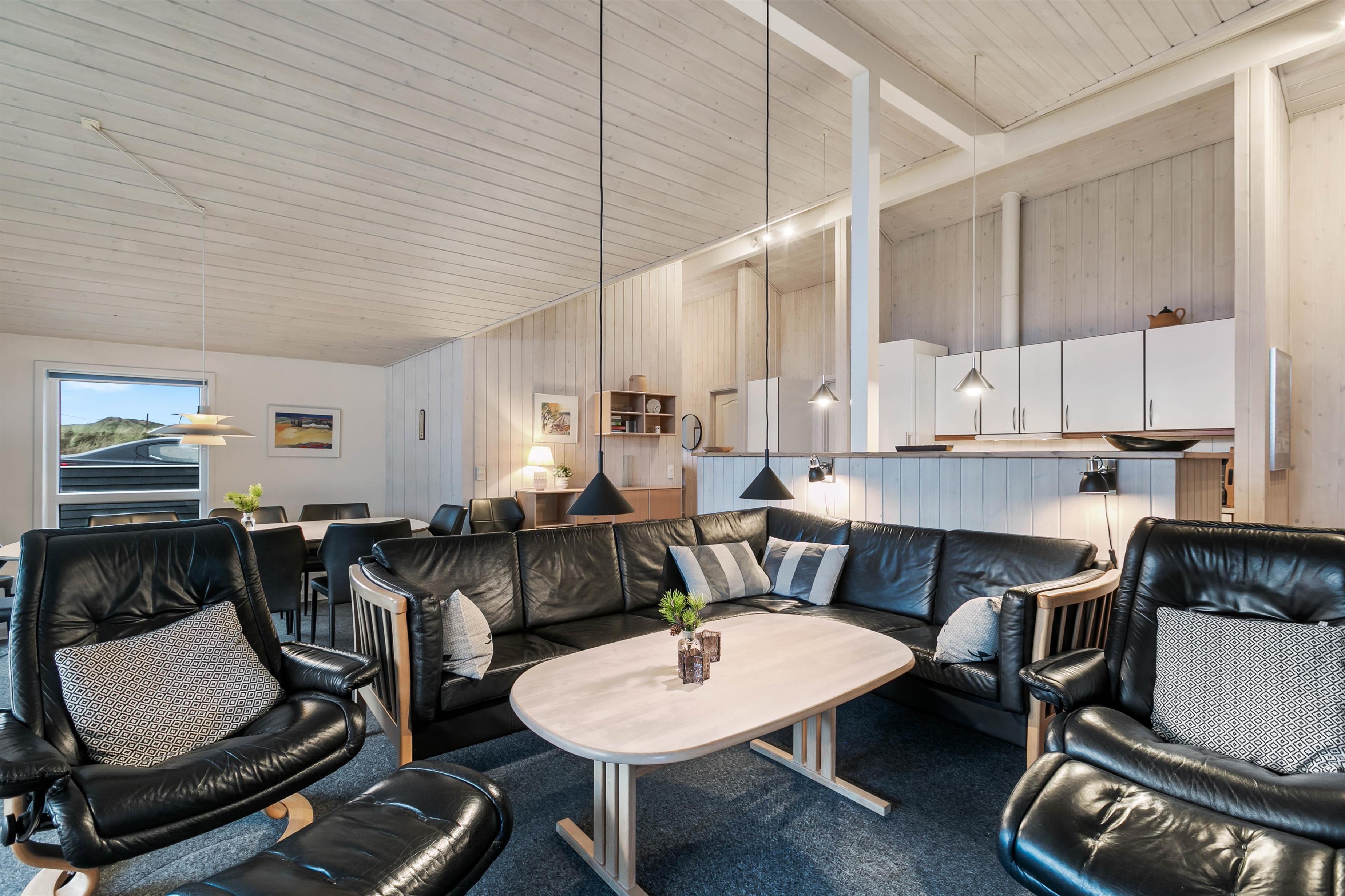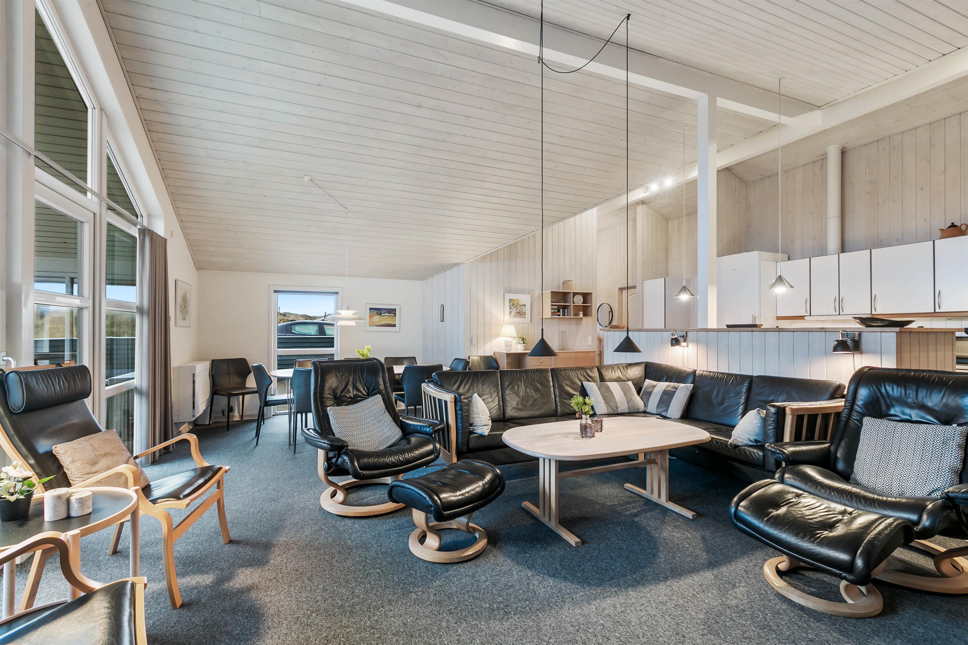 Her har I mulighed for at holde ferie i et feriehus tæt på stranden i Vestjylland. Sommerhuset er rummeligt og velindrettet, så det egner sig til den store familie på op til 10 personer. På det store badeværelse er der både sauna og et spabad til 6 personer. Derudover er der gode afskærmede og delvist overdækkede terrasser til hyggelige grillaftener.