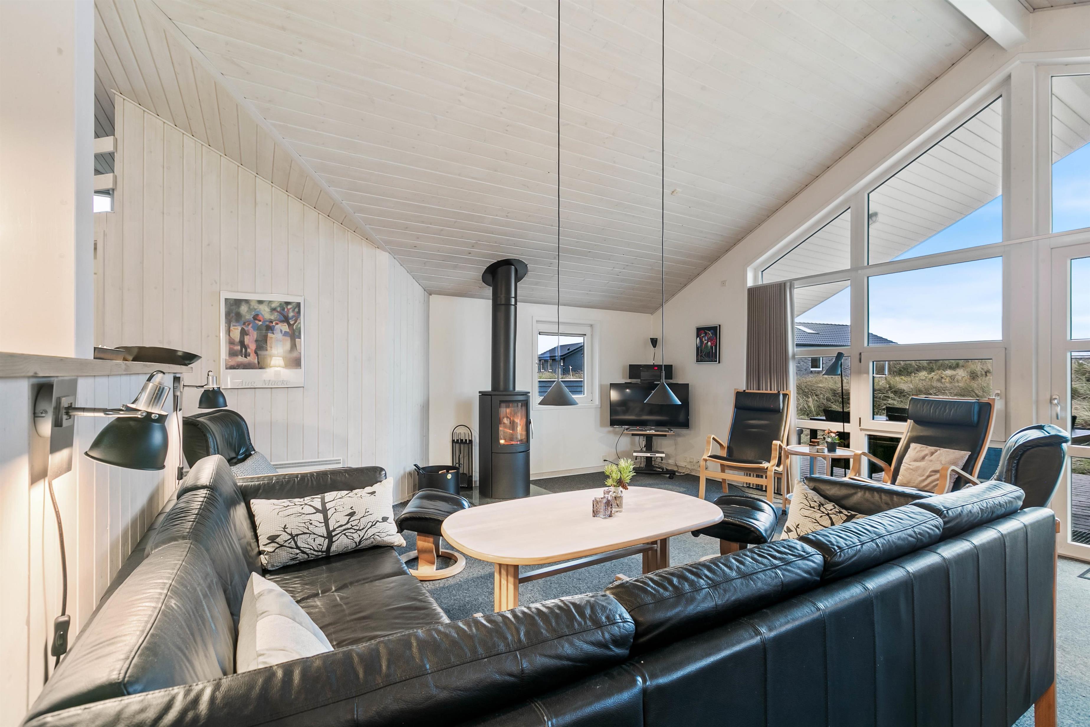 Feriehuset opvarmes bl.a. med en energibesparende varmepumpe, der holder strømomkostningerne nede og skaber et godt indeklima i feriehuset.