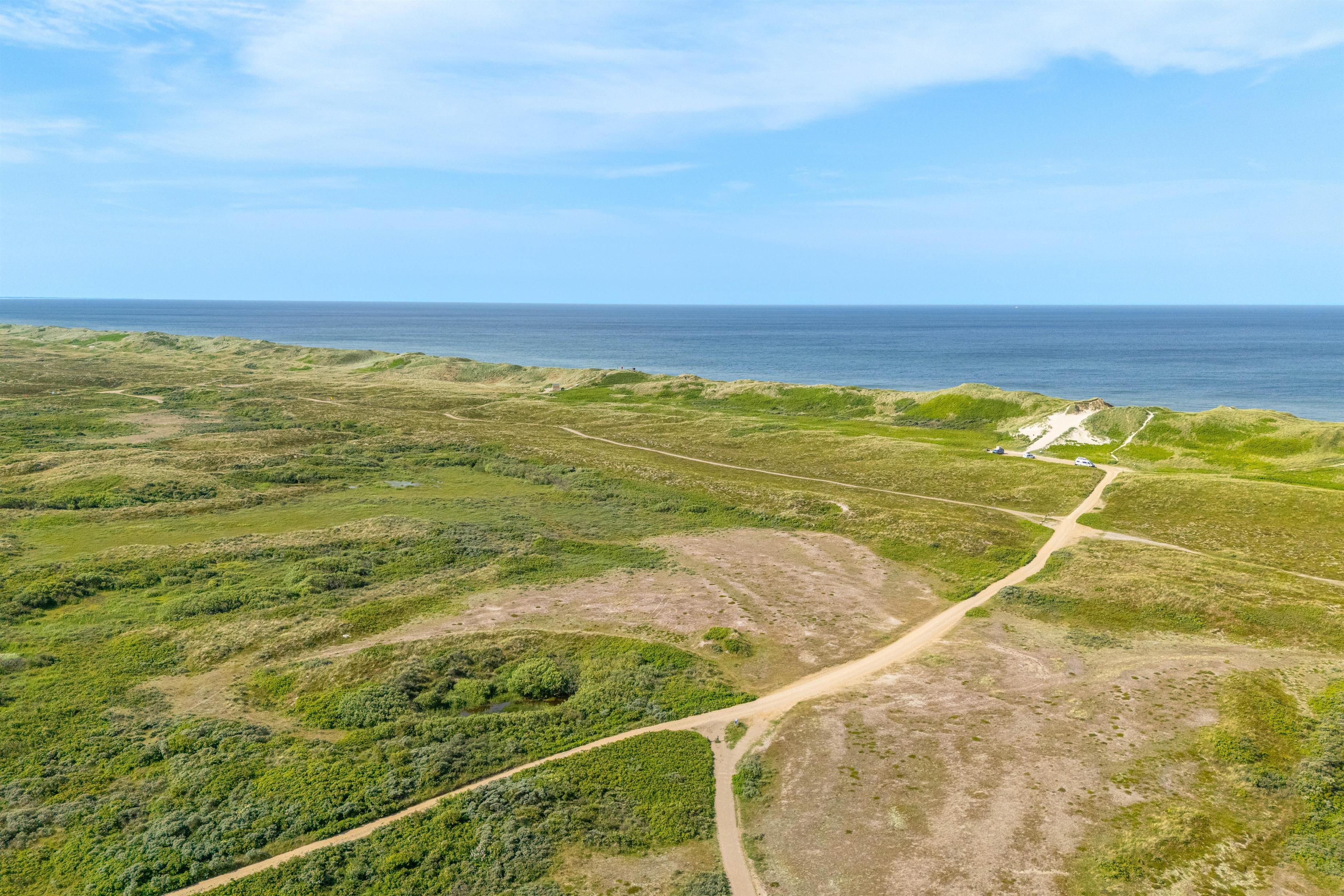 Der er både en overdækket og en afskærmet del af terrassen, hvor I kan finde læ og nyde en kop kaffe eller et måltid. Den omkringliggende grund er på ca. 1.270 m², og der er mulighed for at grille på sommeraftener, hvis vejret tillader det. Udsigten er præget af den omkringliggende naturgrund og klitlandskab.