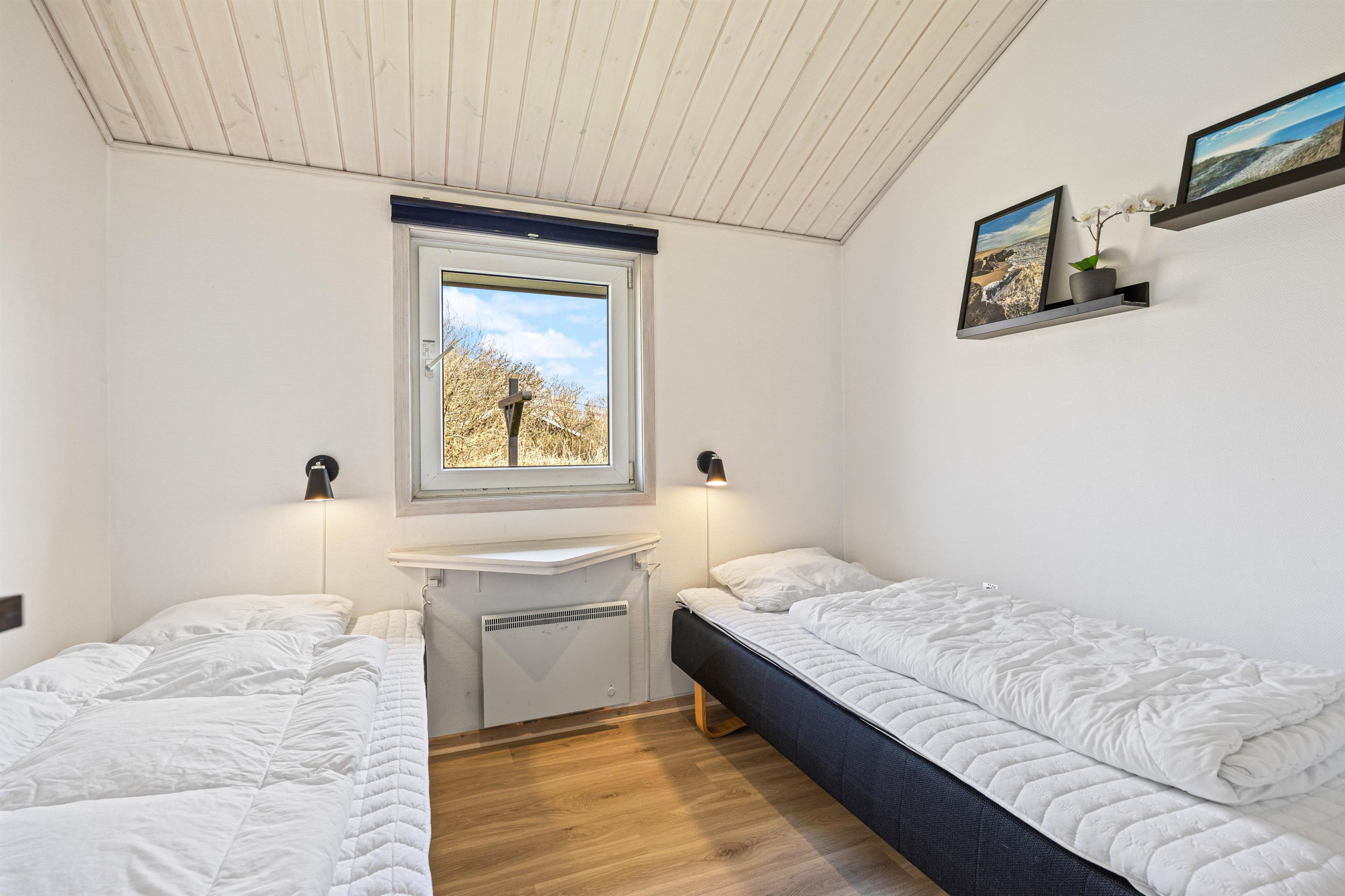 Med hele 2 badeværelser og 4 soverum er feriehuset ideelt til den store familie – eller til 2 familier, der ønsker at holde ferie sammen. De 8 sovepladser fordeler sig i 4 gode soverum.