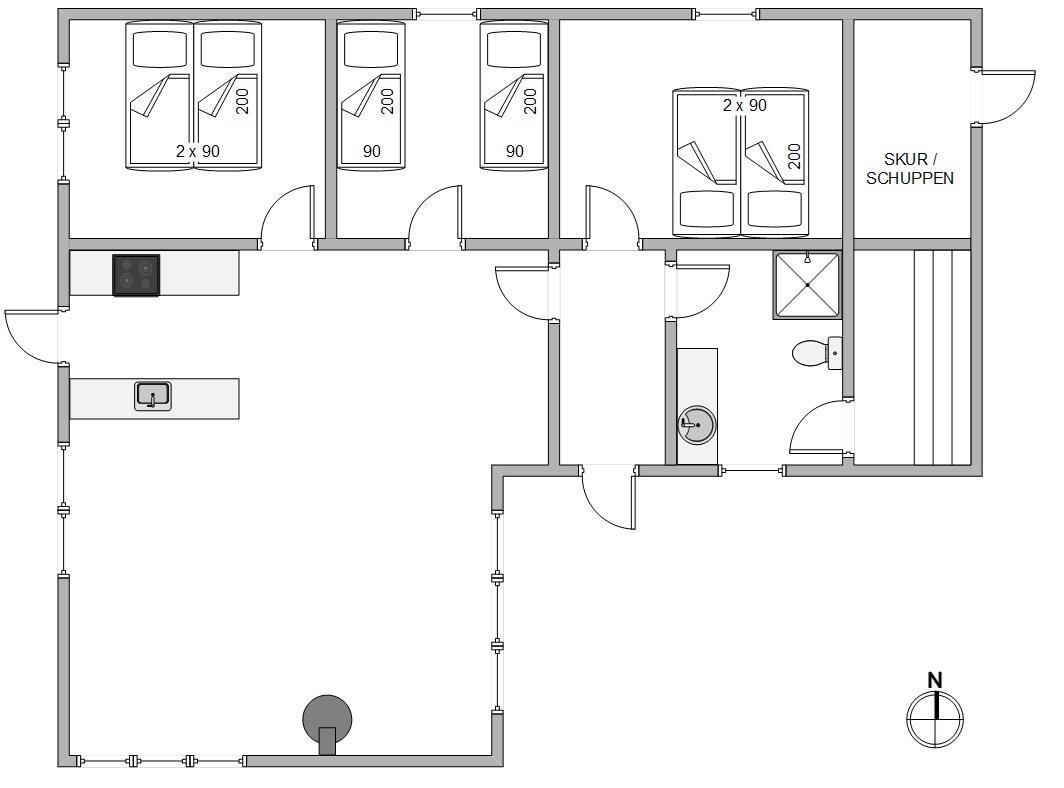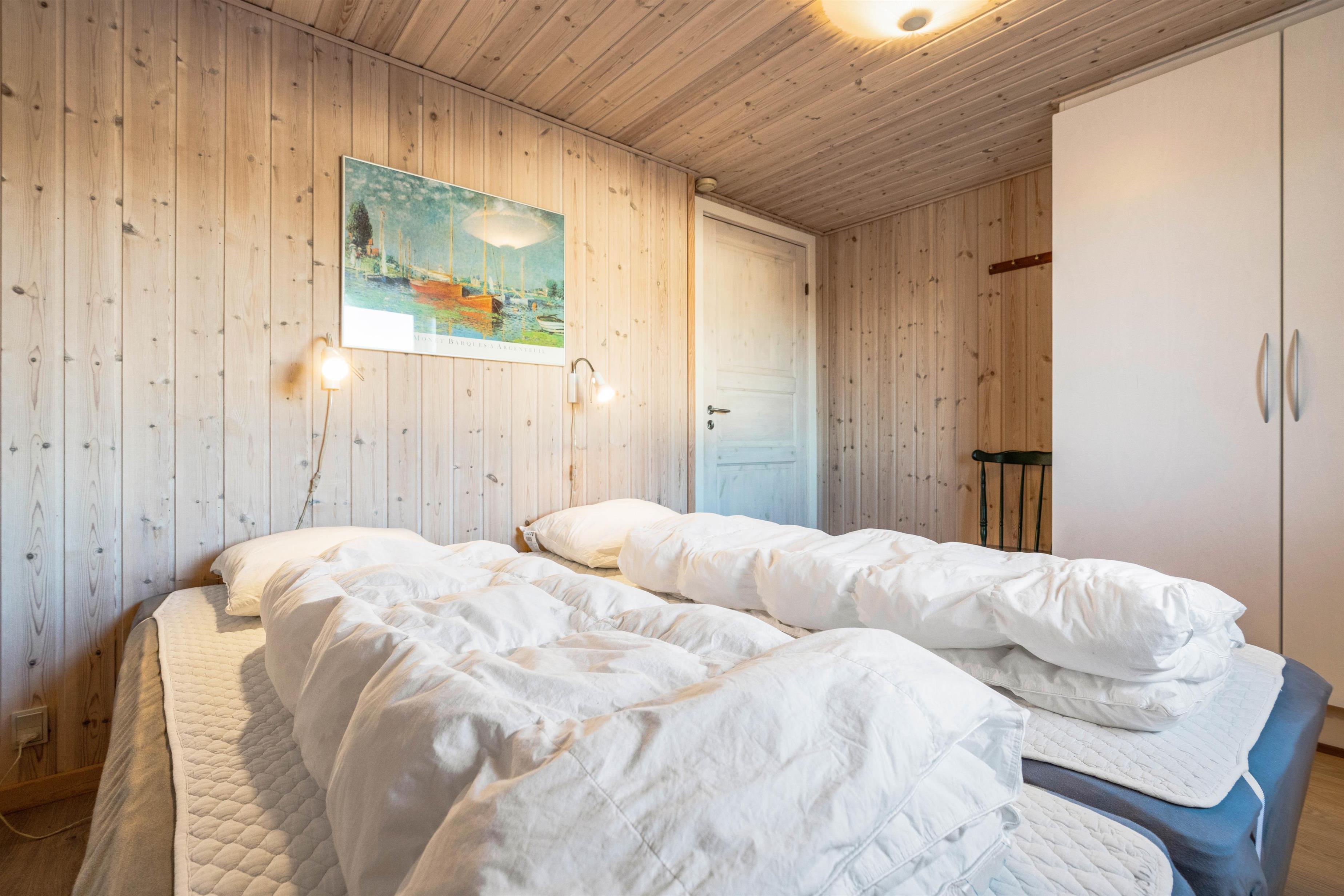 Det åbne køkken i forbindelse med opholdsrummet indeholder alt, hvad I behøver for at forkæle hinanden med lækre hjemmelavede måltider. Især lystfiskere vil sætte pris på den separate fryser på 100 l. I de 3 rummelige soveværelser er der 2 dobbeltsenge og 2 enkeltsenge, hvor I kan hvile godt ud i den friske vesterhavsluft. I forbindelse med badeværelset med gulvvarme er en dejlig sauna, hvor I kan blive godt gennemvarme efter en tur til stranden og Vesterhavet. Feriehuset indeholder opvaskemaskine, vaskemaskine og en energibesparende varmepumpe.