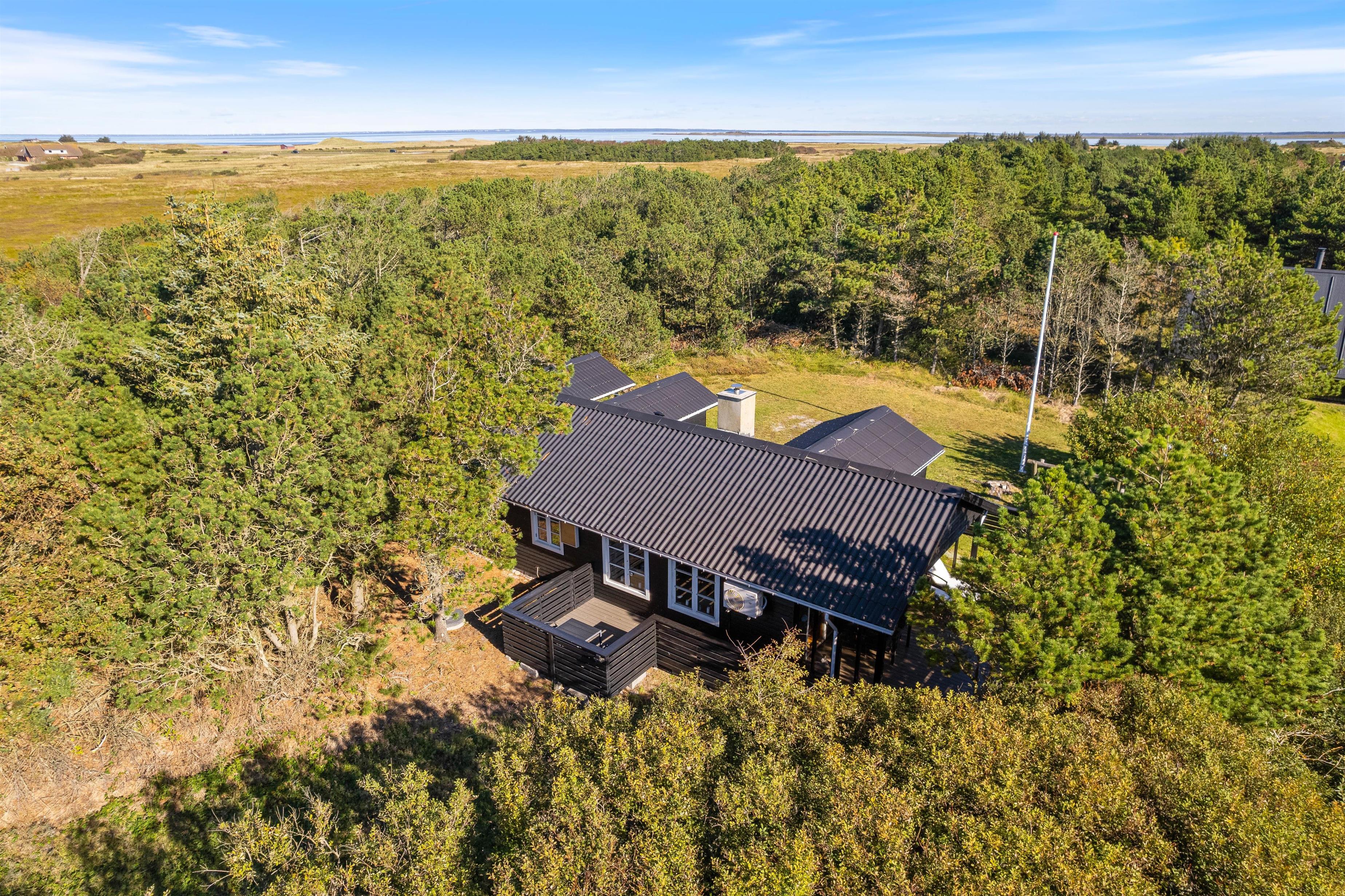 Feriehuset i Bjerregård ligger på en stor naturgrund på godt 2000 kvadratmeter. Her kan I nyde den friske luft i fulde drag. På den delvist overdækkede terrasse kan du tilbringe afslappende timer i havemøblerne og liggestolene. En gasgrill står til rådighed for lækre grillaftener, og her kan I hygge jer sammen imens skyggerne bliver lange. Med en efterfølgende vandretur til stranden, kan I runde dagen af med at opleve solnedgangen i Vesterhavet.