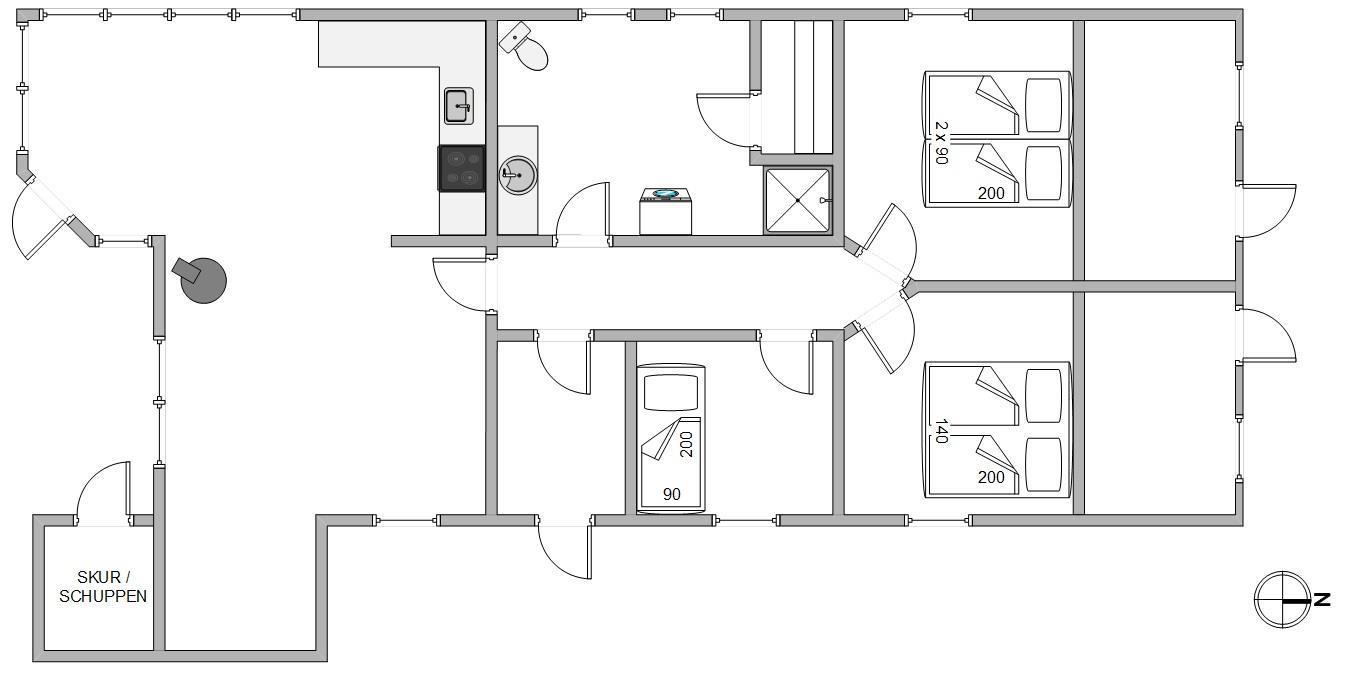 Sommerhuset har en hyggelig alkove, som indbyder til afslapning på langs, og børnene vil elske at bruge pladsen som en lille hule, hvor de kan lege eller tegne. Feriehuset ligger på Dortheasvej kun nogle få hundrede meter fra Bureauets kontor – så husk at benyt jer af den store fodboldbane ved kontoret.