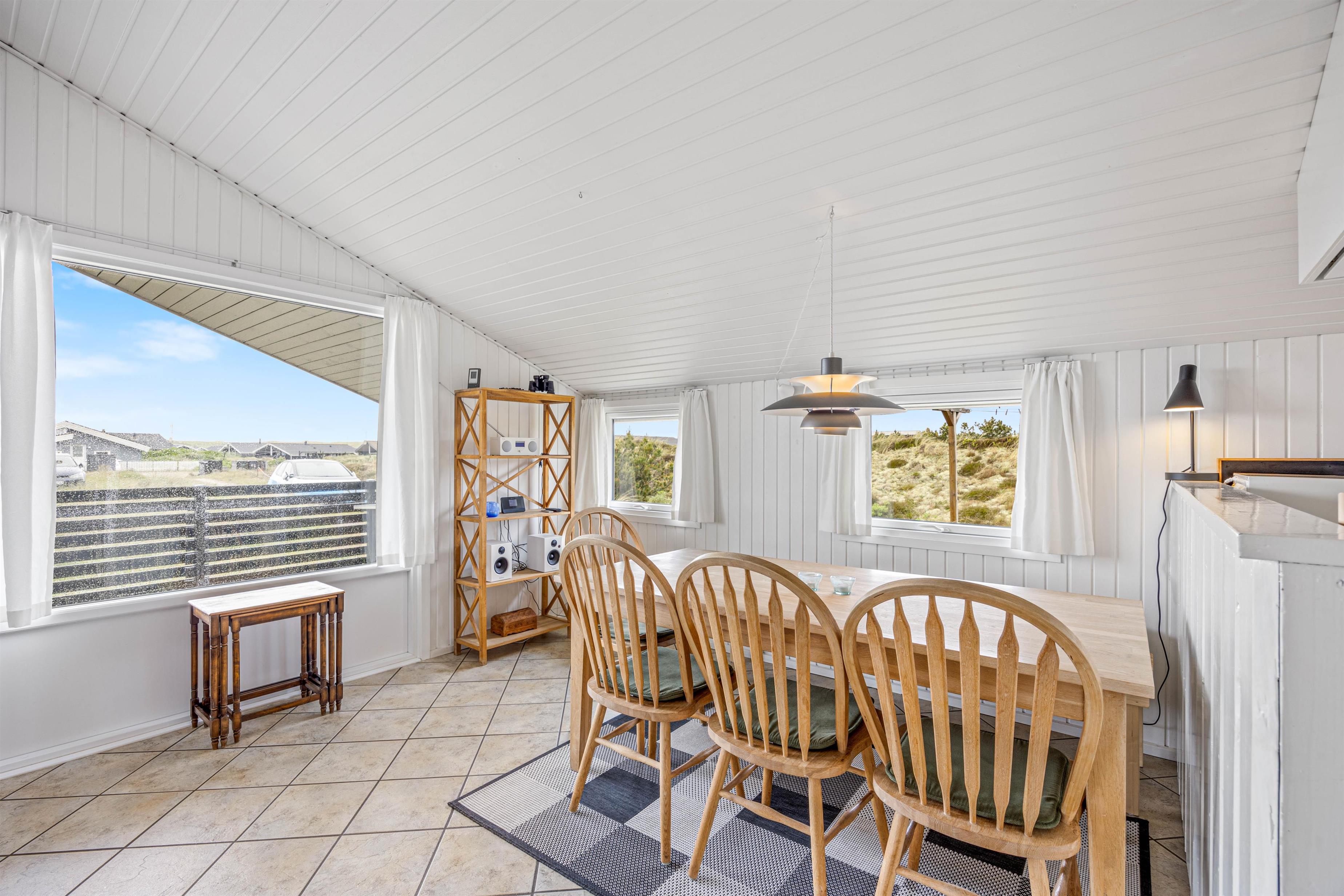 I det lyse og venligt indrettede sommerhus finder du en behagelig, lys stue med masser af vinduer og hyggelige siddepladser, der indbyder til at blive hængende. Nyd den ægte feriestemning foran brændeovnen med din yndlingsmusik, imens I hygger jer i sofaen. Sommerhuset har både DAB radio og internet radio.
