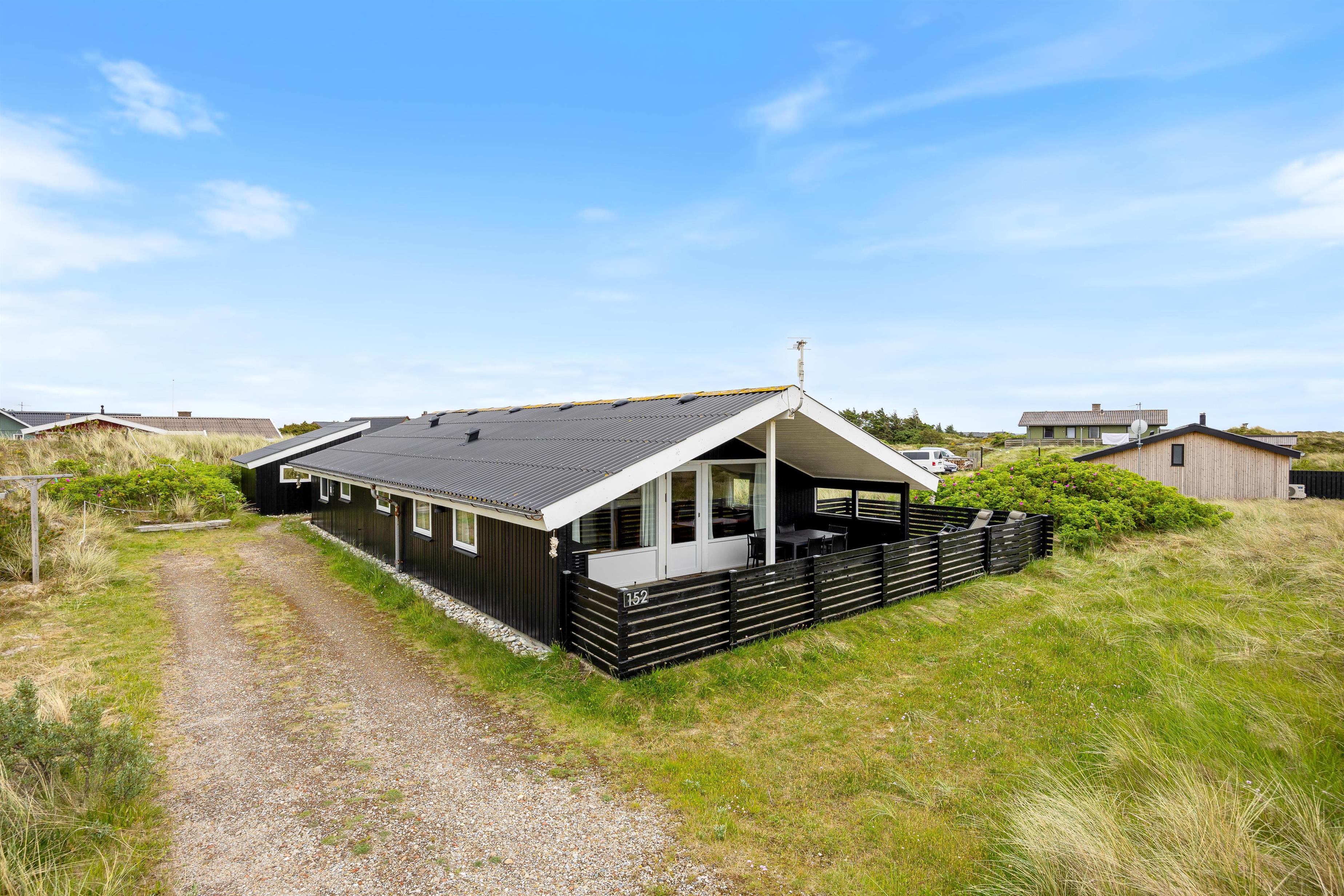 Velkommen til Arvidvej 152, beliggende på Vestkysten syd for Bjerregård. Dette sommerhus, som er renoveret i 2023, har med sine 96 kvadratmeter plads til op til 6 personer, og hunden er også velkommen. Nyd feriestemningen med sauna og brændeovn, og hyg dig på de 2 indbydende terrasser.