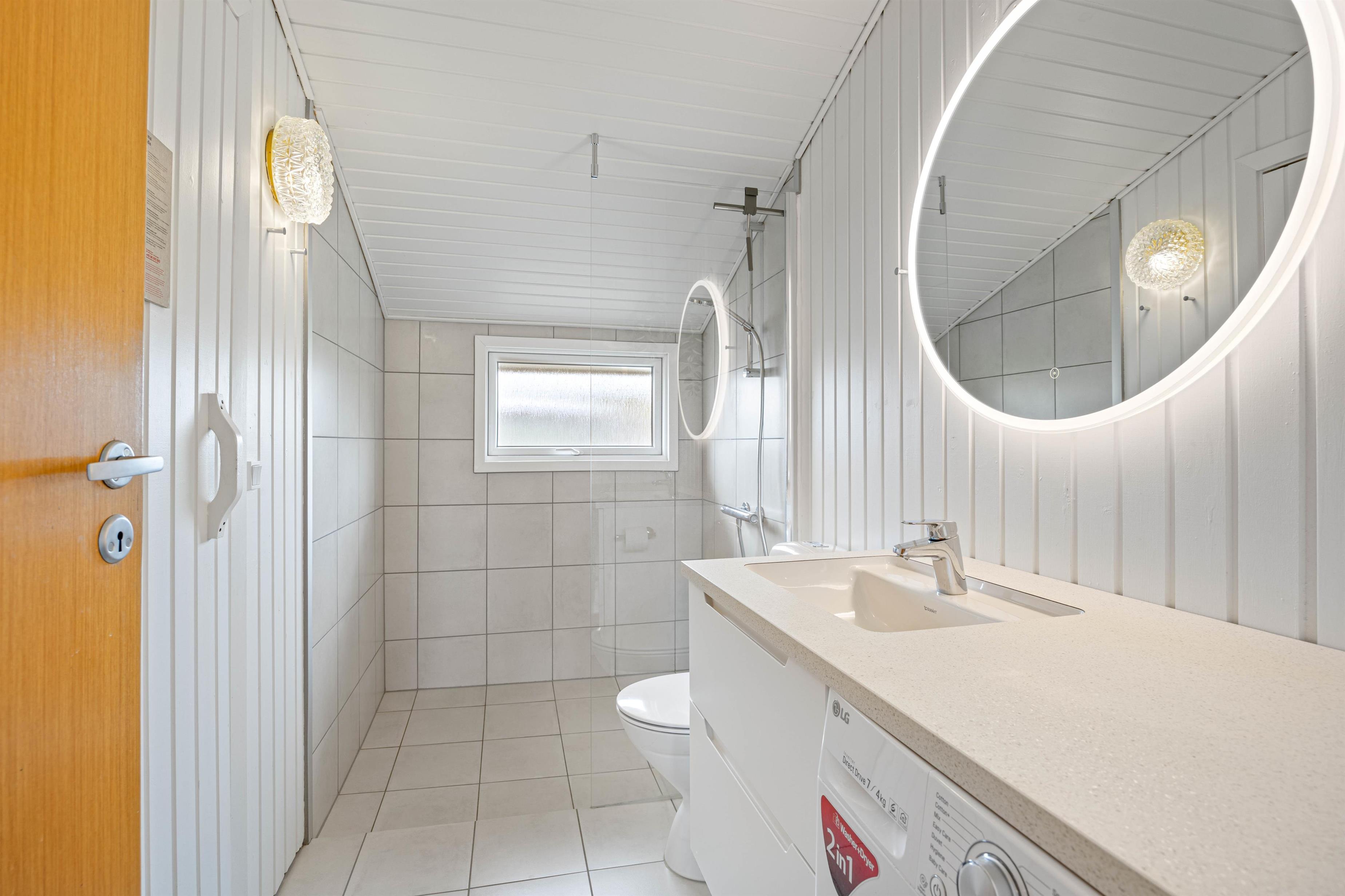 Et lille badeværelse med gulvvarme og sauna tilbyder afslapning efter en lang gåtur på stranden. Der er også vaskemaskine og tørretumbler til rådighed, så I kan opfriske garderoben i løbet af ferien. 4 skønne soveværelser, 2 med dobbeltsenge og 2 med hver 2 enkeltsenge betyder, at I kan fordele jer, som det passer jer bedst.