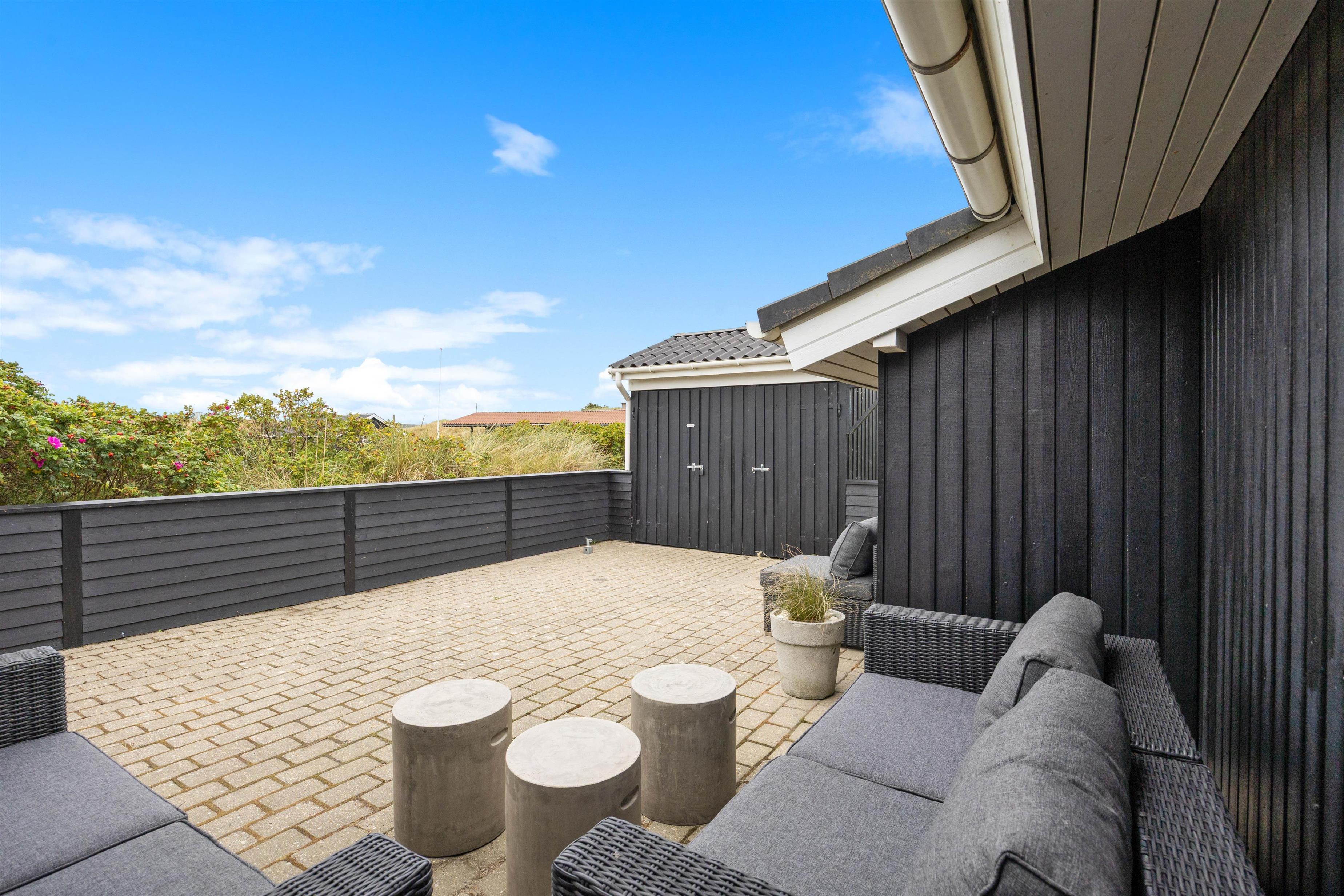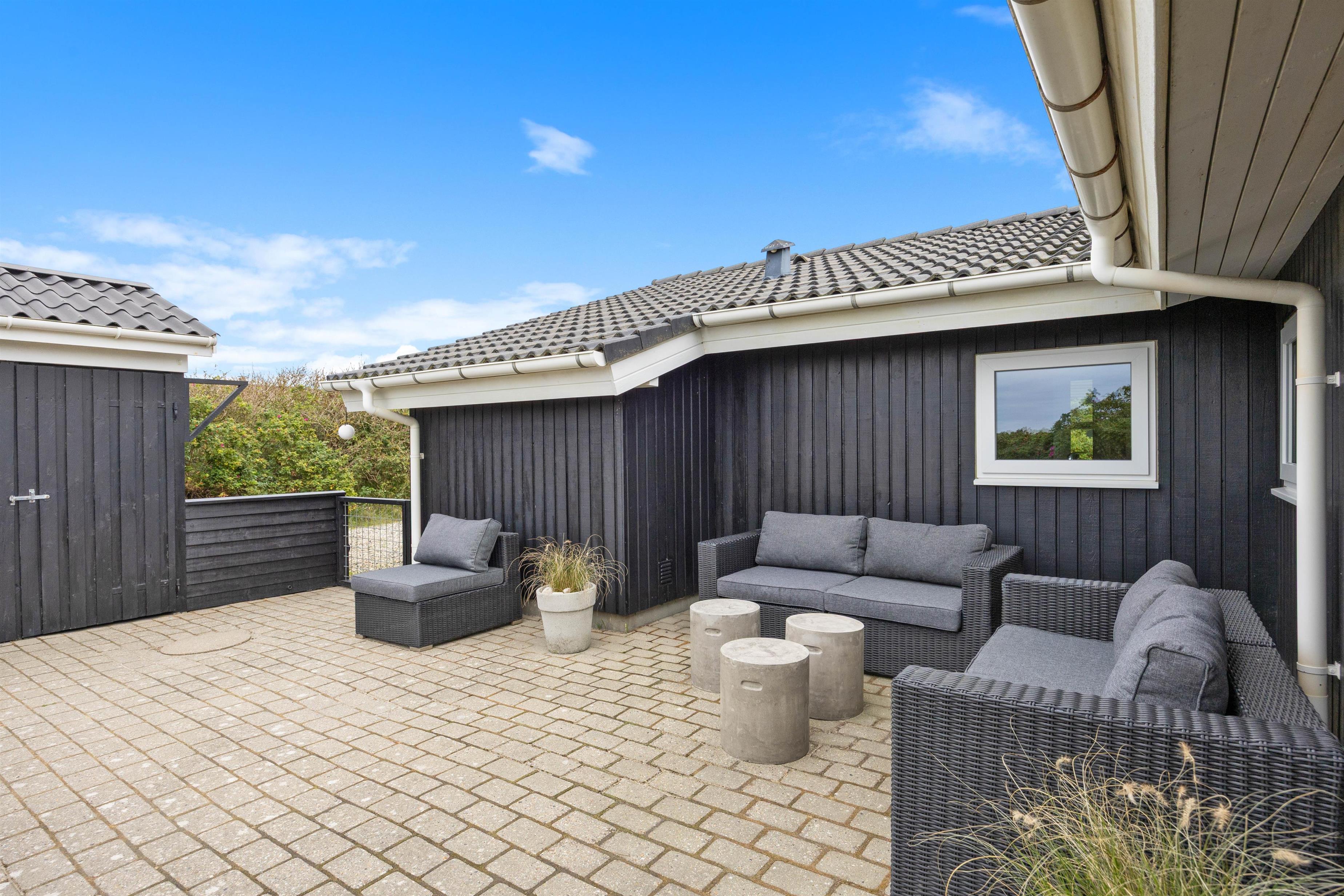 På Holmsland Klit mellem hav og fjord i det skønne Vestjylland ligger dette særdeles velholdte og indbydende feriehus. Den kuperede naturgrund gør, at du ugeneret kan slappe af på den store, delvis overdækkede terrasse. Her er naturligvis gode havemøbler og liggestole og det er altid muligt at finde en lækrog til afslapning og kulinariske udfoldelser på grillen. Til familiens yngste er der både sandkasse og gynge på naturgrunden.