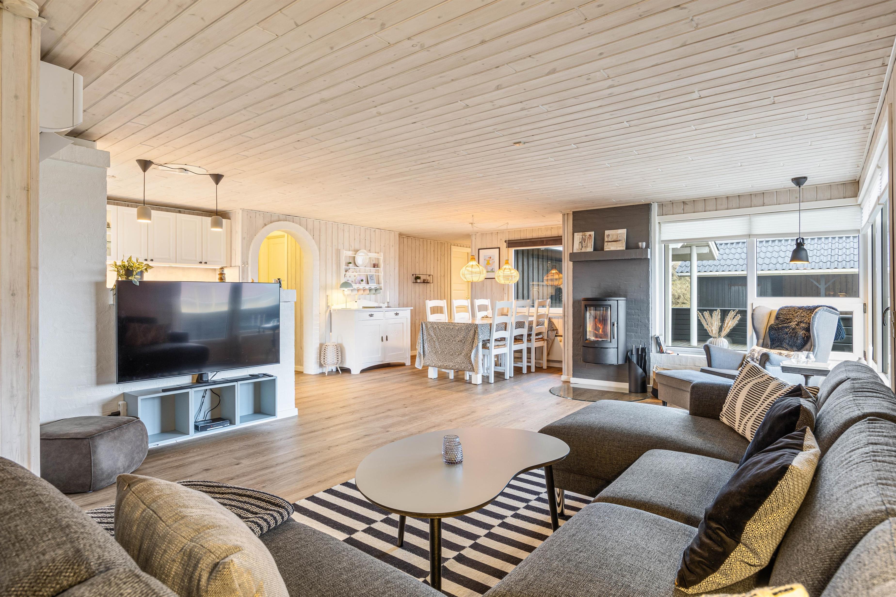 Hyggeafdelingen er ved brændeovnen, som på få timer varmer hele feriehuset op. Her står et par stole og magelige sofamøbler, som inviterer til afslapning og hygge. Sommerhuset er indrettet med 3 soverum, som alle er med dobbeltseng. Desuden er der både spabad og sauna, som sikrer wellness til krop og sjæl på alle tider af året.