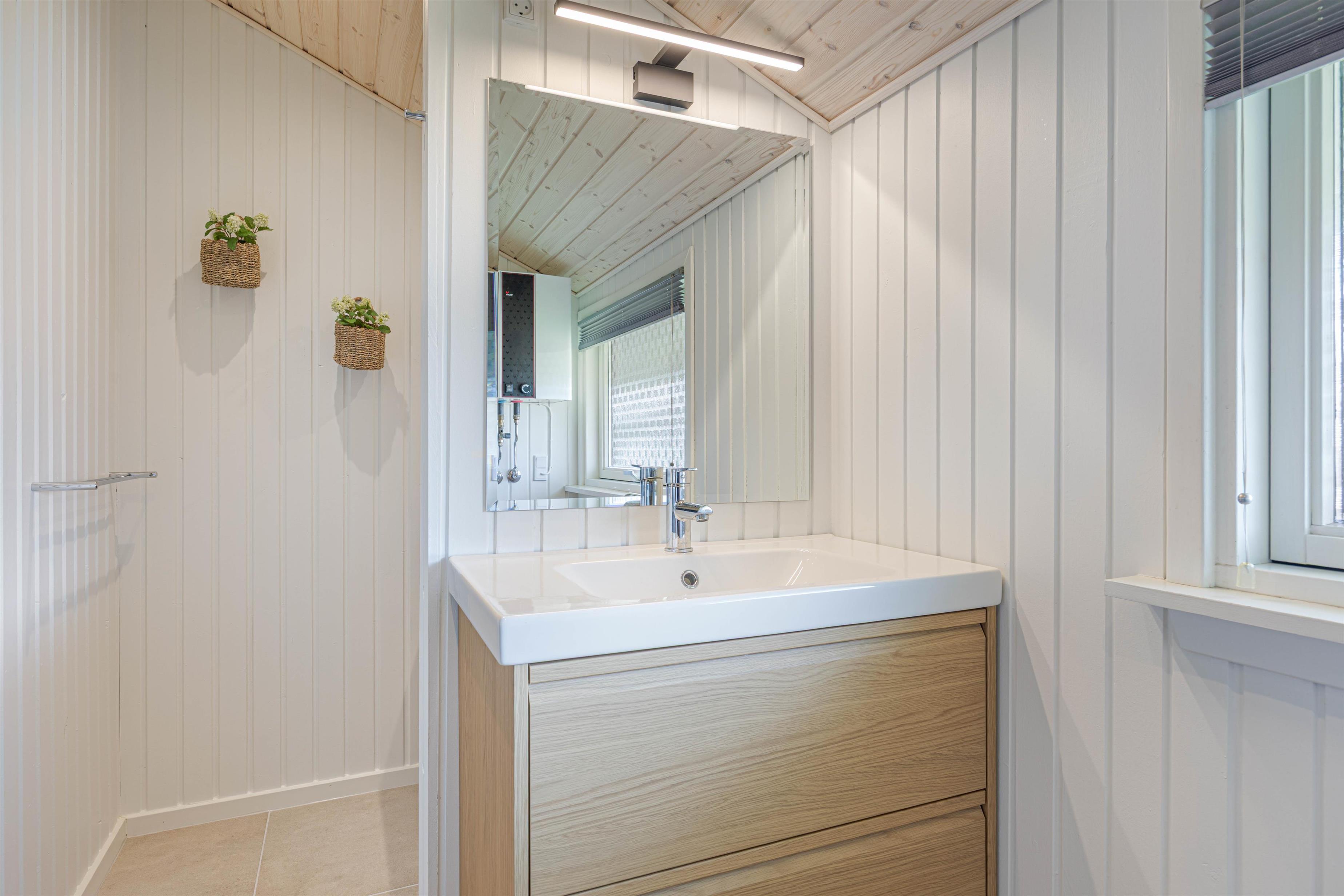 For en god nats søvn er der 2 individuelle soveværelser med en dobbeltseng i hver. Sommerhusets badeværelse er med gulvvarme og er også renoveret i 2025.