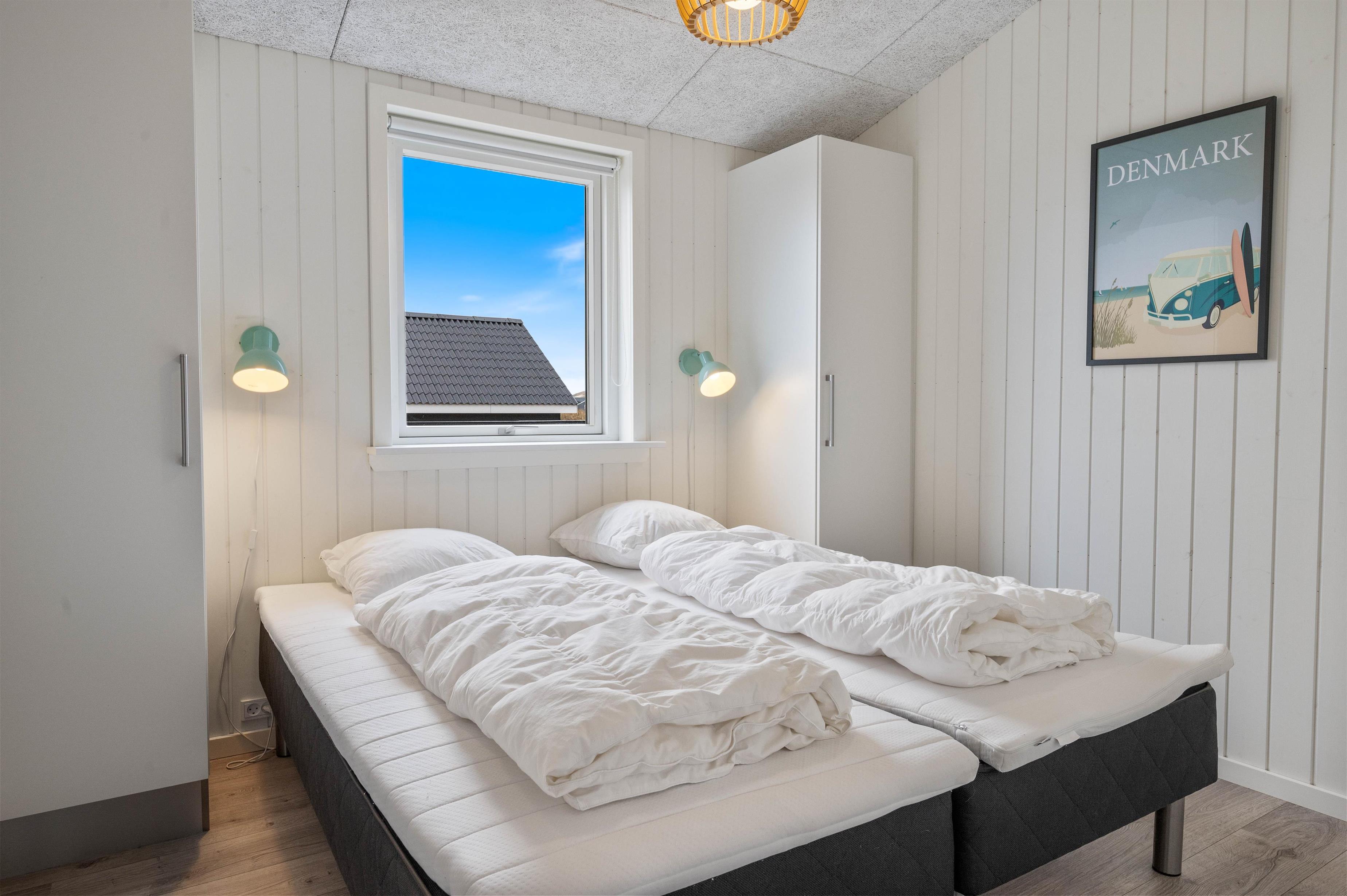 Feriehuset er udstyret med to fine badeværelser med stor bruseniche og gulvvarme. Fra det ene badeværelse har I tilmed adgang til jeres helt egen sauna – så mon ikke der skal bruges et par afslappende timer i varmen i løbet af ferien? Det andet badeværelse hører såmænd til det ene af de tre soveværelser – alle soveværelser er indrettet med komfortable dobbeltsenge og med god skabsplads.
