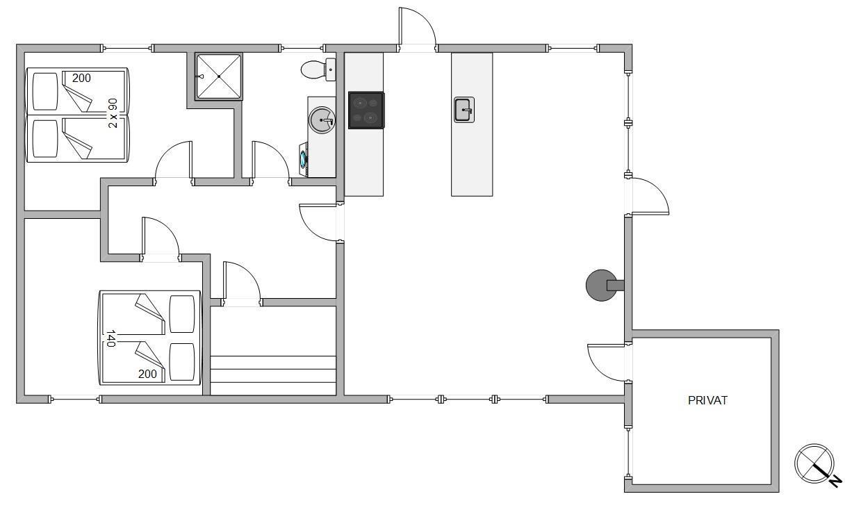 Sommerhusets 4 sovepladser fordeler sig på 2 værelser, som er indrettet med gode senge. På badeværelset er der gulvvarme, så ingen fryser fødderne om morgenen. En god og oplevelsesrig dag kan afsluttes med masser af afslapning og velvære i feriehusets sauna.