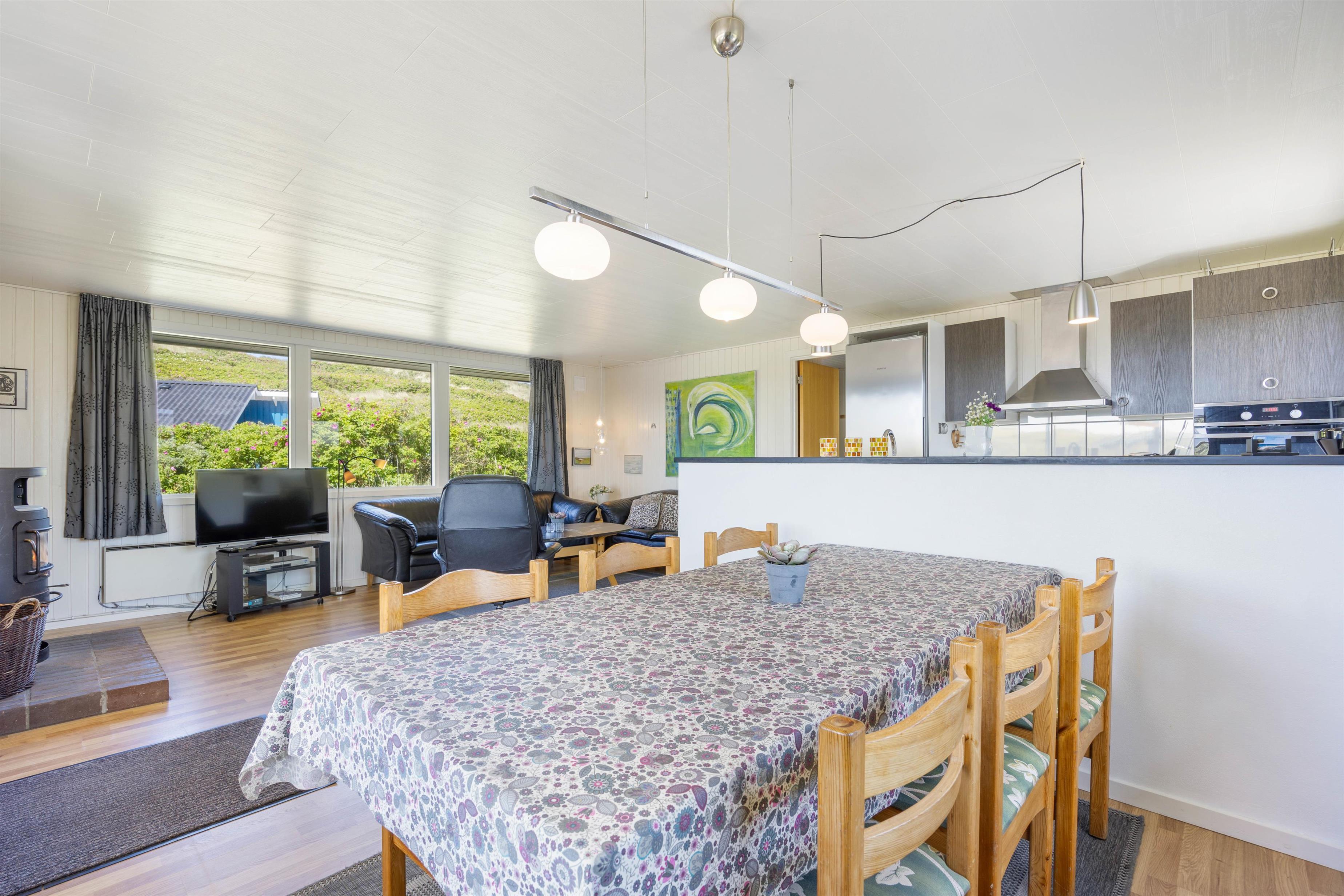 Sommerhuset har den bedst tænkelige beliggenhed i sidste klitrække kun 50 meter fra Vesterhavet og den dejlige sandstrand – Det perfekte udgangspunkt for en afslappende ferie og med den smukke vestjyske natur lige uden for døren.