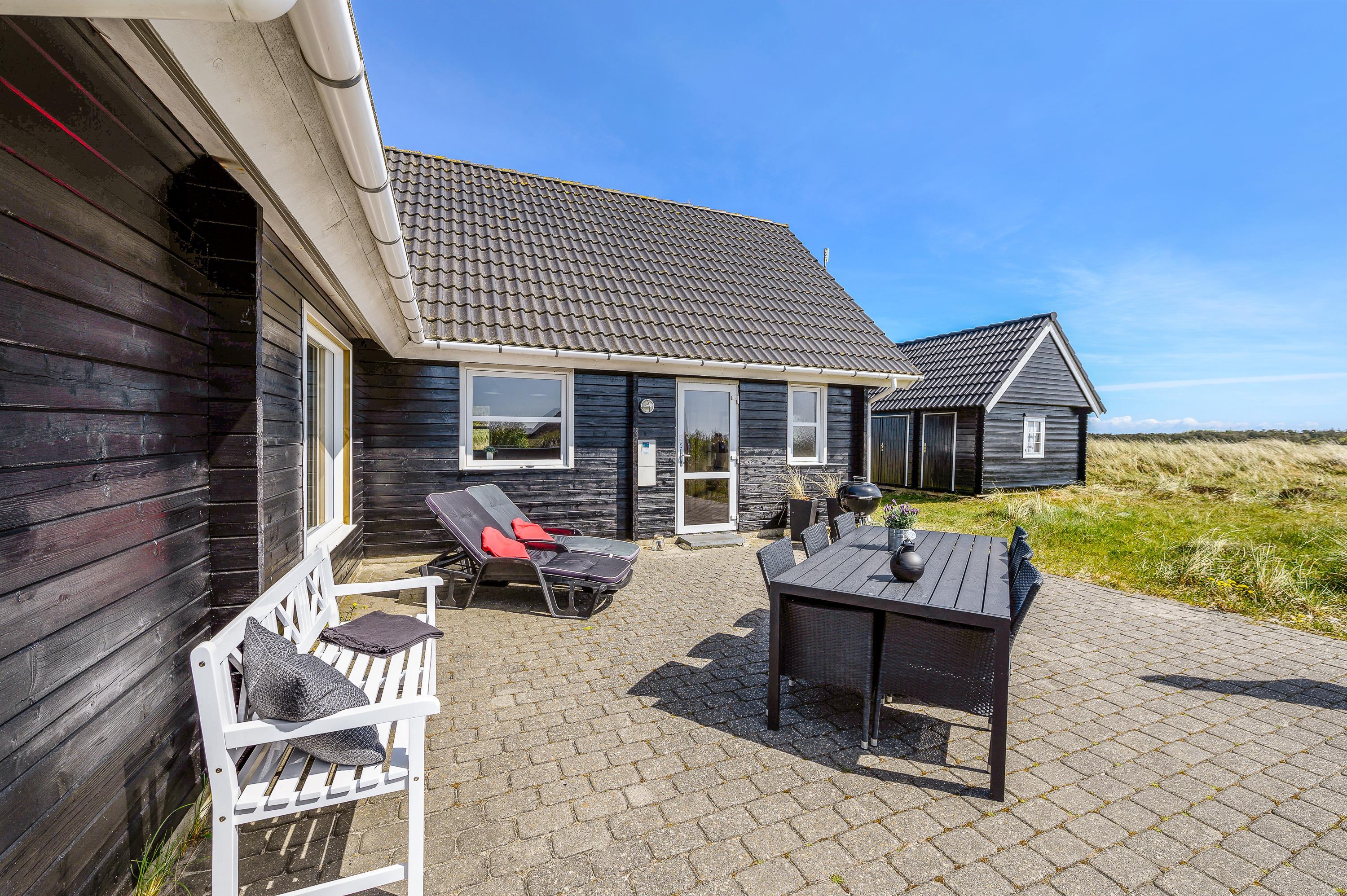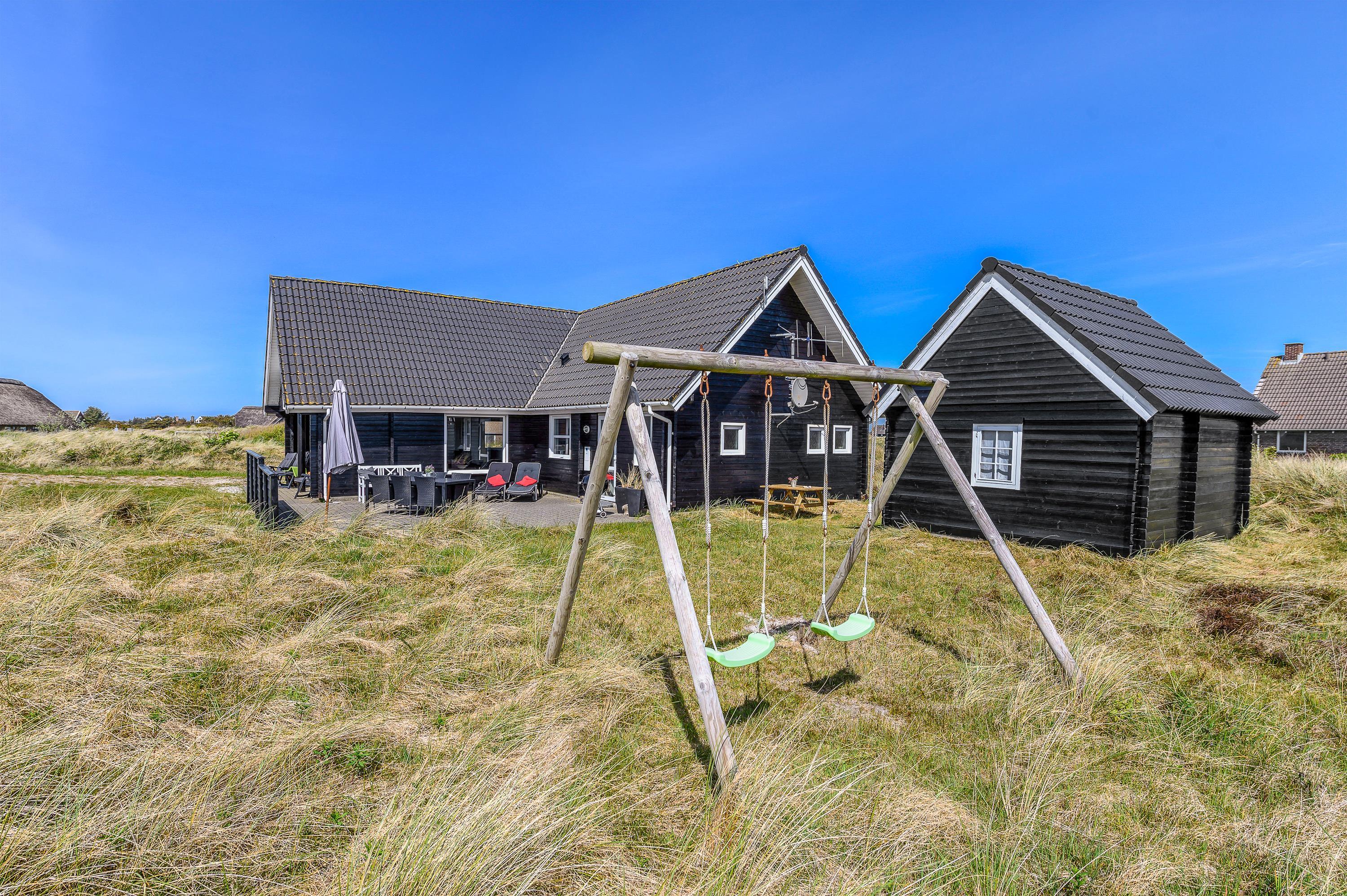 Den skønne udsigt kan du nyde fra såvel stuen med syd- og vestvendte vinduespartier samt fra den syd- og vestvendte terasse. Terassen mod syd er delvist afskærmet, og terassen mod vest er overdækket. Nyd solen og lad børnene lege eller gynge, mens I tilbereder en lækker grillmiddag. Se solen farve himlen orangerød over klitterne og nyd naturens stille ro.