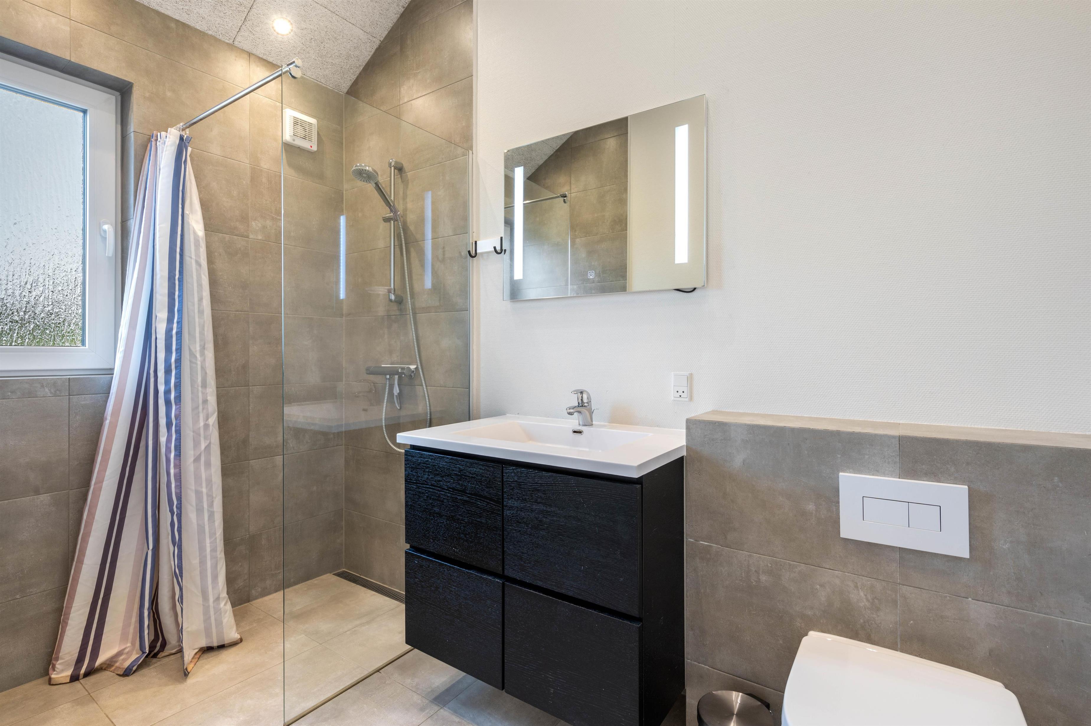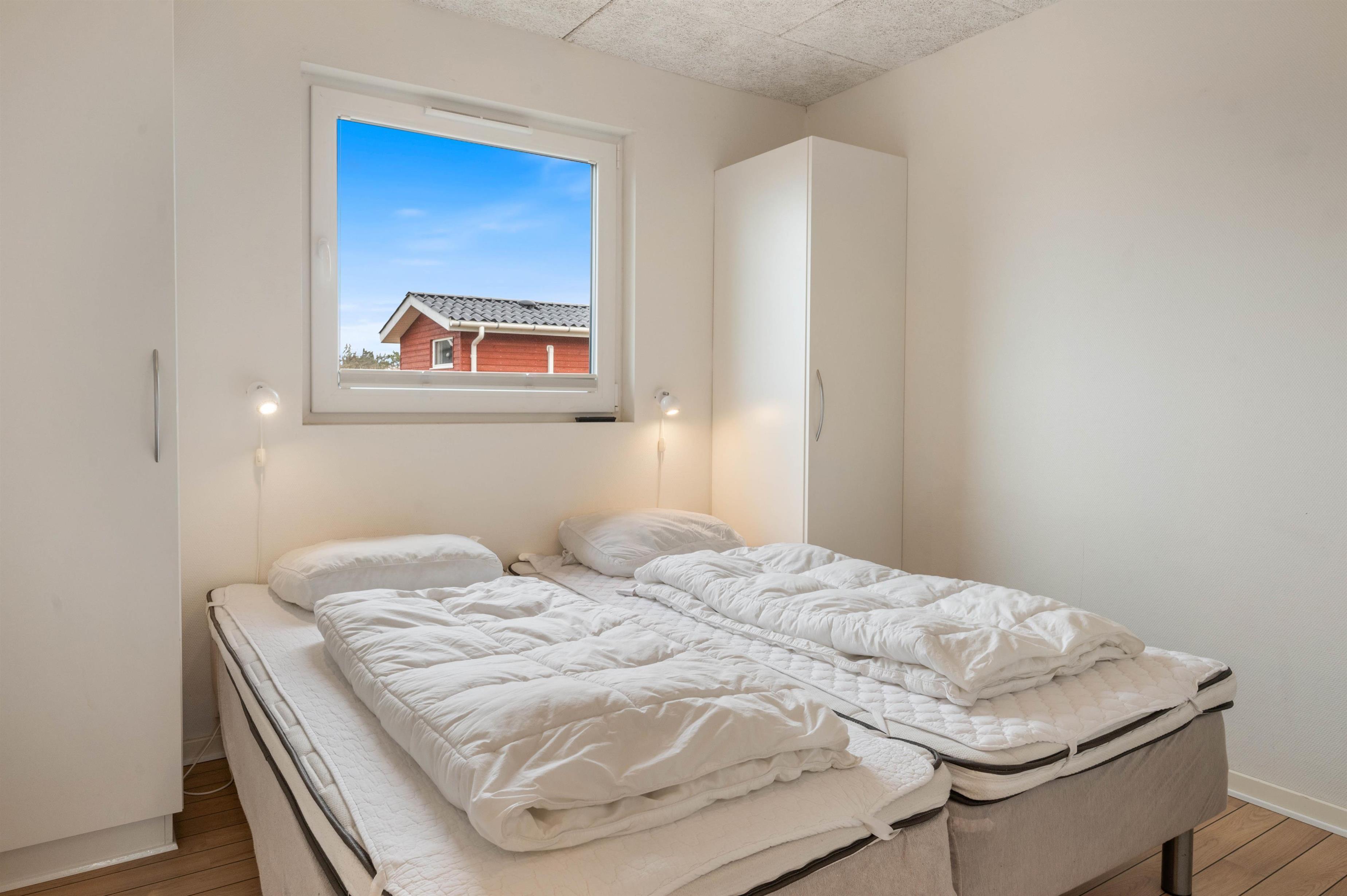 Sommerhusets indretning er moderne og meget lyst, hvilket lader feriehuset virke endnu større. Det åbne køkken ligger i forbindelse med opholdsrummet og skaber hermed et stort rum, hvor I sammen kan lave mad eller hygge på sofaen med en god film. Om aftenen kan du fyre op for brændeovnen, mens dagen afsluttes med et dejligt glas vin. Sommerhuset har fire gode soverum med egen fladskærm. To værelser har dobbeltsenge og to værelser har hver to enkeltsenge. Fra et af værelserne med dobbeltseng er der direkte adgang til et af feriehusets tre badeværelser. I det store badeværelse finder du spaen, hvor du efter en lang gåtur ved stranden rigtig kan slappe af. Fra samme badeværelse har du også adgang til sommerhusets sauna.