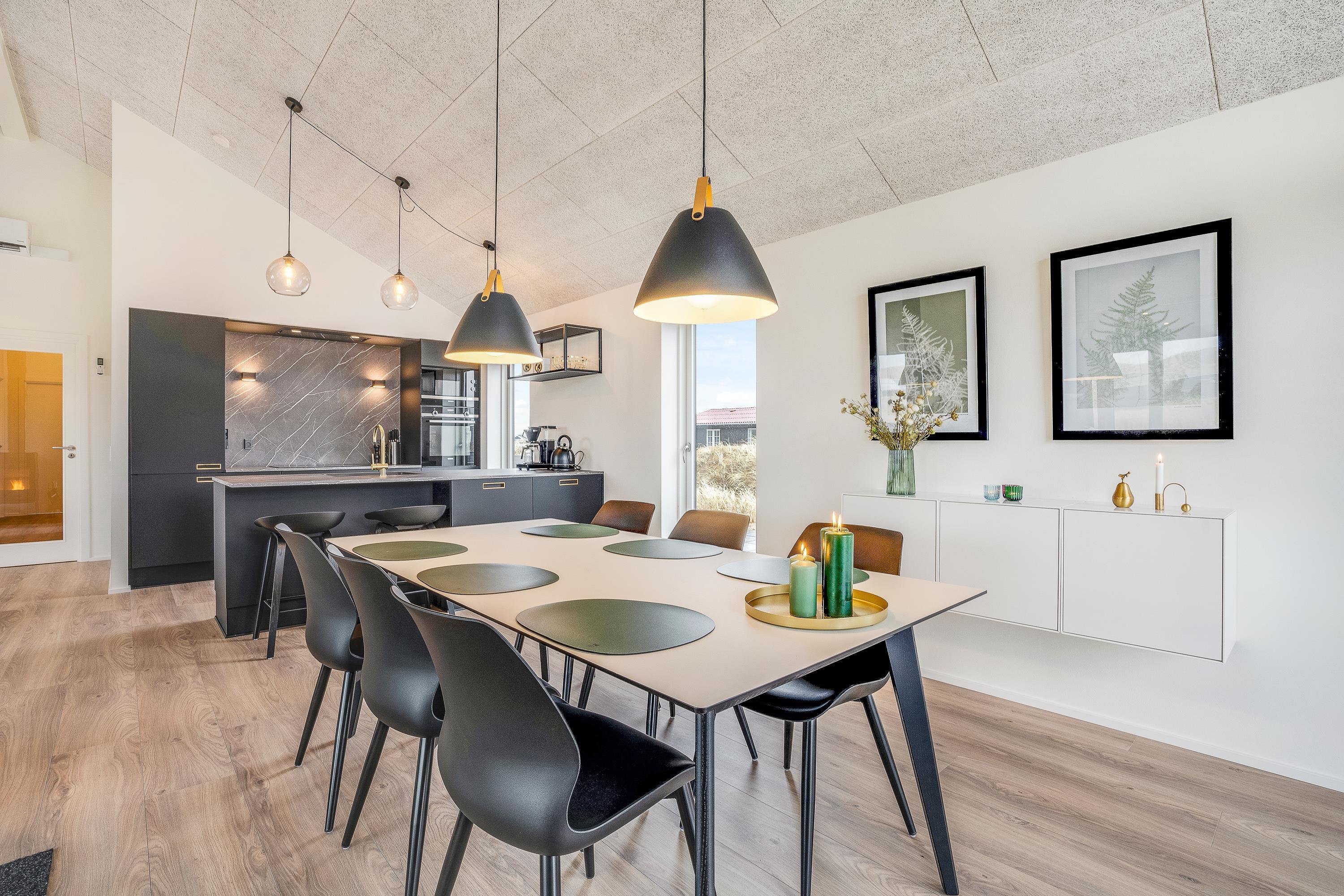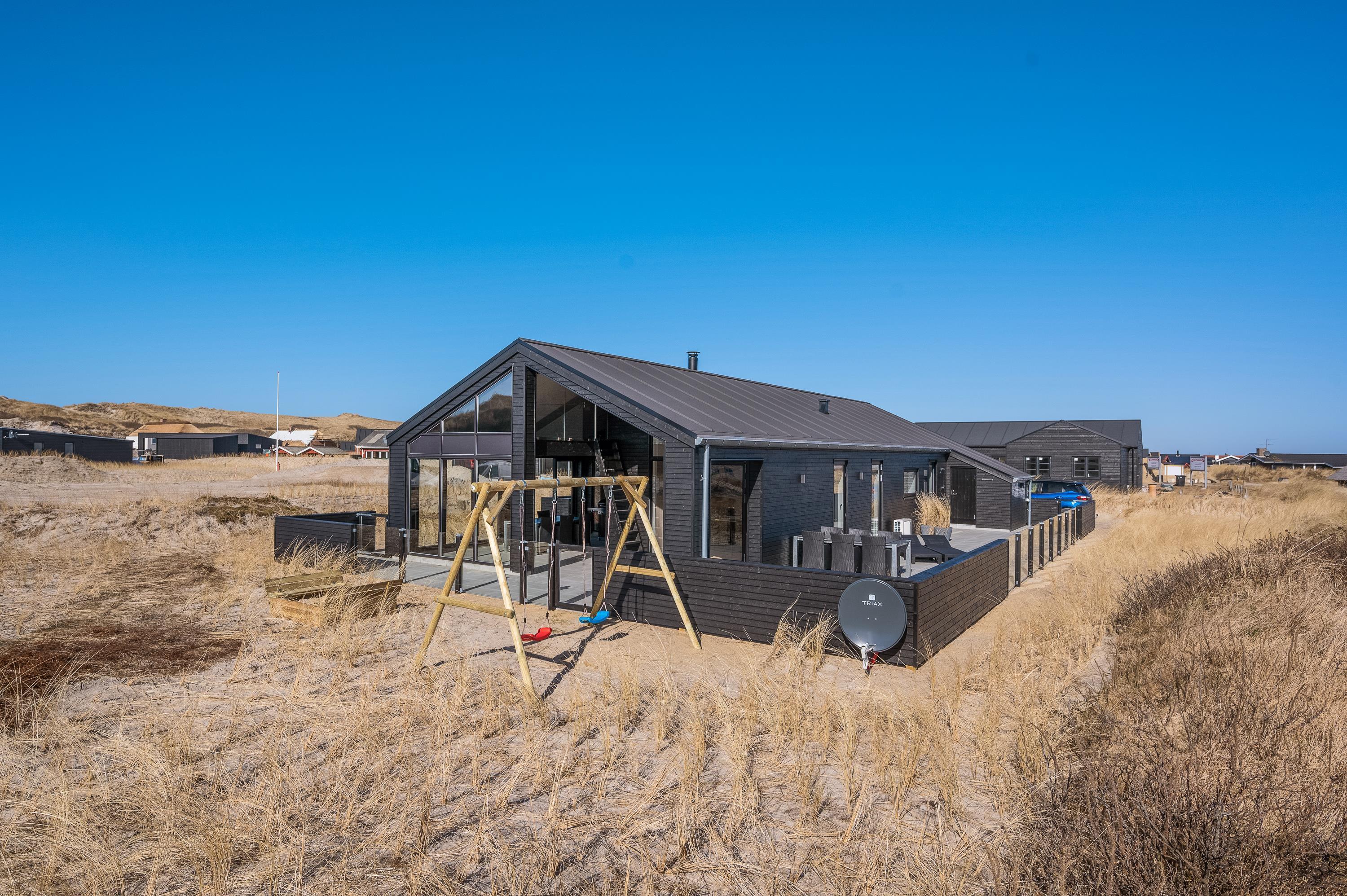 Det moderne feriehus på Bjerregårdsvej 379 er opført i 2021 og sætter rammerne for en skøn sommerhusferie ved Vesterhavet – lidt ud over det sædvanlige. Den stilfulde indretning i flotte kvalitetsmaterialer vil opfylde selv den mest kræsne feriegæsts drømme, og der er selvfølgelig også sørget for alle praktiske nødvendigheder såsom opvaskemaskine, vaskemaskine, tørretumbler og en hurtig og stabil internetforbindelse.