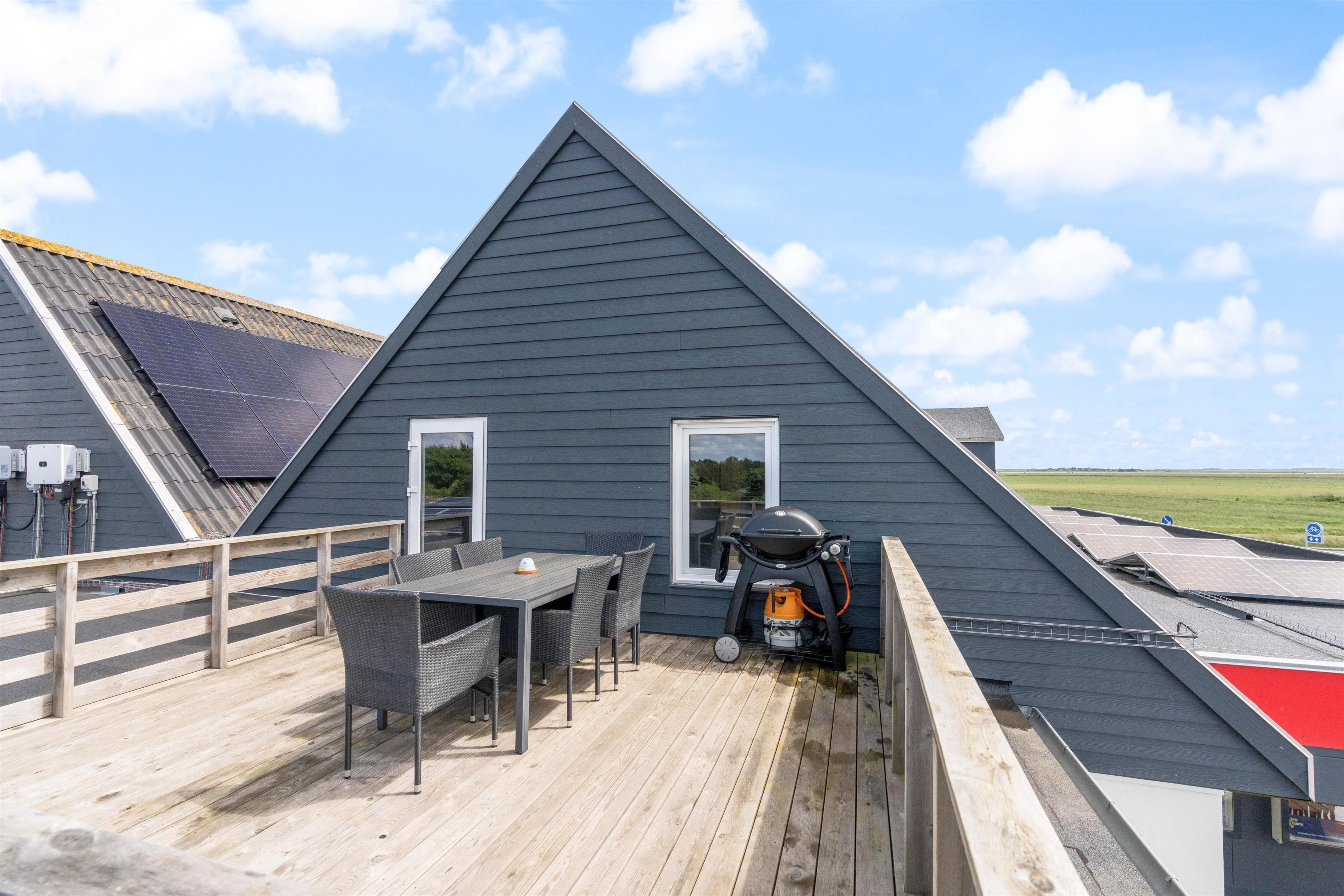 Den hyggelige, lille, lukkede terrasse har alt, hvad man har brug for på ferien. Der er havemøbler, liggestole og en grill. Herfra har I udsigt til det lille torv mellem købmandsbutikken og fiske-take-away samt en vidunderlig udsigt mod syd.