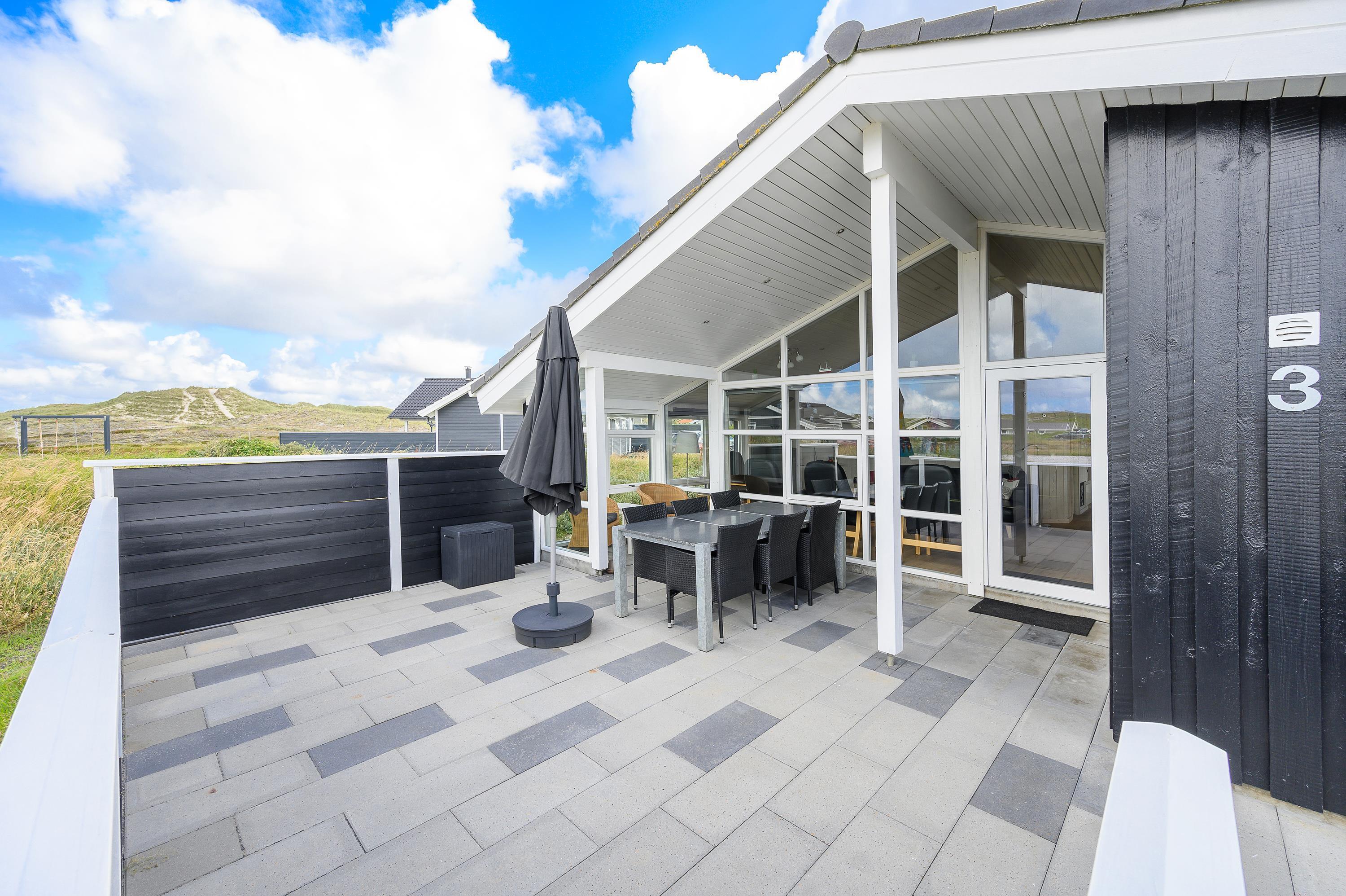 Sommerhuset ligger kun 400 meter fra havet, og med både lukket og overdækket terrasse, er det altid muligt at sidde ude. Der er intet som en grill-aften på terrassen, med havets brusen i baggrunden, og med børnene legende i sandkassen.