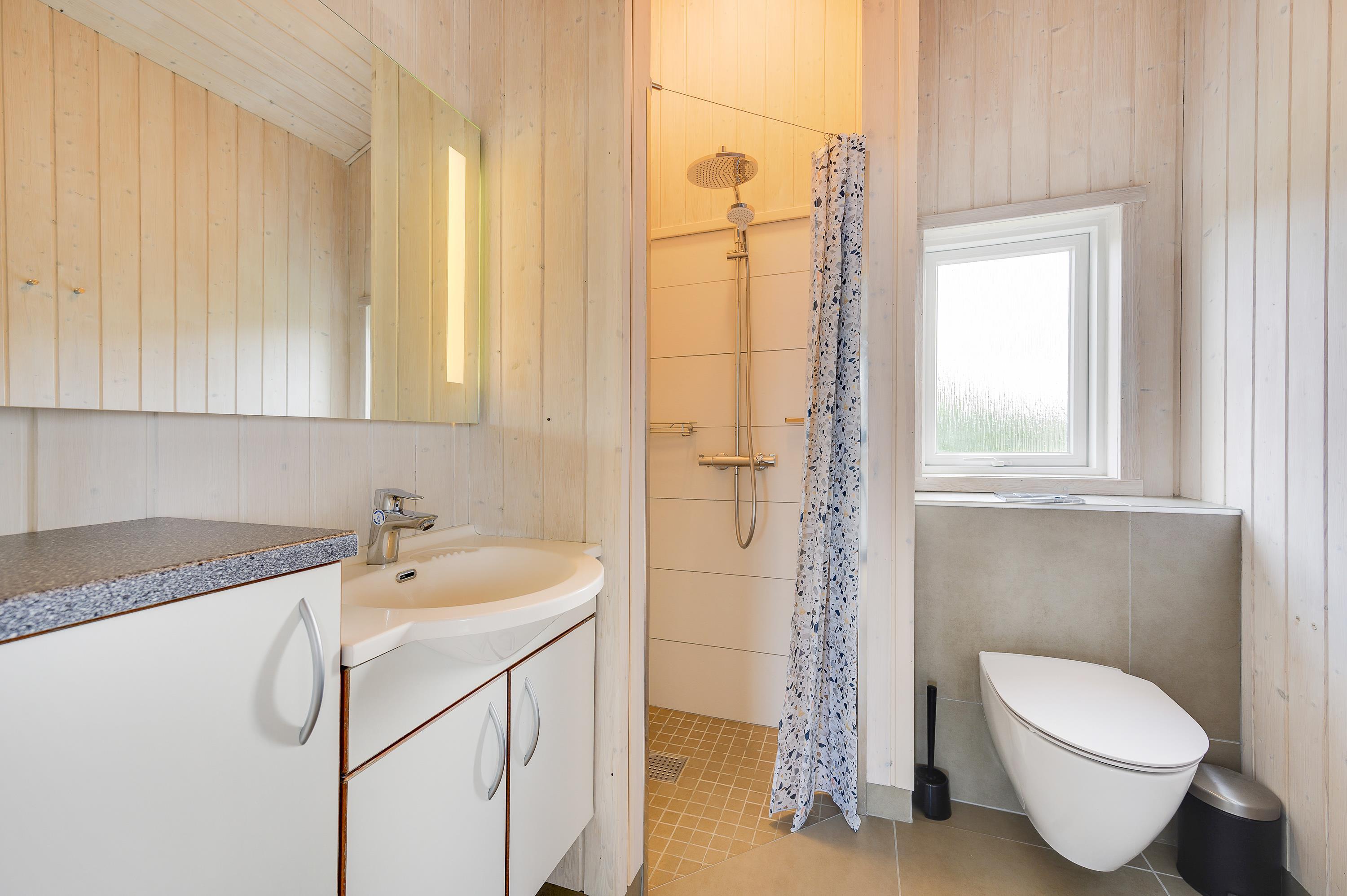 Dette feriehus er egnet til den store familie, der ønsker at holde ferien sammen. Der er hele 2 badeværelser med klinkegulv og gulvvarme. Der er både vaskemaskine og tørretumbler. I det ene badeværelse er der desuden spa og sauna, hvor I rigtig kan slappe af – måske efter en lang spadseretur langs stranden? Den energibesparende varmepumpe hjælper med at holde energiforbruget nede.