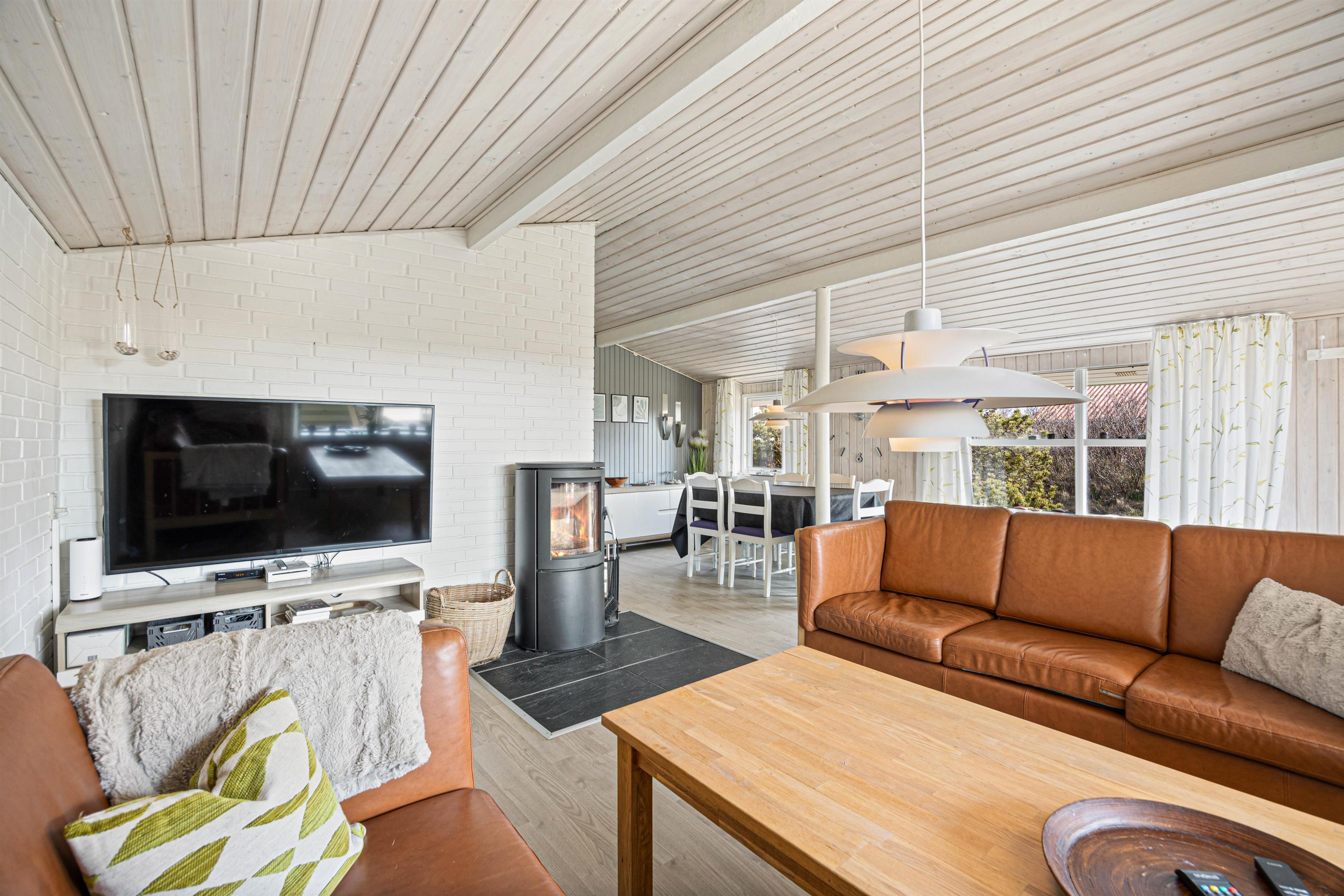 Velkommen indenfor i dette klassiske sommerhus på 73 m2. Her er et åbent opholdsrum, som kombinerer køkken, spisestue og stue. Her er komfortable møbler og en skøn brændeovn, der spreder varme og hygge. Her er plads til alt fra fællesmadlavning i køkkenet til brætspilsaftner og afslappende stunder i sofaen. Sid her med en god bog, en friskbrygget kop kaffe og mærk brændeovnens varme brede sig - dét er ægte sommerhushygge! Her er desuden et Chromecast, således I har mulighed for at se jeres yndlingsprogrammer, når det passer.