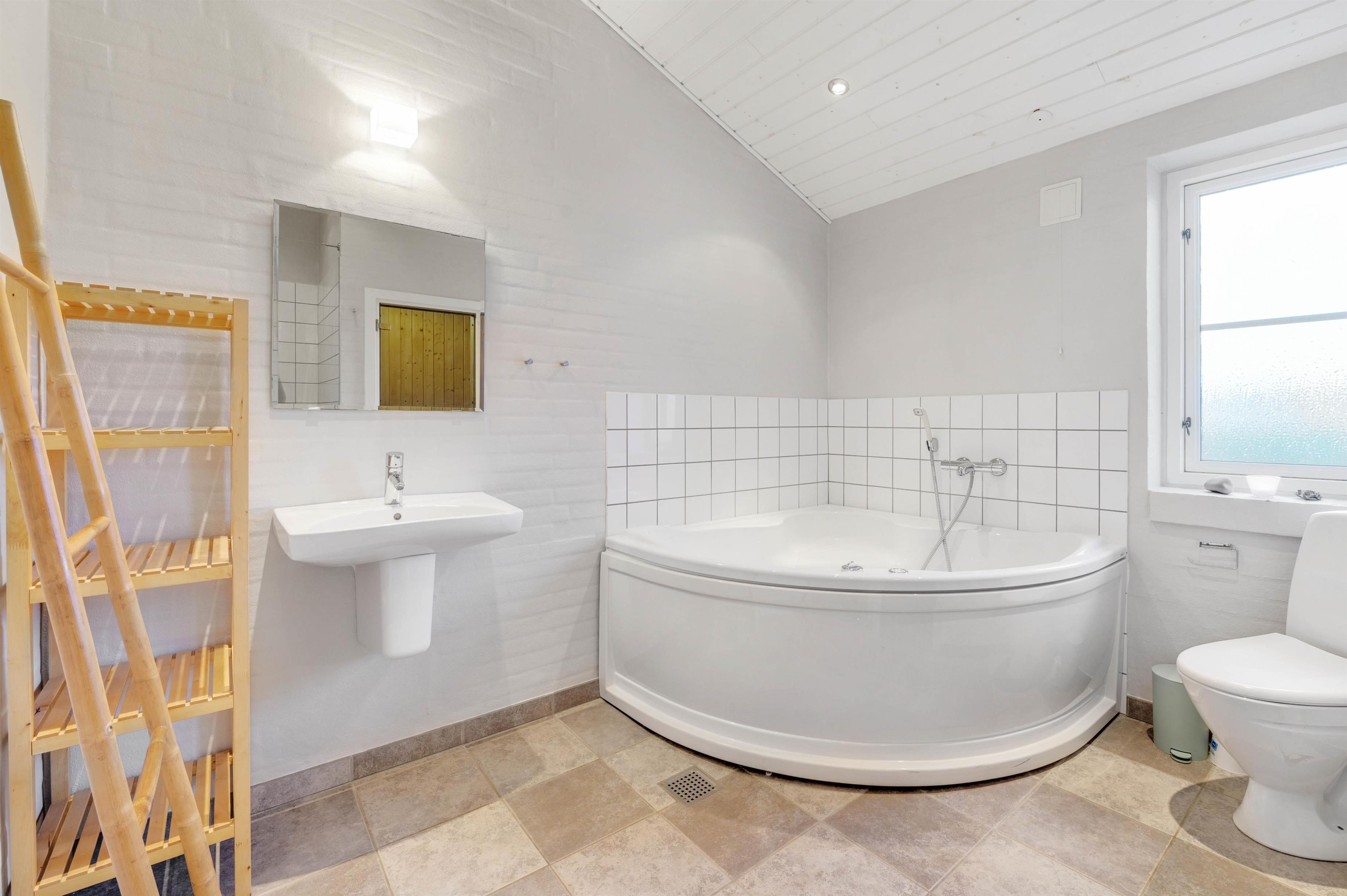 Her er 2 gode soveværelser med boksmadrasser og skabe, samt et stort badeværelse med boblebad og indgang til sauna. Som et ekstra plus er der et ekstra badeværelse, så der ikke opstår kø om morgenen. Begge badeværelser har gulvvarme, og sommerhuset byder desuden på både vaskemaskine og tørretumbler.