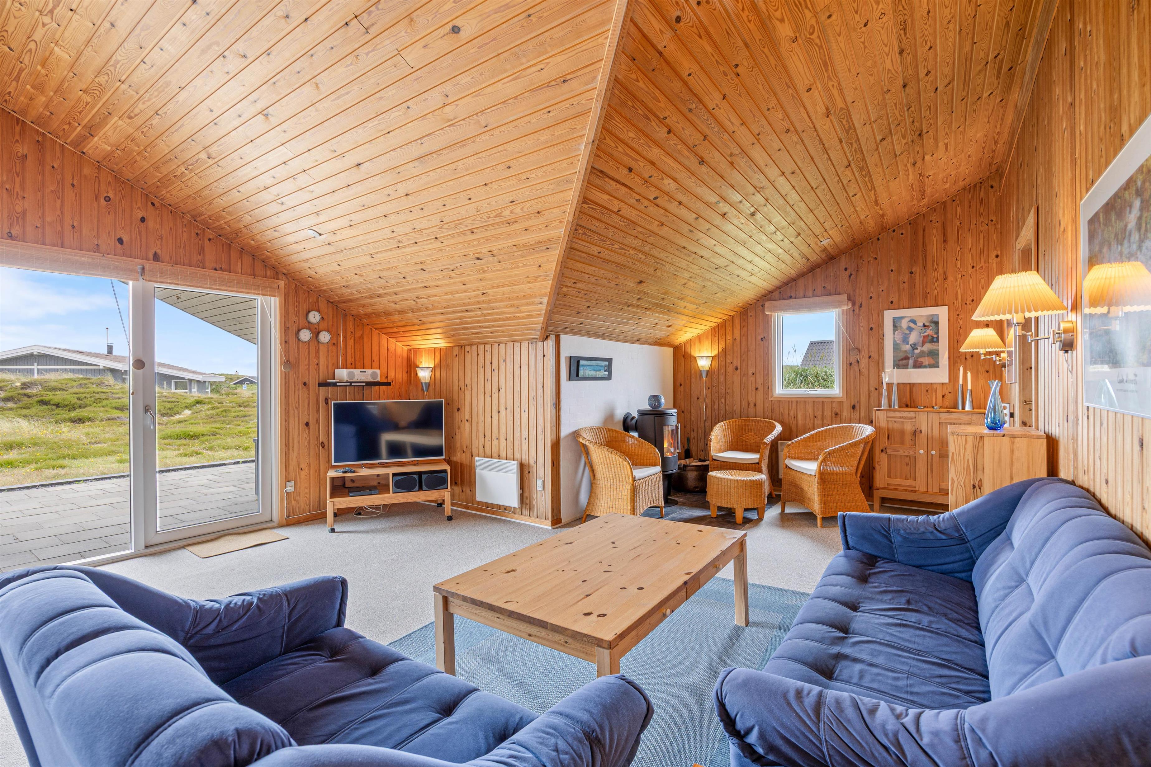 Det åbne køkken- og stueområde indbyder til fælles madlavning og masser af samvær. Efter middagen klarer opvaskemaskinen resten for jer, mens I kan læne jer tilbage på sofaen med et glas vin. I de stormende og kølige årstider sørger brændeovnen ikke kun for varme, men tilfører også en ægte feriestemning.