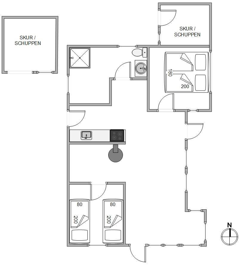 Det praktiske badeværelse med dagslys er udstyret med en bruser. Når feriedagen går på hæld, kan I trække jer tilbage til 2 rolige soveværelser. Det ene har en dobbeltseng og det andet 2 komfortable enkeltsenge. Læg mærke til, at vesterhavsluften gør noget godt for nattesøvnen.