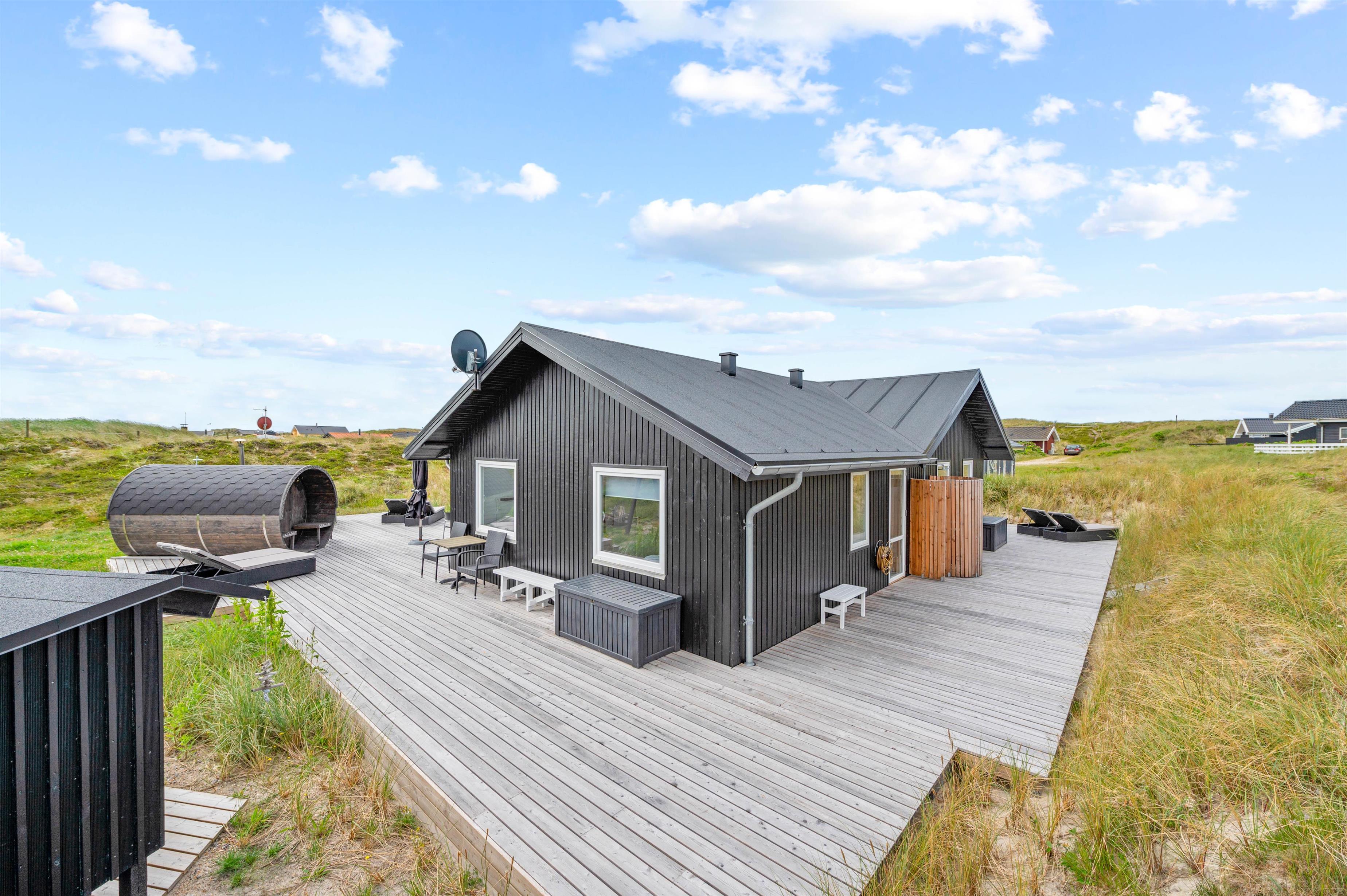 Et moderne og hyggeligt sommerhus med fredelig beliggenhed på en naturgrund for enden af en lille stikvej. Sommerhuset på Dortheasvej 72 ligger tæt på stranden og i gåafstand fra den lokale købmand. Her er en stor og delvist overdækket terrasse med gode læ-forhold og udendørs wellnessområde med vildmarksbad og sauna. Det er tilladt at medbringe 1 hund i sommerhuset.