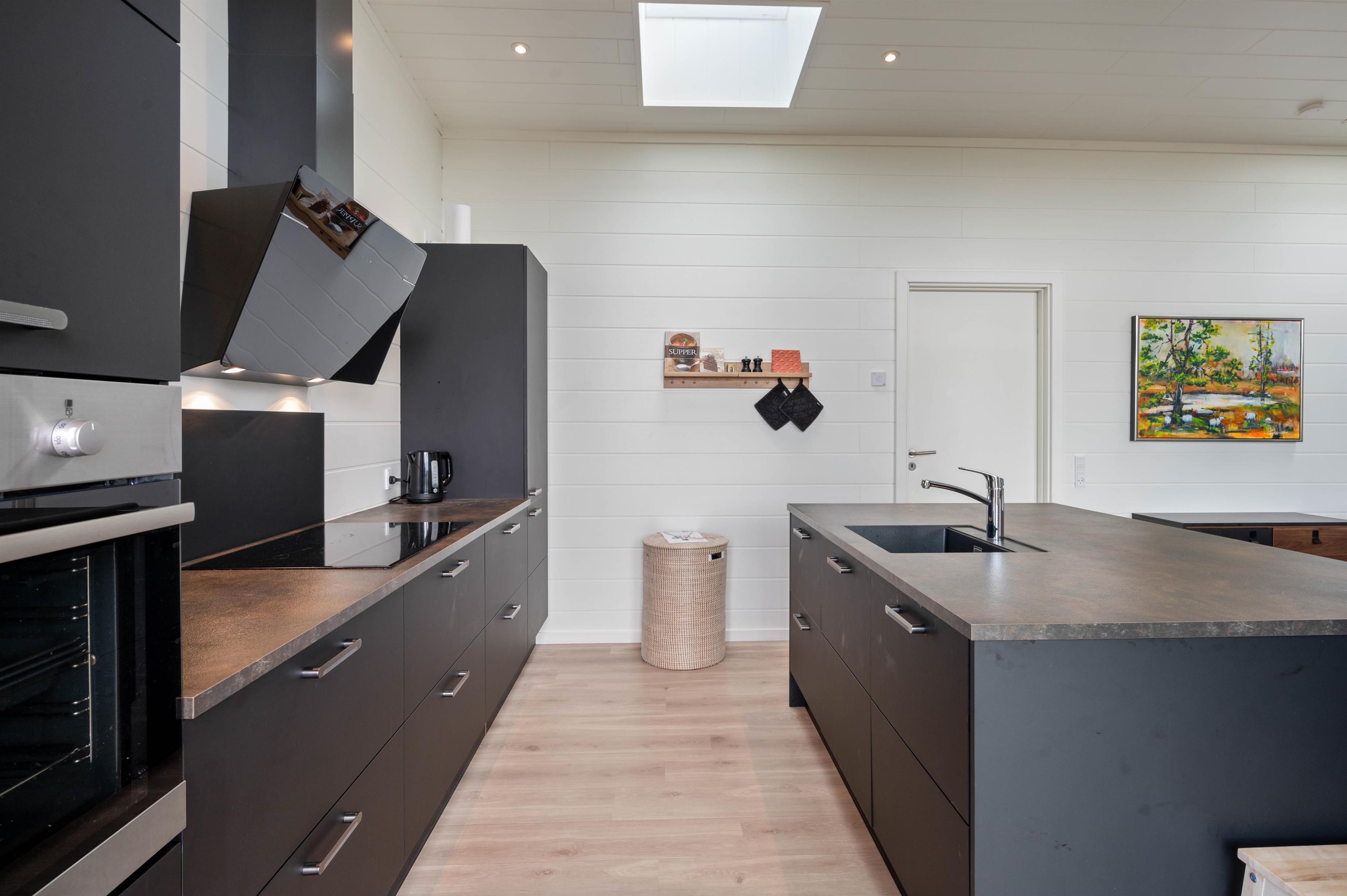Sommerhuset lader ikke meget tilbage at ønske, da alle former for moderne installationer som varmepumpe, vaskemaskine, tørretumbler, opvaskemaskine og mikroovn står til jeres rådighed. Induktionskomfuret gør det til en leg at tilberede dagens måltider, hvis I ikke vælger at tænde op i grillen. Til maden kan i nyde et glas vin, som er nedkølet i køkkenets vinkøler. Imens der hygges på terrassen, kan børnene slå sig løs på den dejlige naturgrund, lege i gyngerne eller i sandkassen.