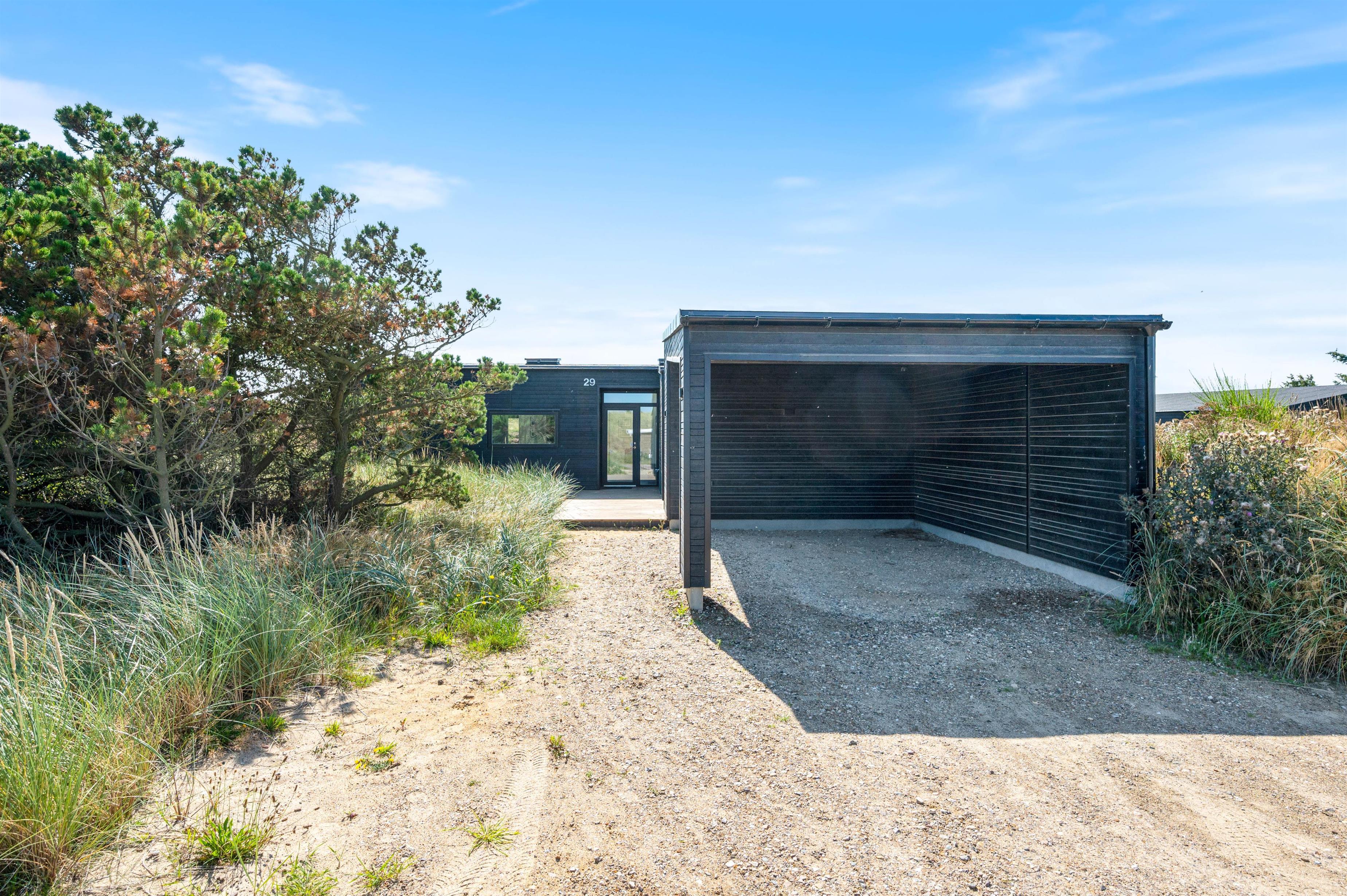 Rundt om hele feriehuset løber en dejlig træterrasse, så der er mulighed for at nyde solen dagen lang. En del af terrassen mod syd er overdækket, så I kan nemt finde skygge i dagtimerne samt nyde de lange sommeraftner ude – selv efter duggens fald. Den øst- og vestvendte del af terrassen giver jer mulighed for at nyde de smukke solopgange og solnedgange, der selvfølgelig også nemt nydes fra første parket ved Vesterhavet, der bare ligger 500 meters gang fra sommerhuset.