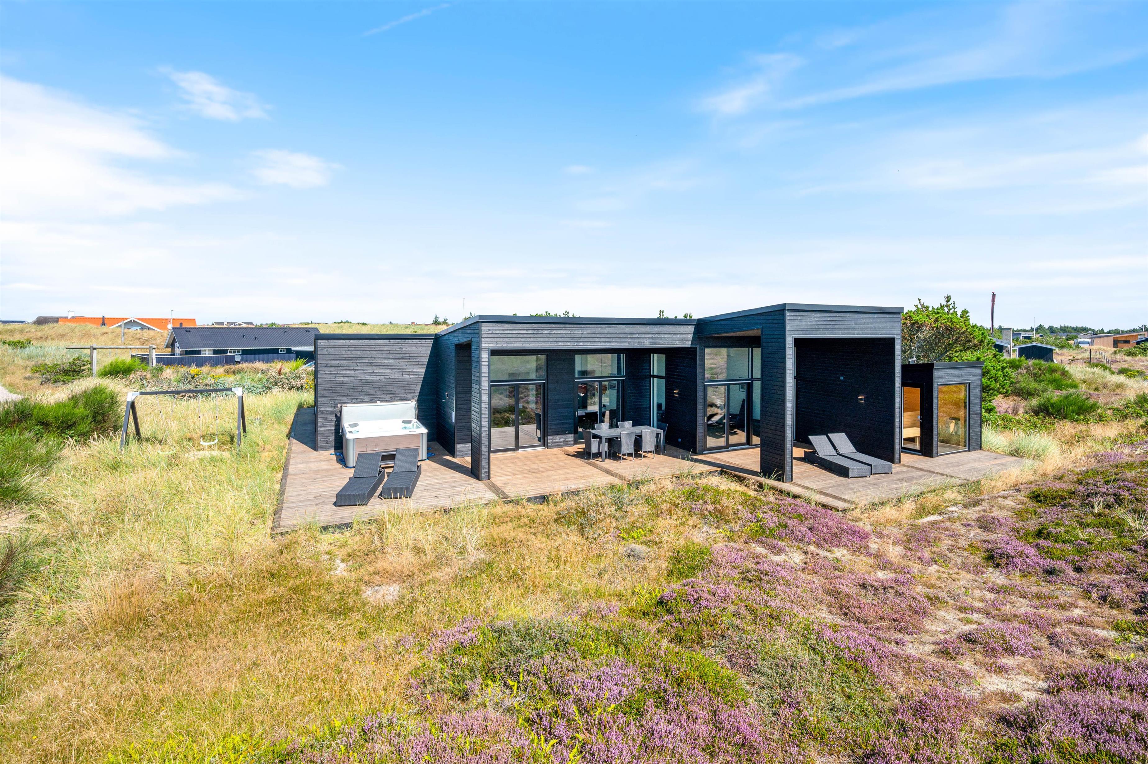 Er I på udkig efter et topmoderne sommerhus ved Vesterhavet, hvor der er gode muligheder for selvforkælelse? Så er Julianevej 29 i Bjerregård lige noget for jer. Feriehuset er bygget i 2021 og byder på både udespa og sauna med udsigt til det smukke klitlandskab.