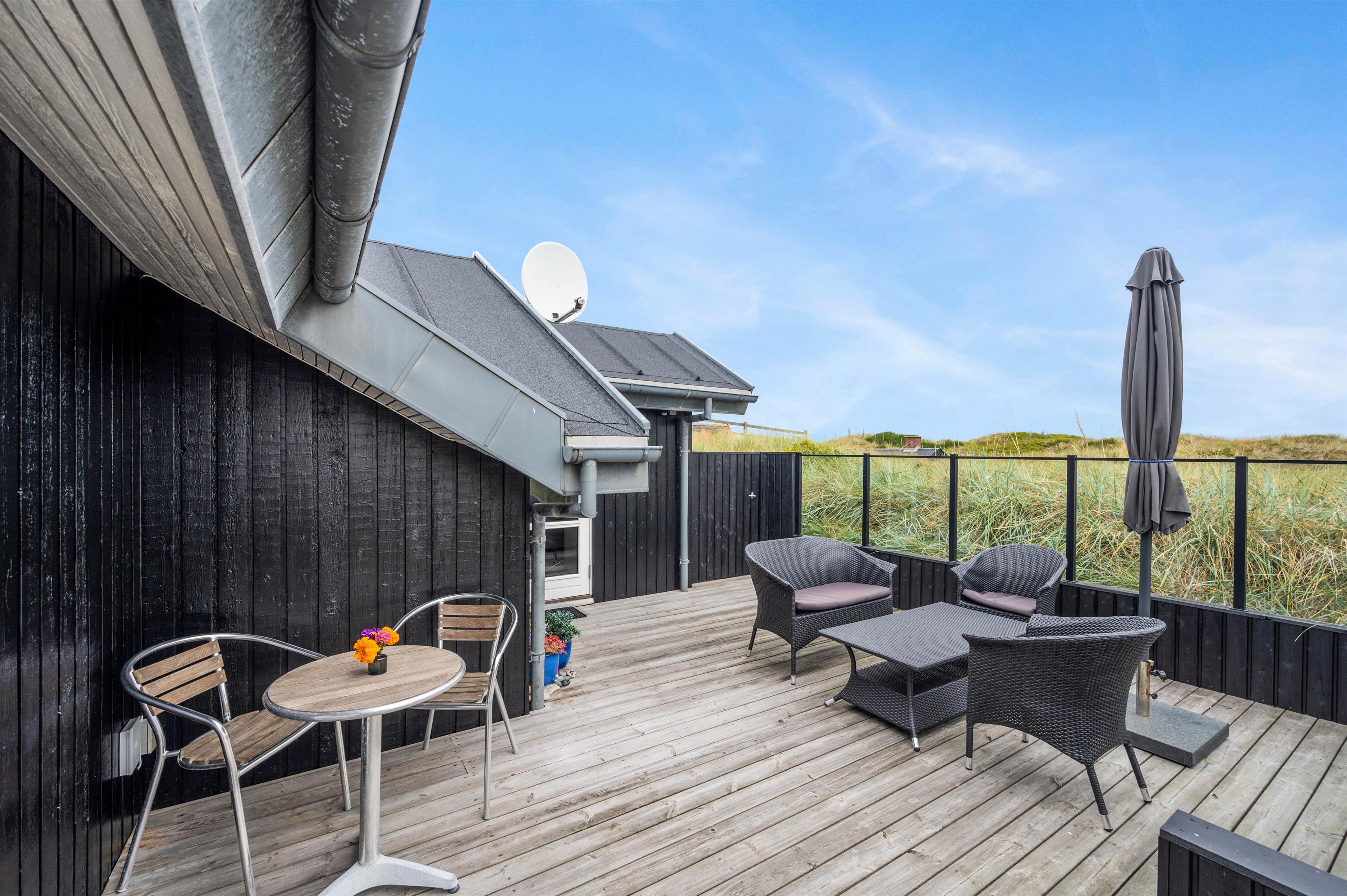 Der er 2 gode terrasser, den store mod øst er delvist afskærmet og særdeles anvendelig det meste af dagen, startende med morgenkaffen. Samtidigt er der masser af læ. Mod syd er der også en terrasse, hvorfra den vidunderlige solnedgang kan nydes. Den 1.250 m2 store naturgrund passer perfekt ind i det smukke klitlandskab.