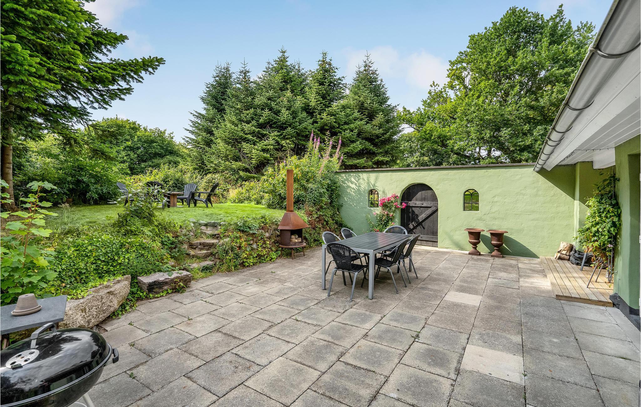 I finder komfortable havemøbler på den rummelige naturgrund og kan slappe af på den åbne terrasse. Tilbring dejlige eftermiddage ved grillen eller tænd op på bålpladsen. En robåd og en fiskekajak til 2 voksne og 1 barn er også tilgængelige fra 1. maj til 30. september.